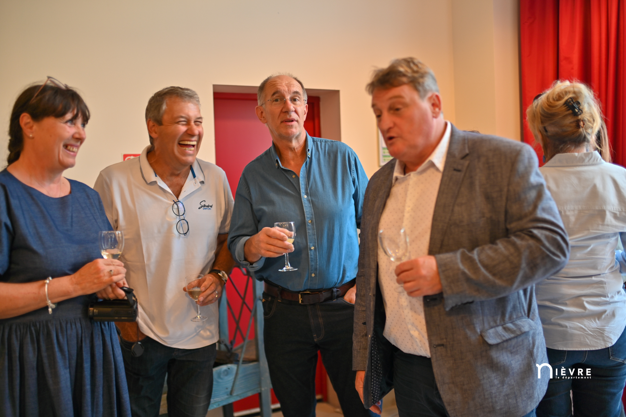 1. En présence du maire Christian Marie, de Jean-Luc Gauthier, président de la communauté de communes Amognes Coeur du Nivernais et conseiller départemental du canton, de Thierry Guyot, conseiller départemental délégué à l’agriculture et à l’alimentation de proximité, et de Didier Ramet, président de la Chambre d’agriculture.