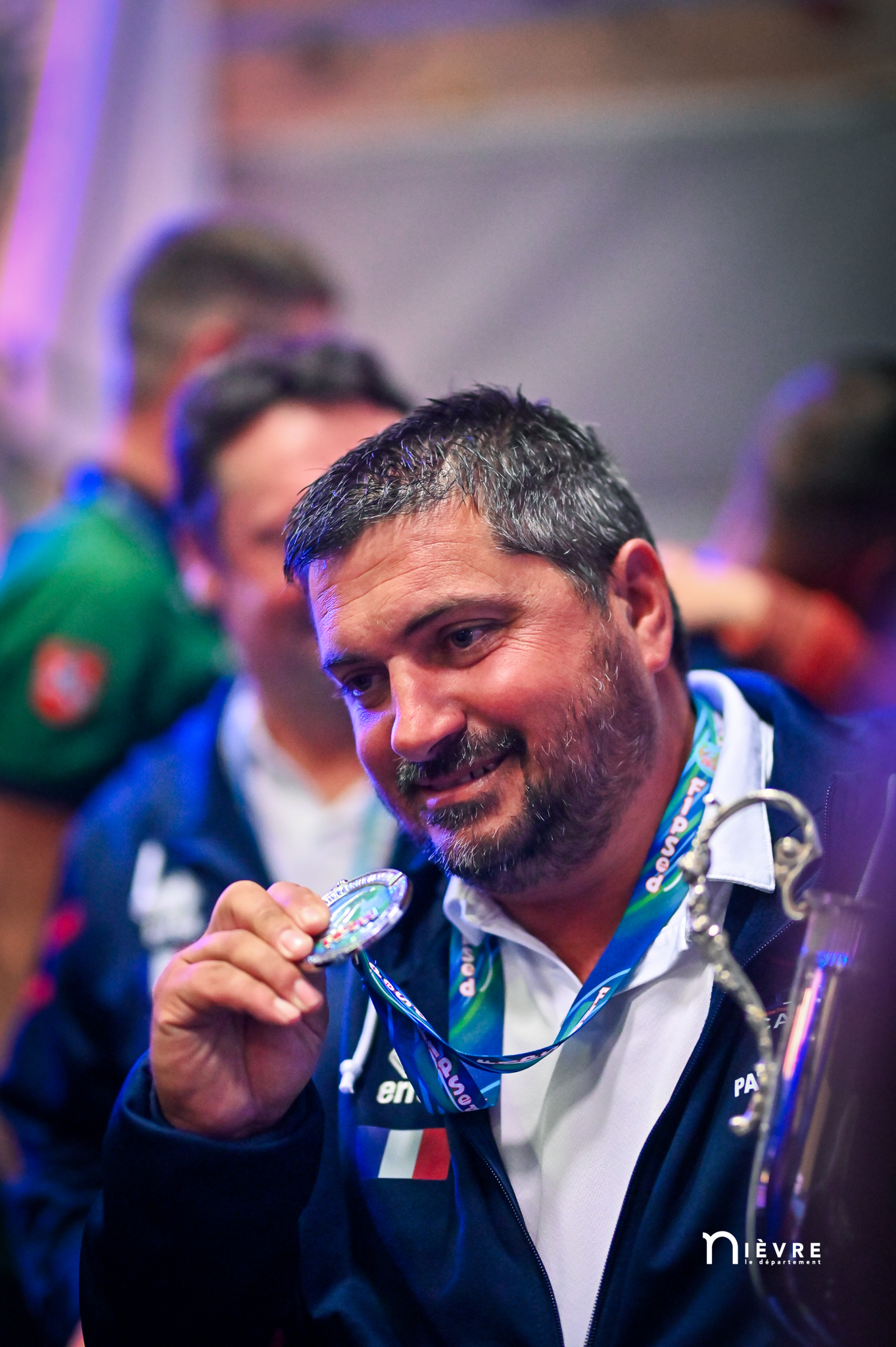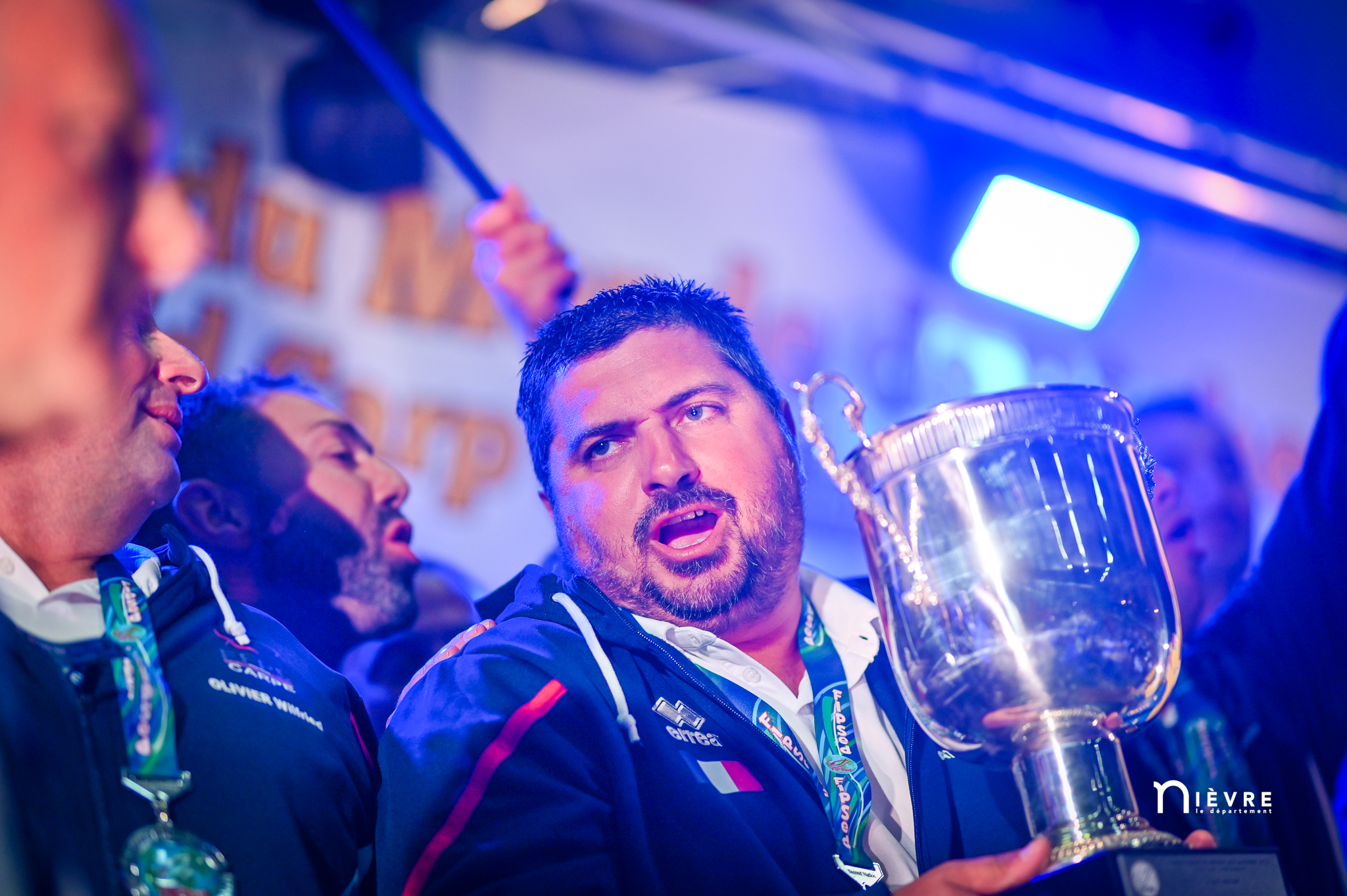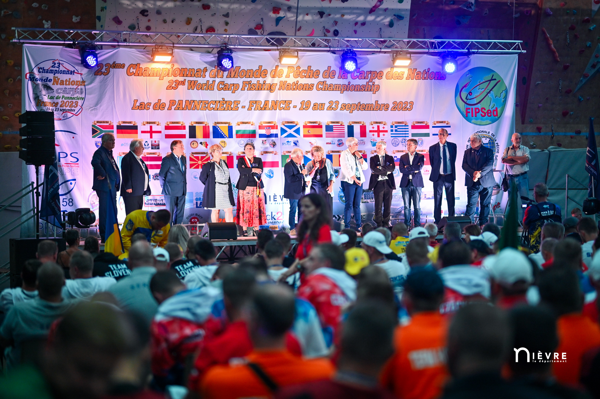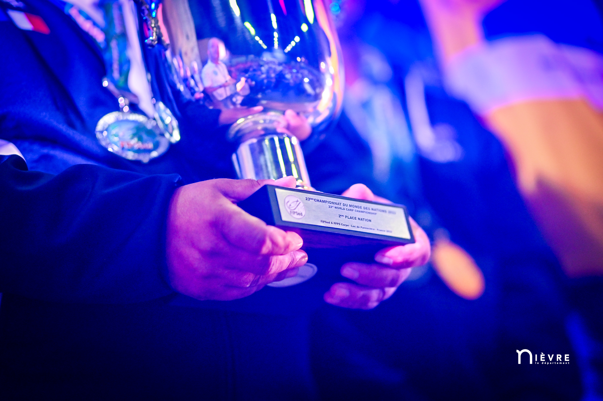 En attendant, tous deux savourent, reçoivent fièrement les félicitations, les tapes amicales et les demandes de selfies des adversaires. Et se lâchent, enfin, sur la plus haute marche du podium, énorme coupe dans une main, un bouquet de fleurs dans l’autre, et s’époumonent sur la Marseillaise. Dans la salle, les 32 délégations, les bénévoles, les officiels et les partenaires sont au coude à coude autour des tables : « On a réuni 32 nations, c’est un record qui sera difficile à battre », souligne Jacques Goupil, président de la Fédération française de pêche sportive. Son vice-président coordinateur de l’organisation, Fernand de Castro, fait applaudir les 150 bénévoles : « Sans vous, on n’aurait rien pu faire. »