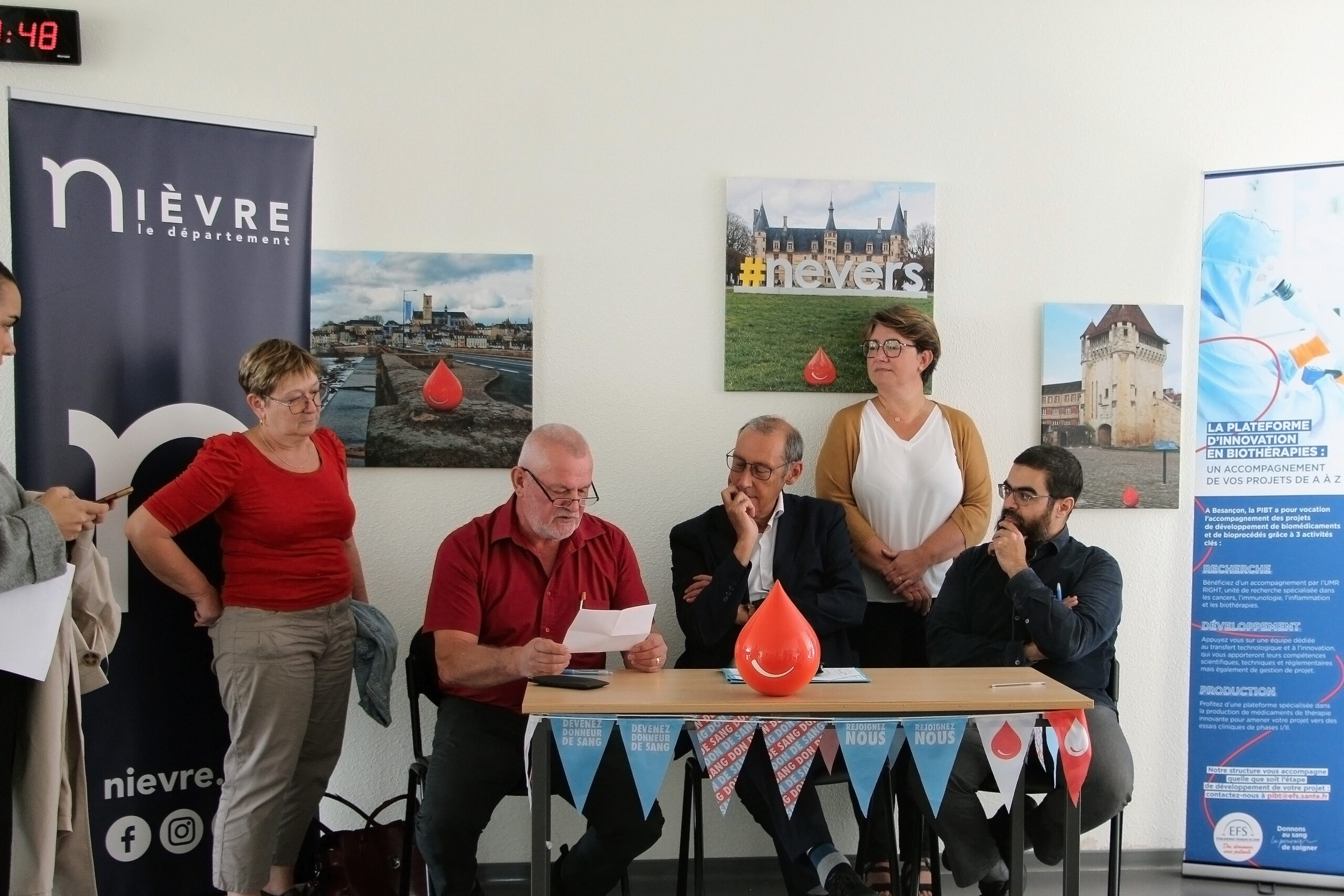 « Après avoir alimenté Paris en bois de chauffage et avec ses nourrices qui allaitaient les petits Parisiens, on perpétue la tradition, et c’est une bonne nouvelle. La solidarité et la mobilisation associative sont la marque de nos campagnes », apprécie Fabien Bazin, président du Conseil départemental, venu à la Maison du don de Nevers signer une convention tripartite avec l’EFS et l’Union départementale des donneurs de sang bénévoles, représentée par Jean-Pierre Daviaud, vice-président, et Odile Doussot, secrétaire.