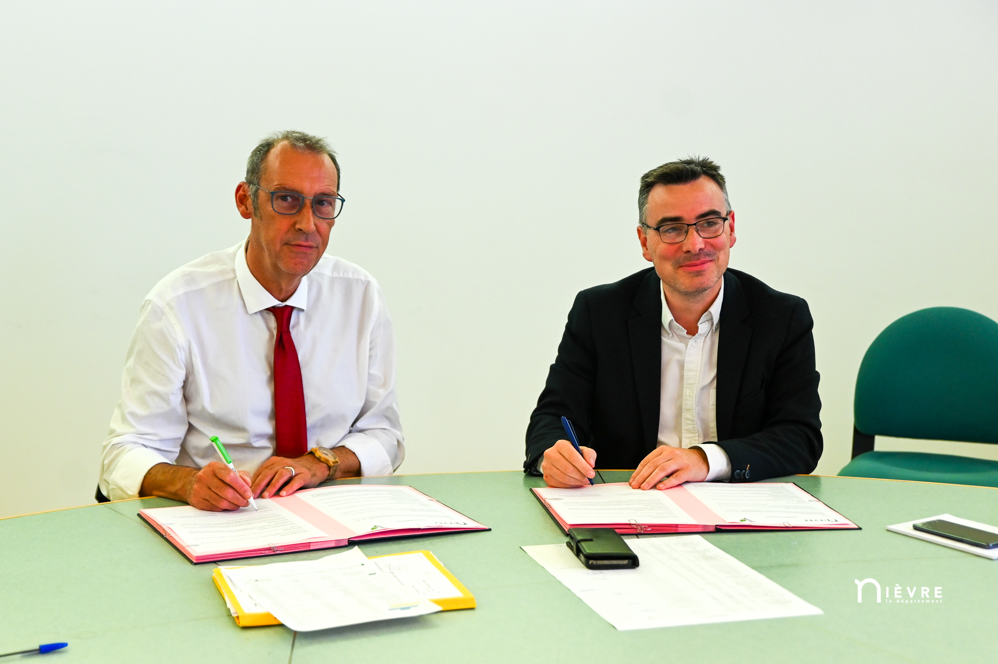 La convention signée par Fabien Bazin et Olivier Sicot, maire de Varennes-Vauzelles, vise à une mutualisation des moyens entre le Conseil départemental et la municipalité sur plusieurs points, dont la promotion des offres d’emploi, le recrutement, et la participation à des salons et congrès.