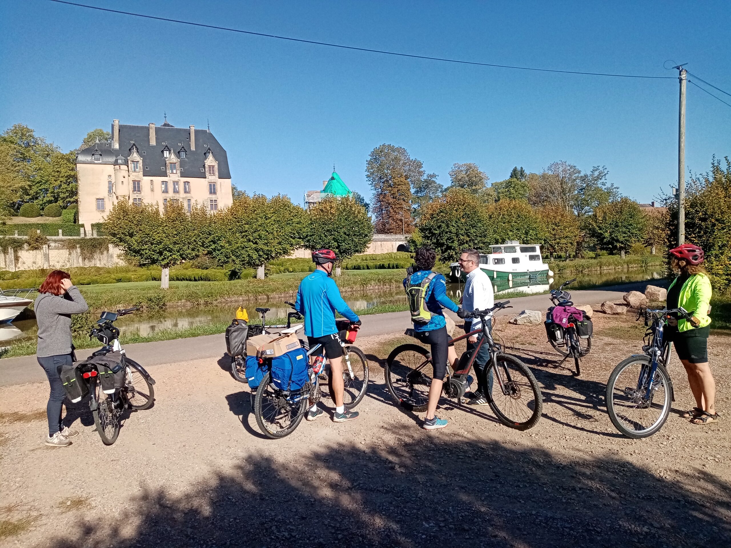 Chaque étape quotidienne, d’une cinquantaine de kilomètres « avalés » au rythme raisonnable de 15 km/h, a laissé aux auditeurs (sept à neuf selon les étapes) suffisamment de temps pour rencontrer les acteurs de la vie de la Véloroute : personnes en charge de l’entretien, hébergeurs, loueurs, commerçants, etc. À mi-parcours, le groupe a bifurqué jusqu’au Centre d’entretien routier du Département, à Corbigny, pour échanger avec Alain Herteloup, vice-président en charge des infrastructures et des déplacements, Jean-Louis Lebeau, président du Syndicat mixte d’équipement du canal du Nivernais de la Nièvre, et deux professionnelles du secteur, Patricia Robert, gérante du restaurant La Coulée douce voisin du canal à Marigny-sur-Yonne, et Vanice Makougan, chargée de mission tourisme à la communauté de communes Tannay-Brinon-Corbigny.