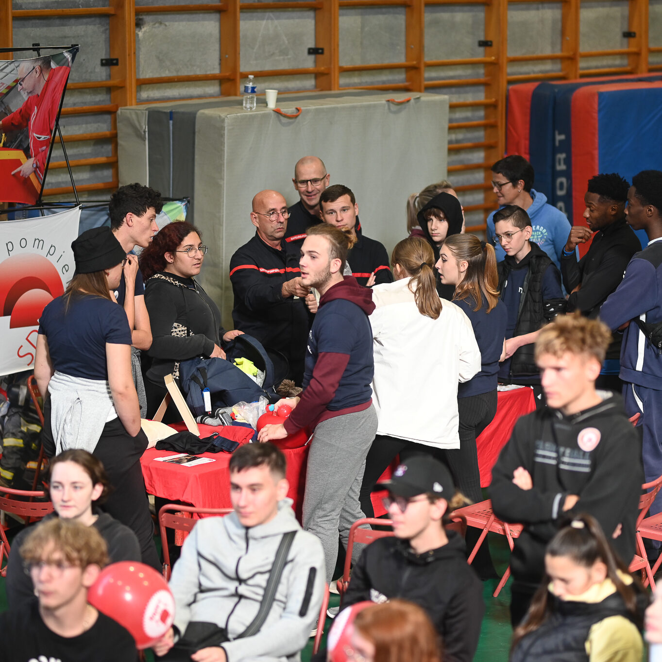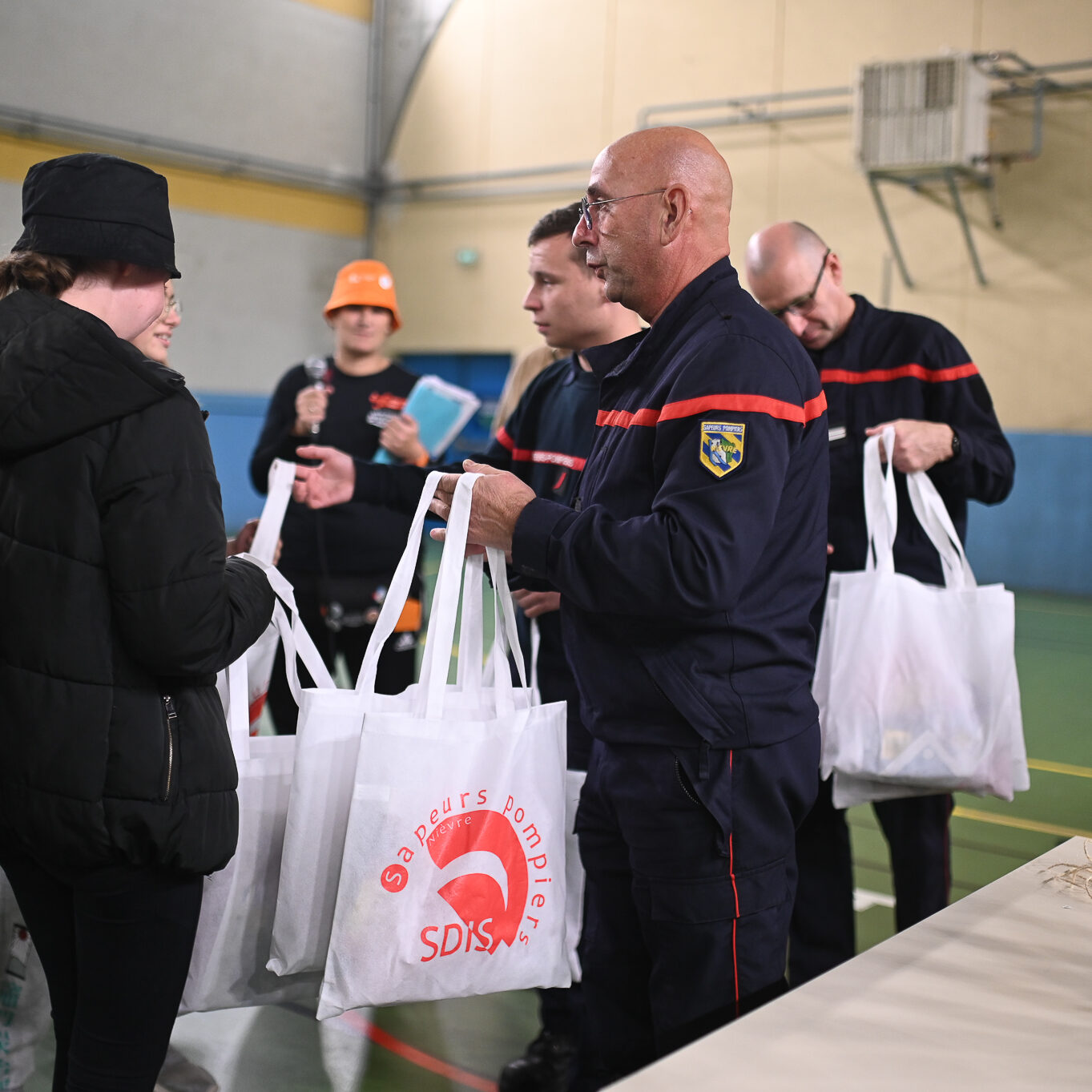 Le SDIS : les catastrophes naturelles ou technologiques surviennent brutalement et imposent une préparation en cas d’évacuation urgente de son domicile. Un atelier pour que le citoyen soit acteur de sa sécurité. Une table remplie d’objets divers et variés, plus ou moins utiles, sert à sensibiliser les jeunes à la constitution d’un sac à dos de premier secours. Choisir le bon objet qui pourra servir en cas de besoin. Prendre l’essentiel et être autonome sur plusieurs jours. Un atelier très apprécié.