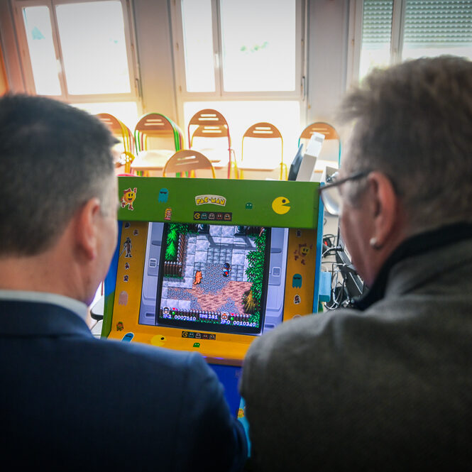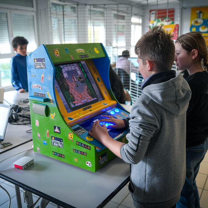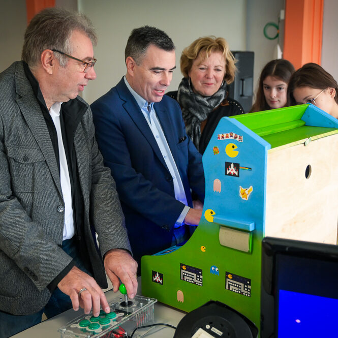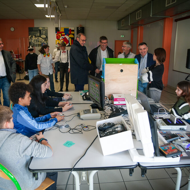 Chemise blanche, bretelles et nœud pap’, un grand sourire barrant le visage, les M. et Mme Loyal du Numérik Circus font le show dans le collège, ce mercredi matin, rodant leurs tours et leur tournée qui débute à Varennes-Vauzelles avant de visiter tous les collèges du département. Dans une grande salle, plusieurs ateliers invitent à « fabriquer (sa) daronne en 3D », à s’essayer à la préhistoire du rétrogaming, aux évolutions fascinantes du stop motion ou au casque de réalité virtuelle.