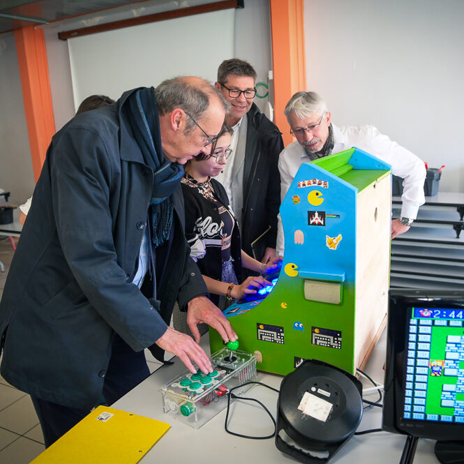 Aux côtés de la principale Marie-Line Brune et du maire Olivier Sicot, Fabien Bazin, président du Conseil départemental, Eliane Desabre et Lionel Lécher, conseillers départementaux du canton, apprécient le spectacle, l’implication des collégiens et la créativité du service Accompagnement numérique. « Des jeunes gens très investis dans leur domaine », souligne Fabien Bazin, qui rappelle que le numérique fournit désormais « des outils de gestion de nos vies » dont l’étude ne doit pas être éludée : « Je suis convaincu que le codage devrait être au programme de l’Éducation nationale. Ce Numérik Circus invite à réfléchir à toutes les questions que fait naître le numérique. »