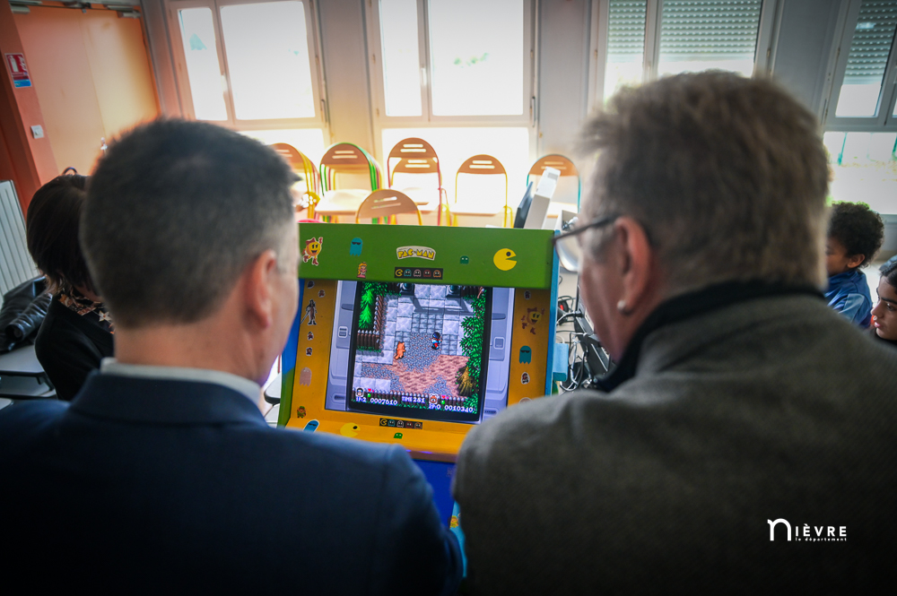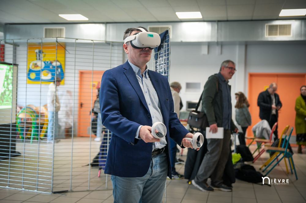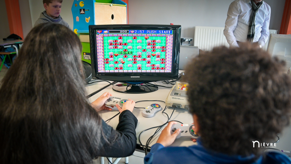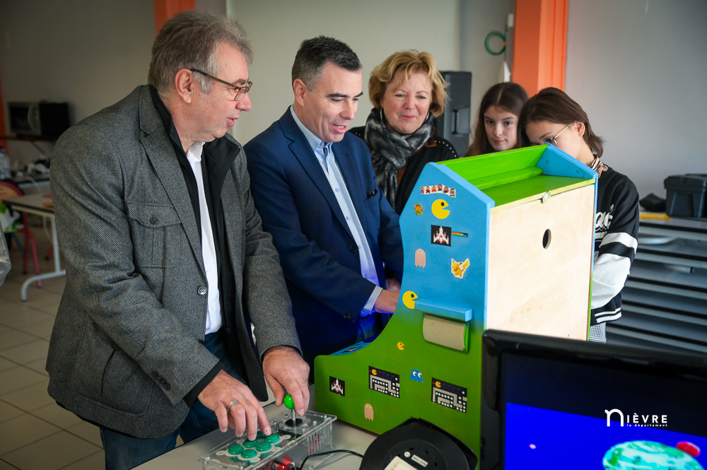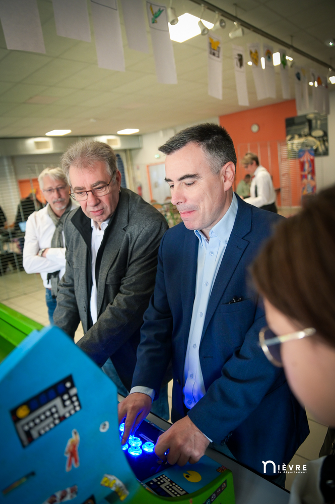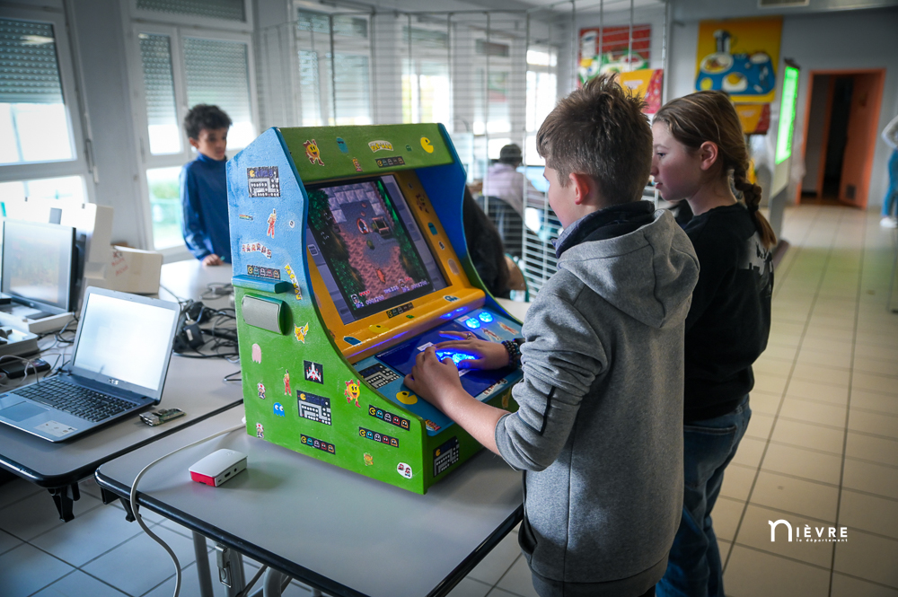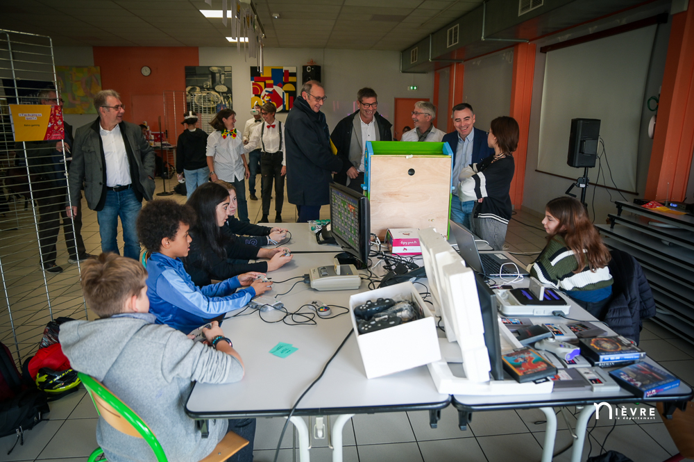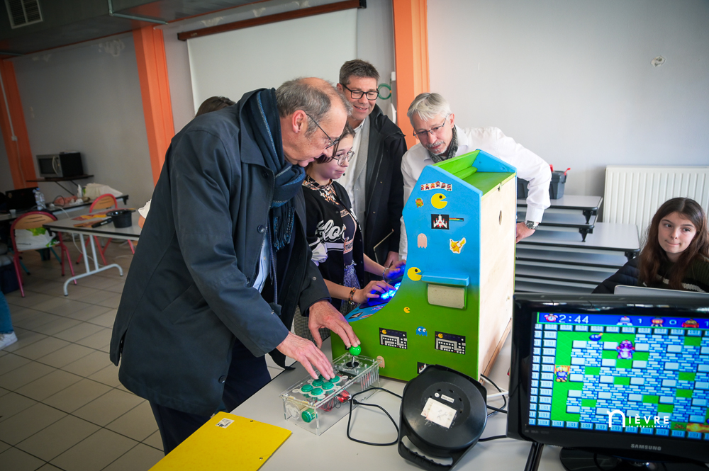 Chemise blanche, bretelles et nœud pap’, un grand sourire barrant le visage, les M. et Mme Loyal du Numérik Circus font le show dans le collège, ce mercredi matin, rodant leurs tours et leur tournée qui débute à Varennes-Vauzelles avant de visiter tous les collèges du département. Dans une grande salle, plusieurs ateliers invitent à « fabriquer (sa) daronne en 3D », à s’essayer à la préhistoire du rétrogaming, aux évolutions fascinantes du stop motion ou au casque de réalité virtuelle.