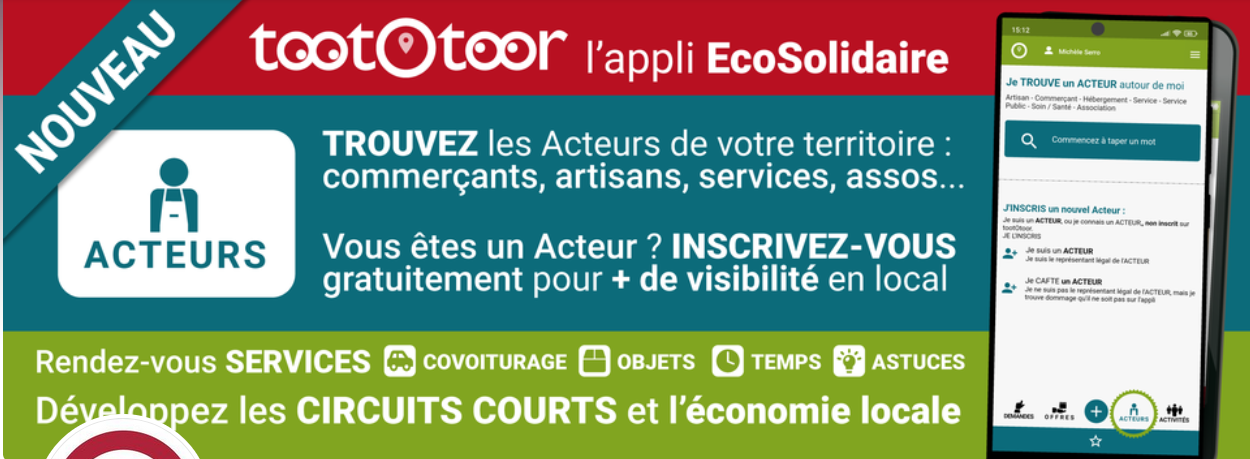 L’association A l’entoor a pour objet de participer au développement des territoires ruraux par la diffusion de principes et de pratiques responsables, écologiques et solidaires, avec l’application éco-solidaire lancée en 2022, « tootOtoor », sur le principe « j’aide, j’emprunte, je trouve, je participe, je partage ».