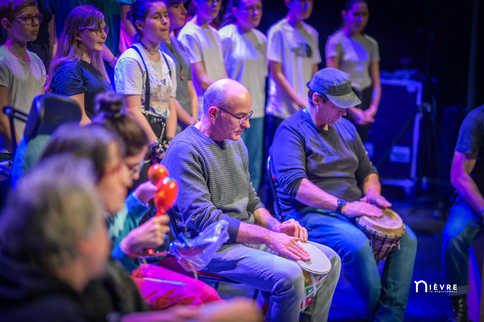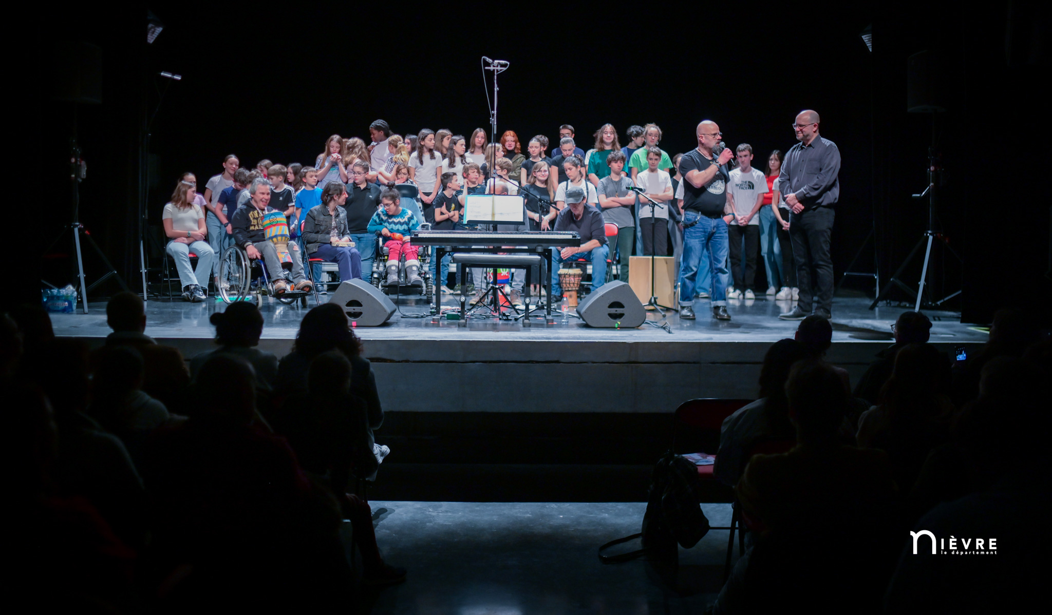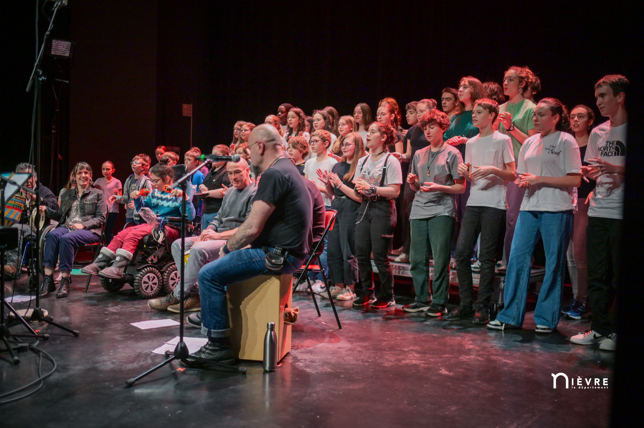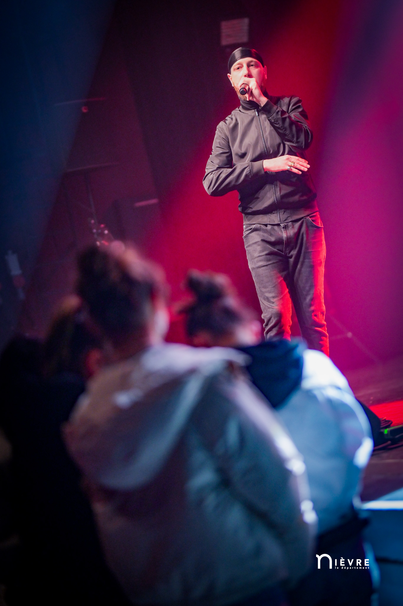 Après la parole des jeunes, ce sont les élèves de la chorale du collège Victor-Hugo, de Nevers, qui ont investi la scène, accompagnés de personnes en situation de handicap du Foyer d’accueil médicalisé d’Imphy. Le rappeur Bynia a refermé avec brio une soirée réussie qui démontre que les jeunes ont leurs mots à dire, qu’ils sont capables de belles choses et de réussite.