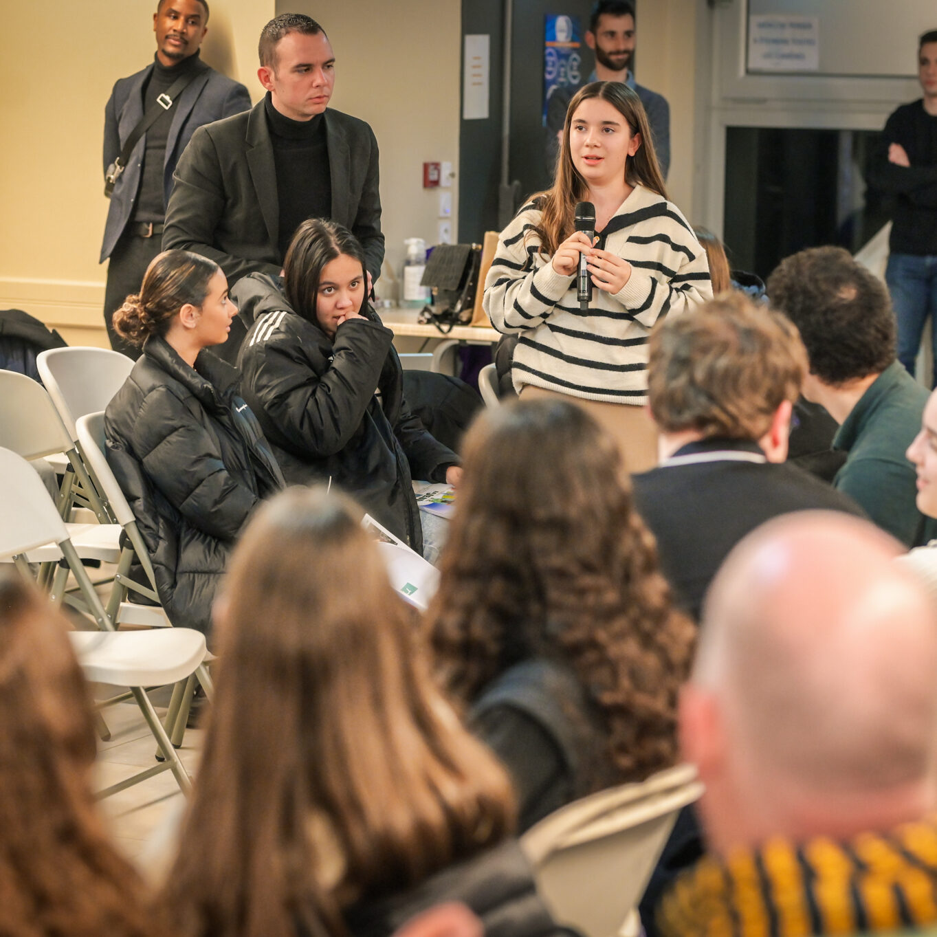 Ce soir, j’entends et je vois beaucoup d’ambitions chez les jeunes, et c’est très agréable. Mais dans mon métier, je vois aussi des jeunes qui ont moins envie, qui ont des craintes, et ce sont eux qu’il faut aller chercher, c’est à eux qu’il faut proposer des ouvertures. Les jeunes que je côtoie au lycée ont souvent l’impression qu’ici tout ne leur est pas ouvert. Je ne m’inquiète pas pour ceux qui sont là ce soir ; s’ils sont venus, c’est parce qu’ils ont envie de s’investir.