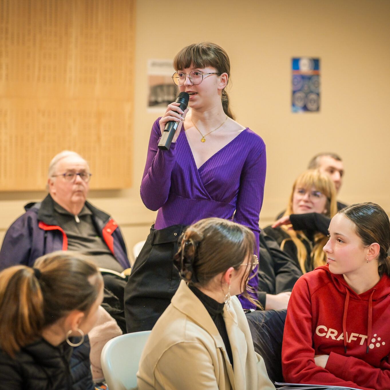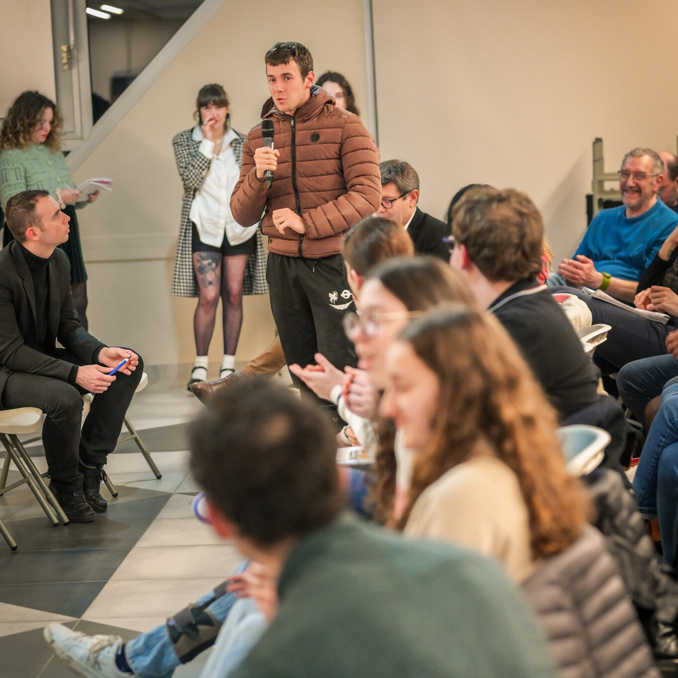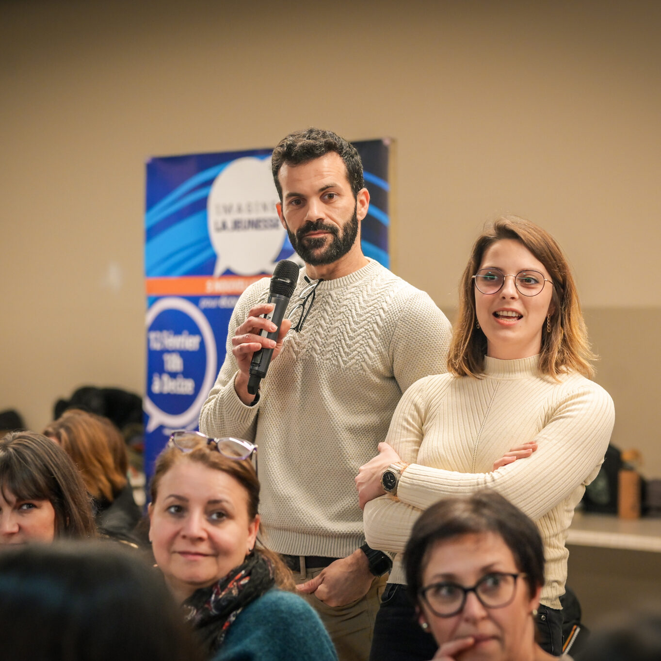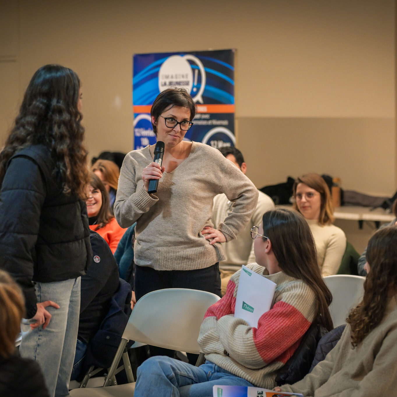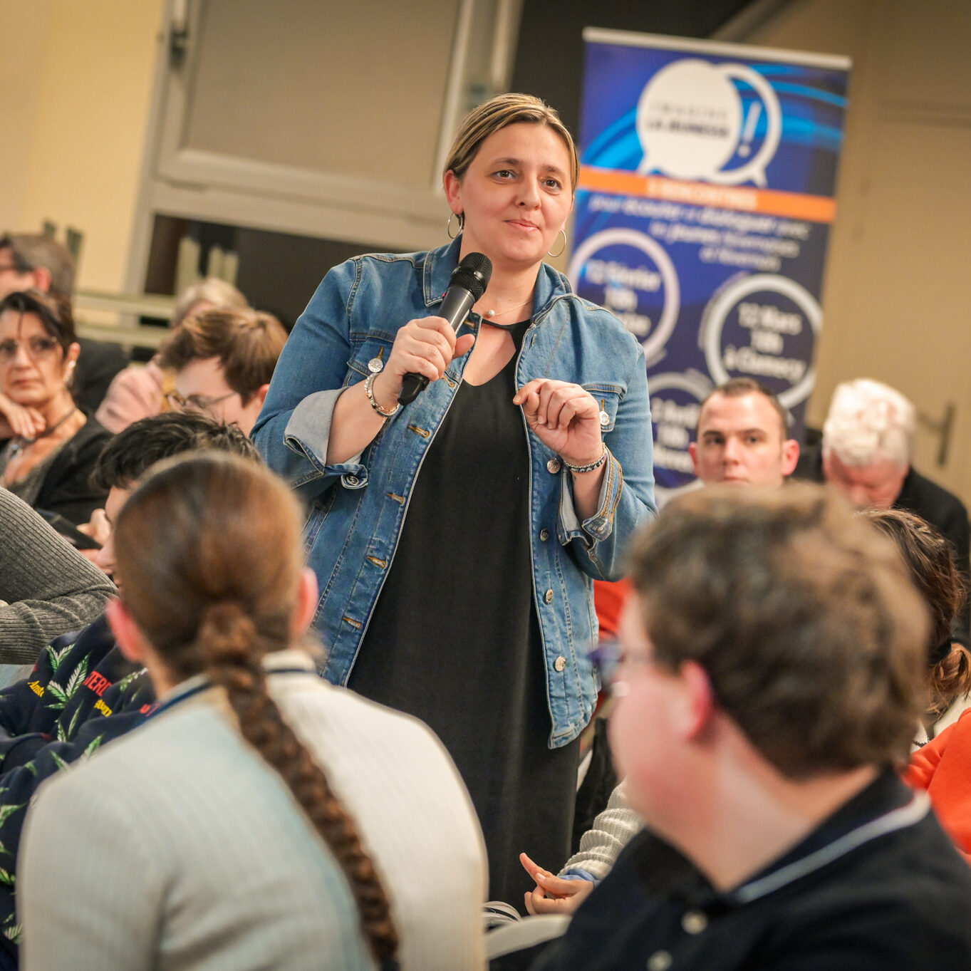 « Une salle qui est remplie de jeunes, c’est assez rare pour être souligné », souligne en préambule Justine Guyot, maire de Decize et vice-présidente du Conseil départemental, qui lève les timidités de l’auditoire en témoignant de son parcours : « J’ai eu mon premier mandat électif à 26 ans, ça prouve qu’il faut croire en la force de sa jeunesse. À Decize, on est très attachés à ces échanges citoyens, au contact direct avec les habitants. On ne peut plus penser les politiques publiques autrement qu’avec les jeunes, et pour les jeunes. »