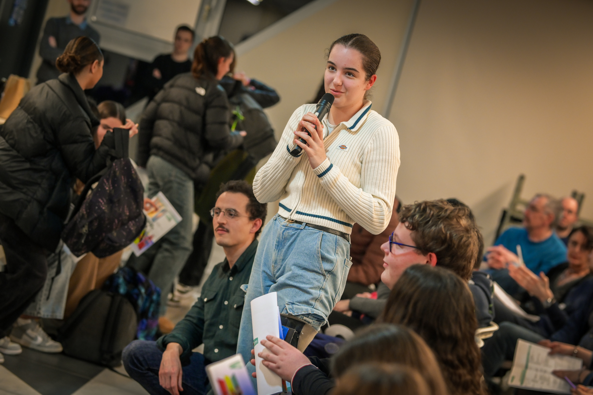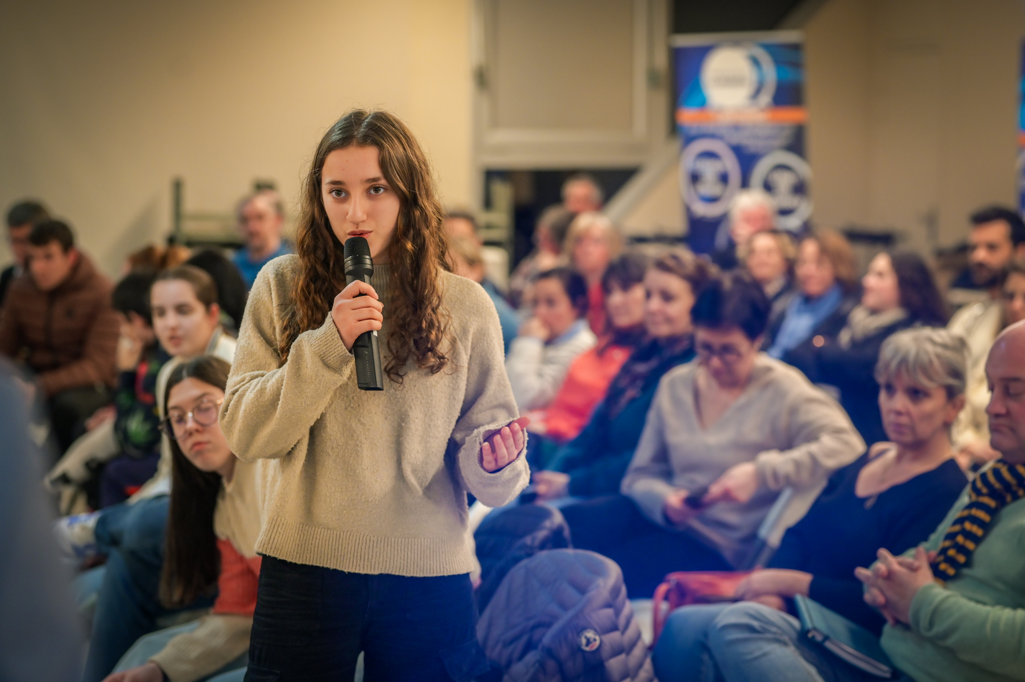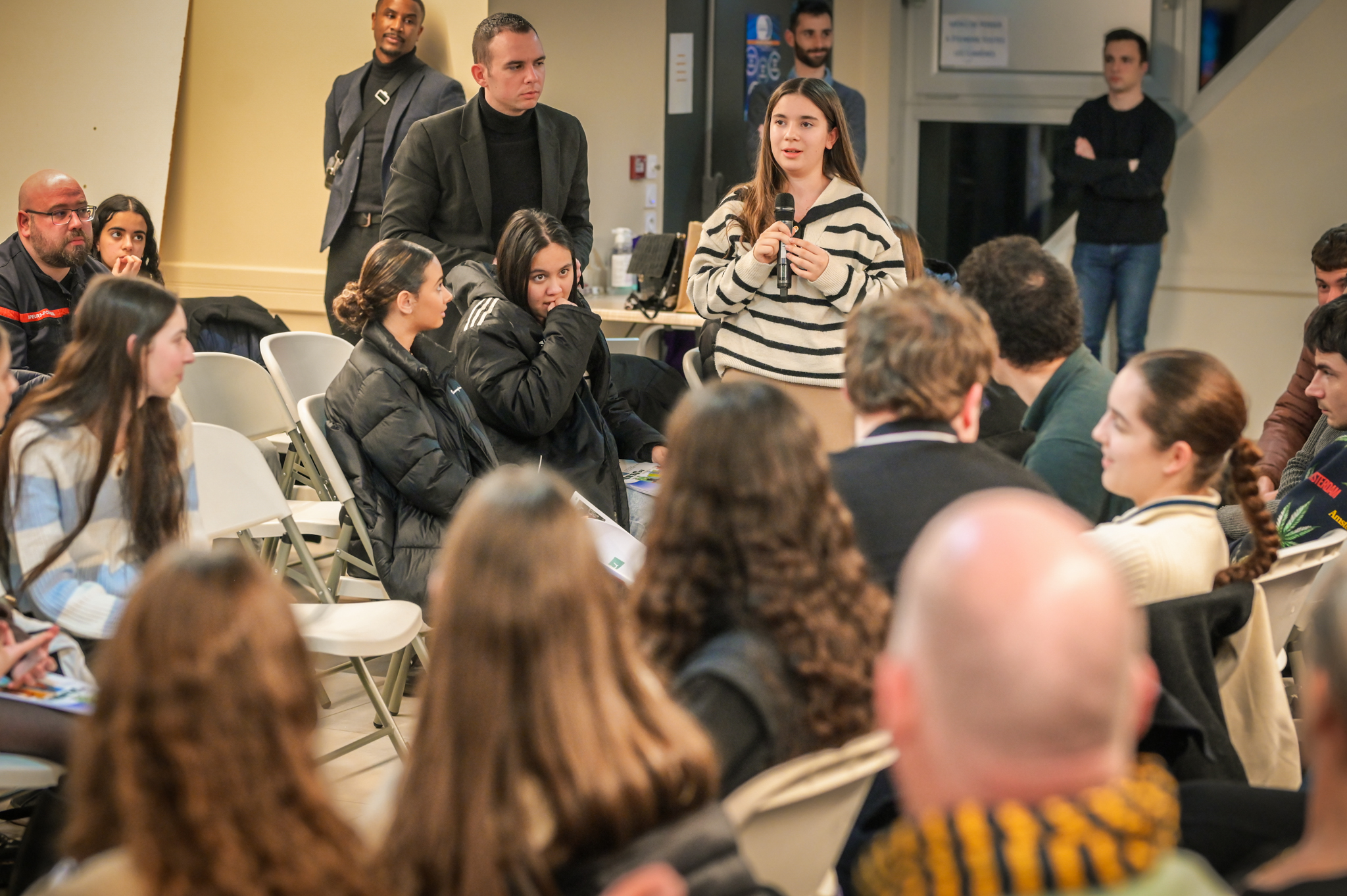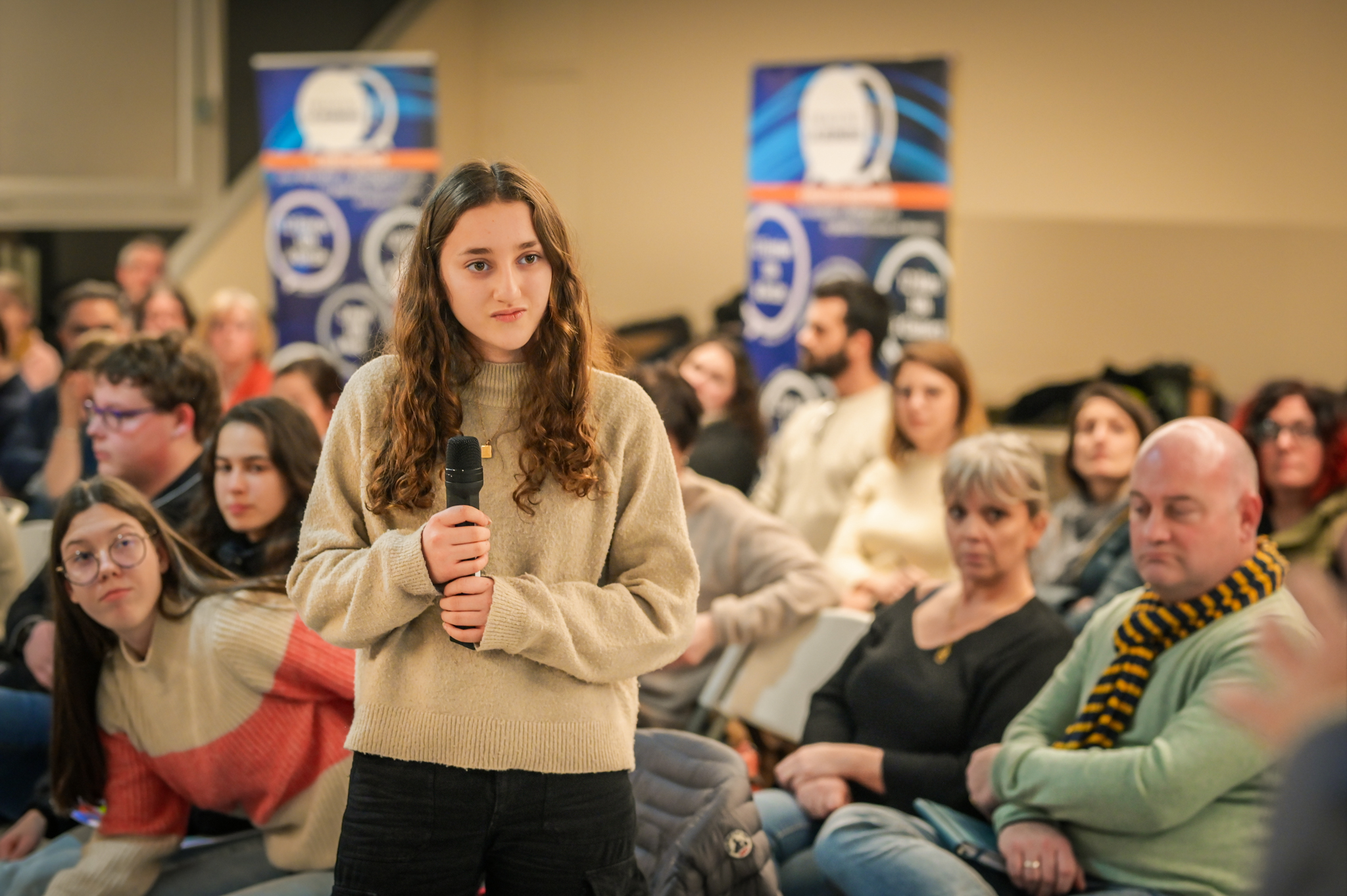 Ce soir, j’entends et je vois beaucoup d’ambitions chez les jeunes, et c’est très agréable. Mais dans mon métier, je vois aussi des jeunes qui ont moins envie, qui ont des craintes, et ce sont eux qu’il faut aller chercher, c’est à eux qu’il faut proposer des ouvertures. Les jeunes que je côtoie au lycée ont souvent l’impression qu’ici tout ne leur est pas ouvert. Je ne m’inquiète pas pour ceux qui sont là ce soir ; s’ils sont venus, c’est parce qu’ils ont envie de s’investir.