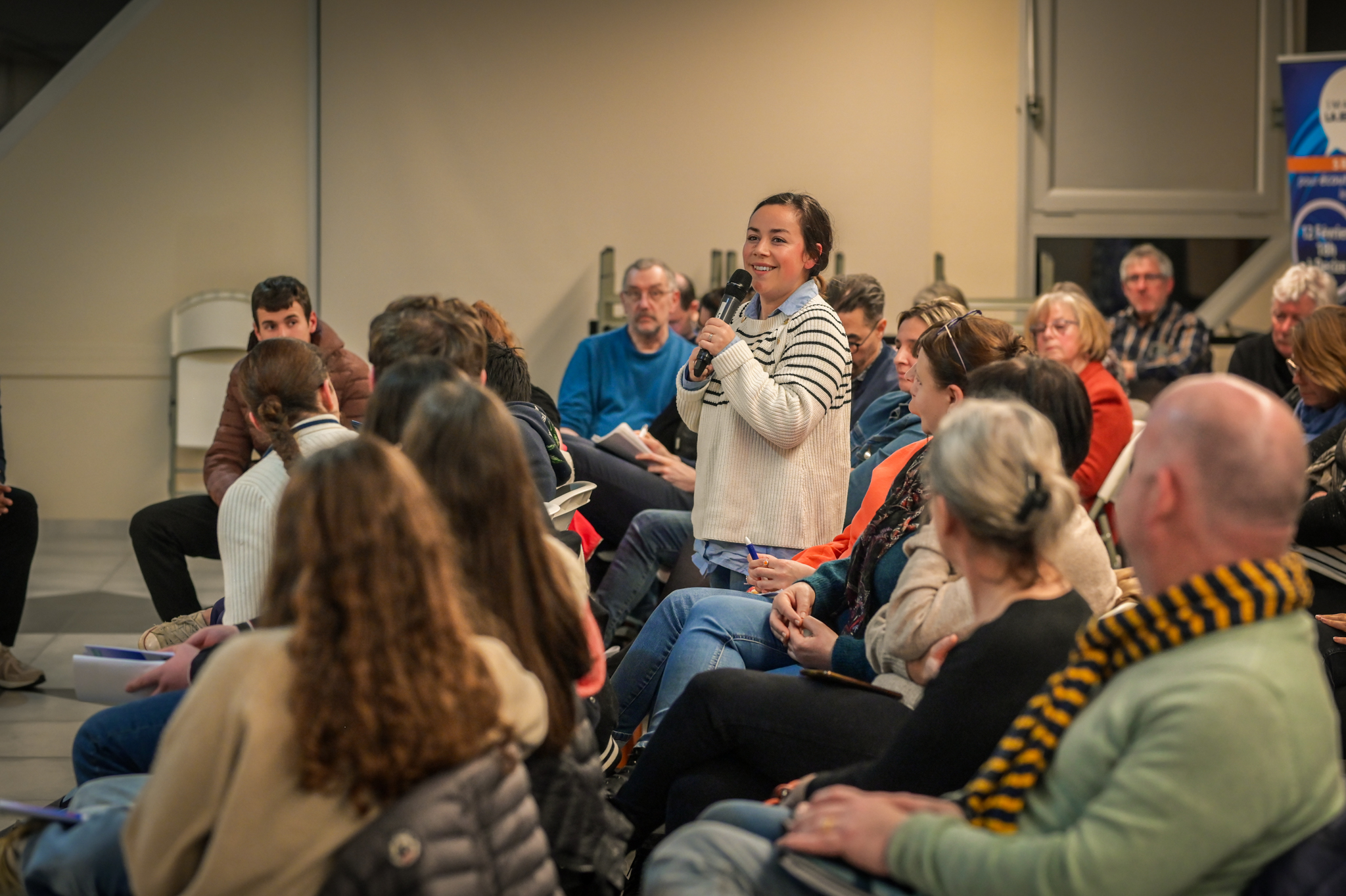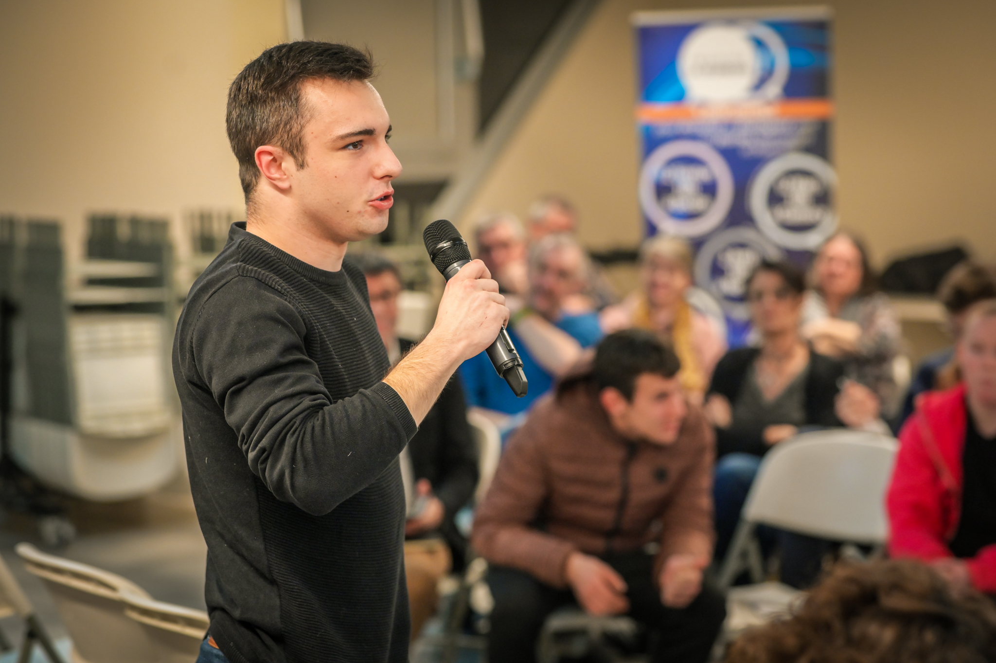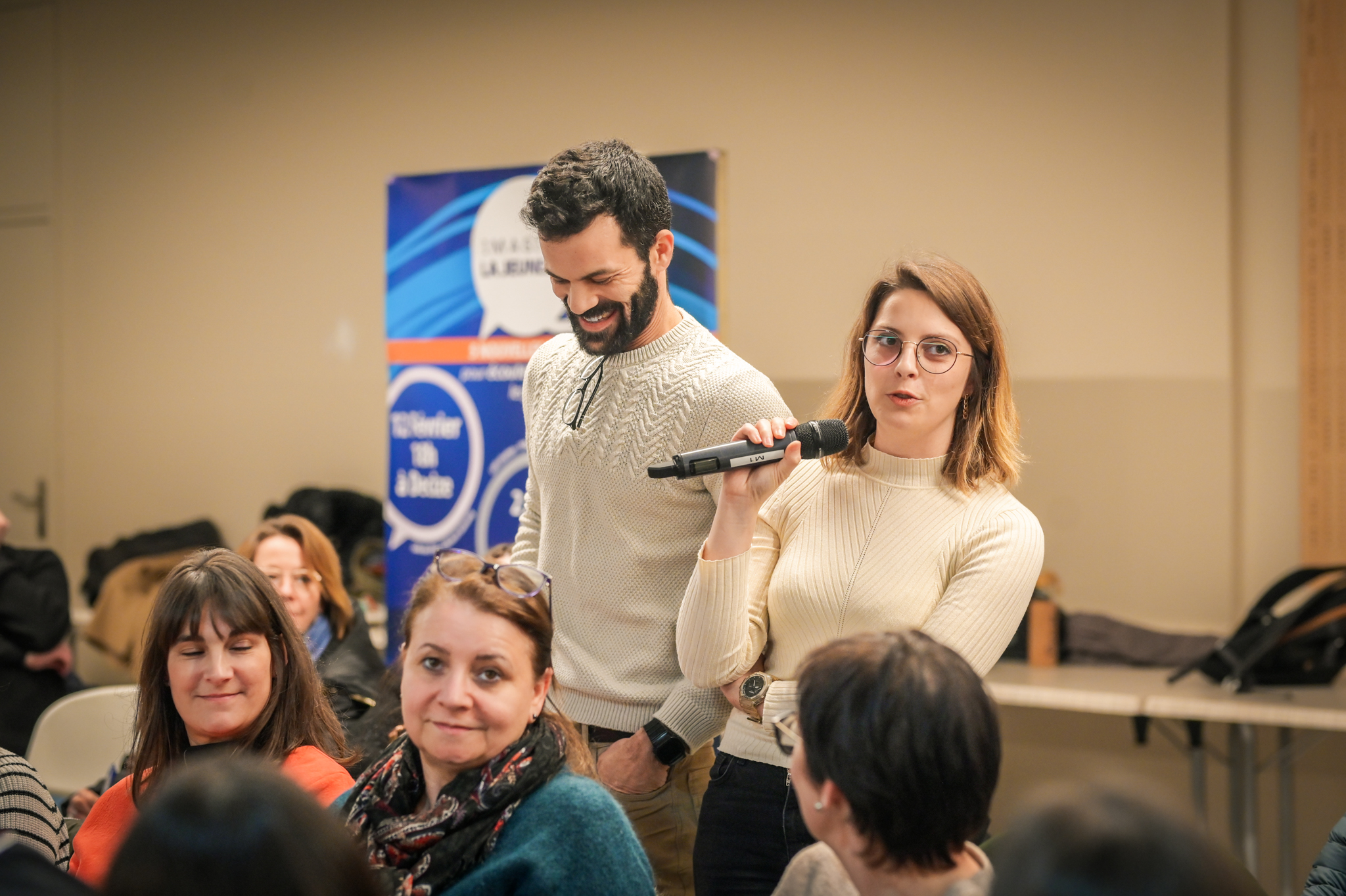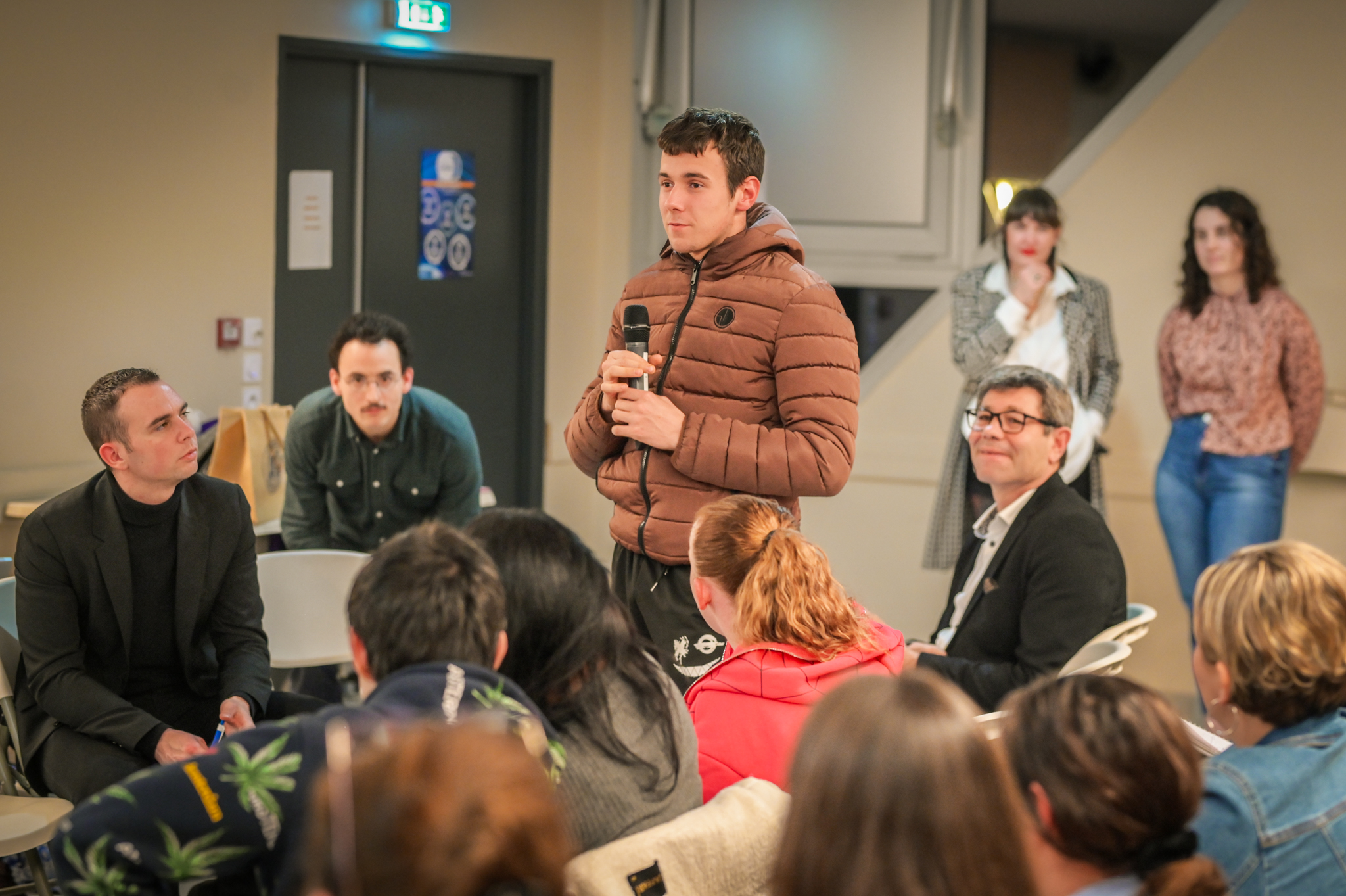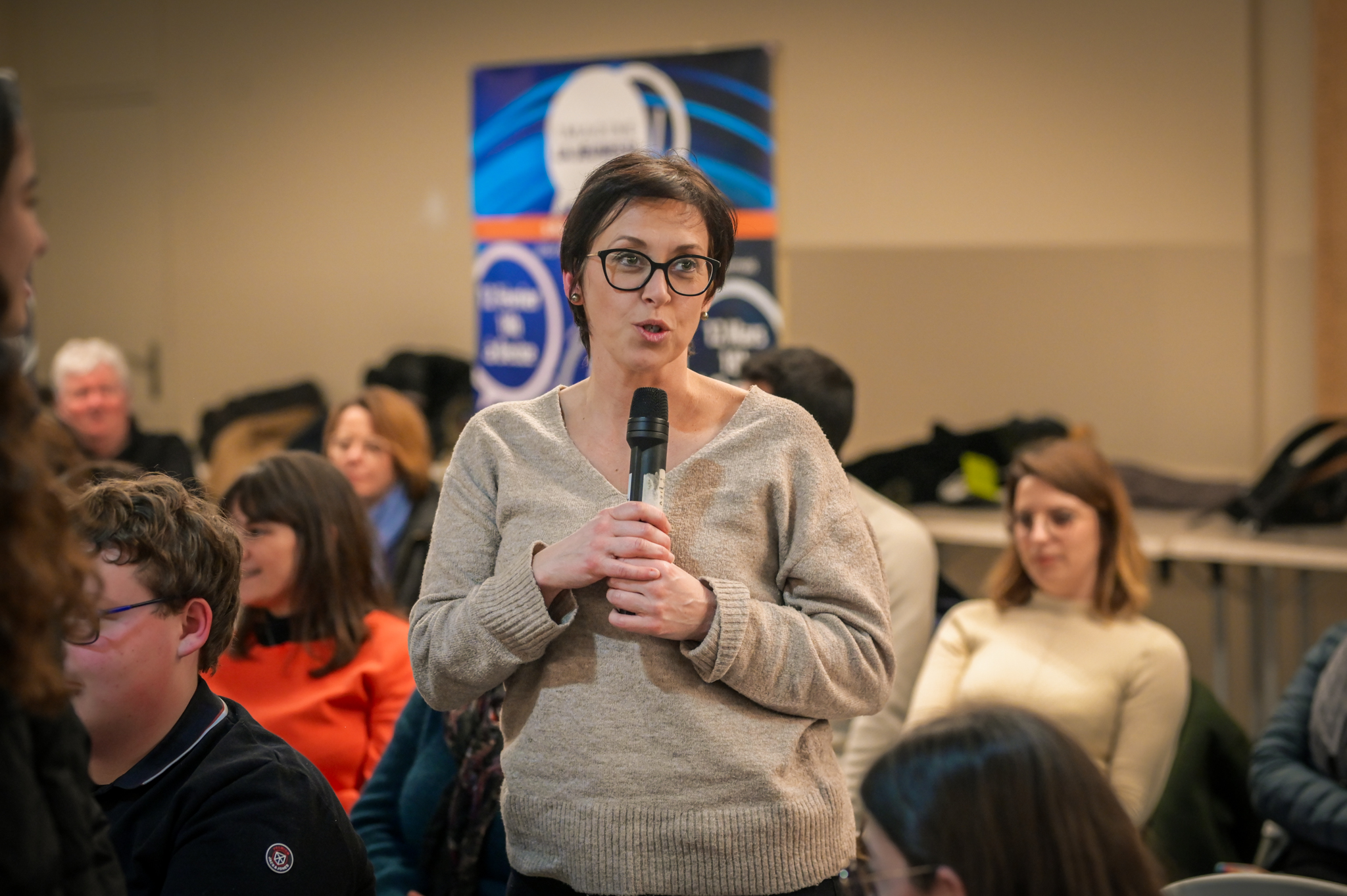 « Une salle qui est remplie de jeunes, c’est assez rare pour être souligné », souligne en préambule Justine Guyot, maire de Decize et vice-présidente du Conseil départemental, qui lève les timidités de l’auditoire en témoignant de son parcours : « J’ai eu mon premier mandat électif à 26 ans, ça prouve qu’il faut croire en la force de sa jeunesse. À Decize, on est très attachés à ces échanges citoyens, au contact direct avec les habitants. On ne peut plus penser les politiques publiques autrement qu’avec les jeunes, et pour les jeunes. »