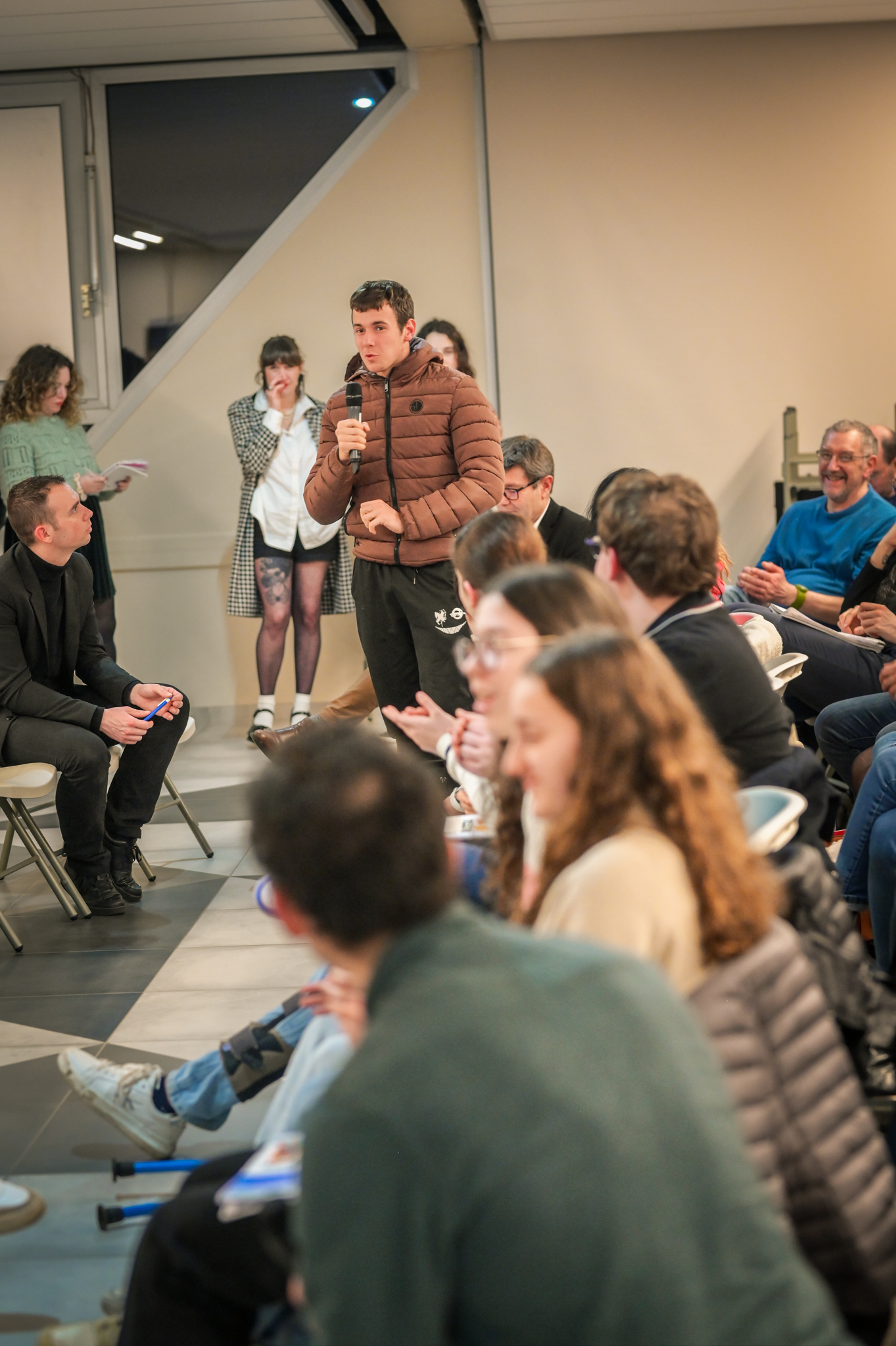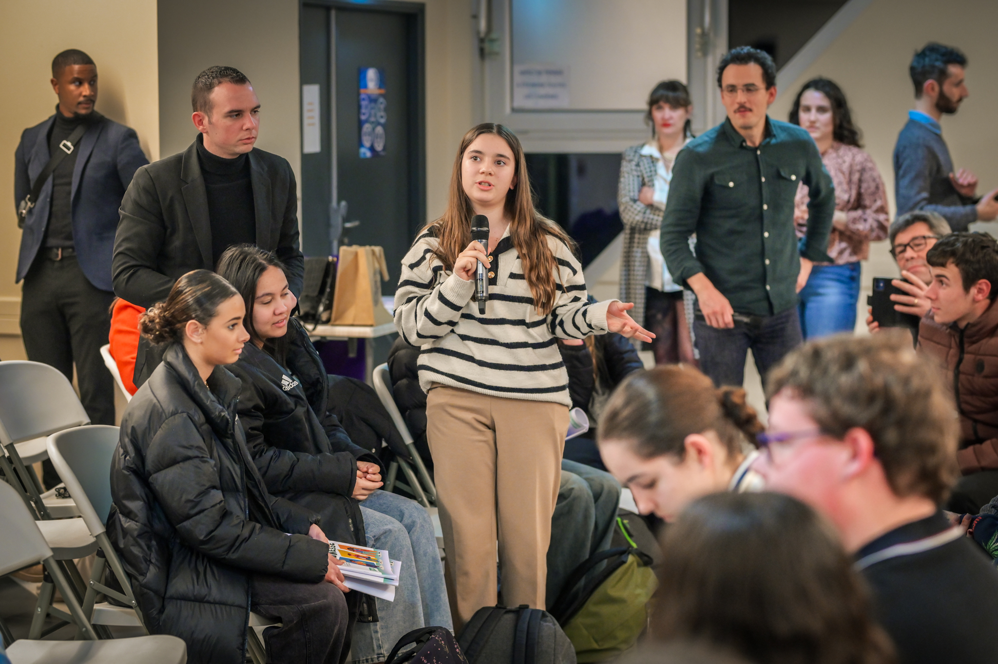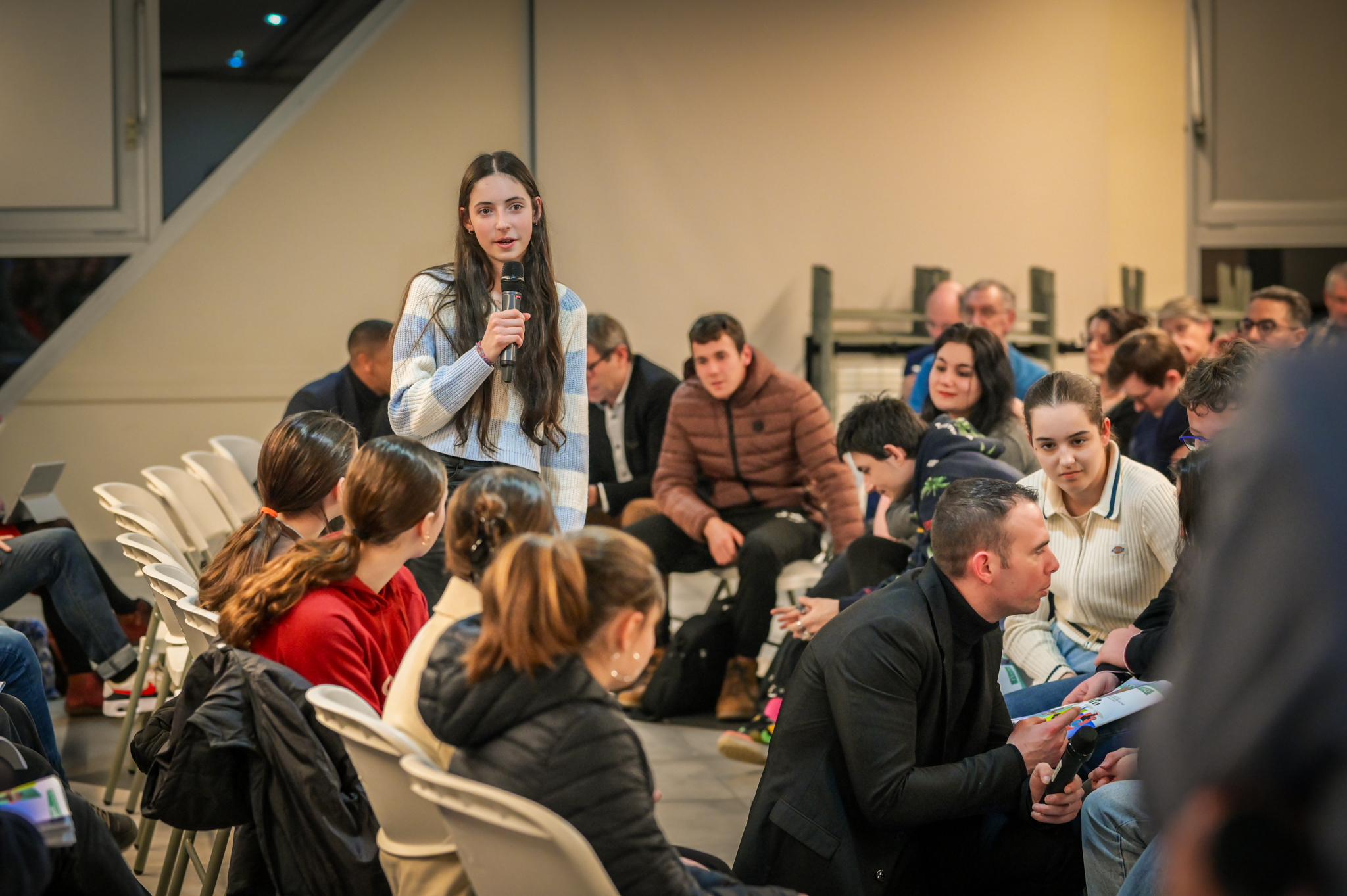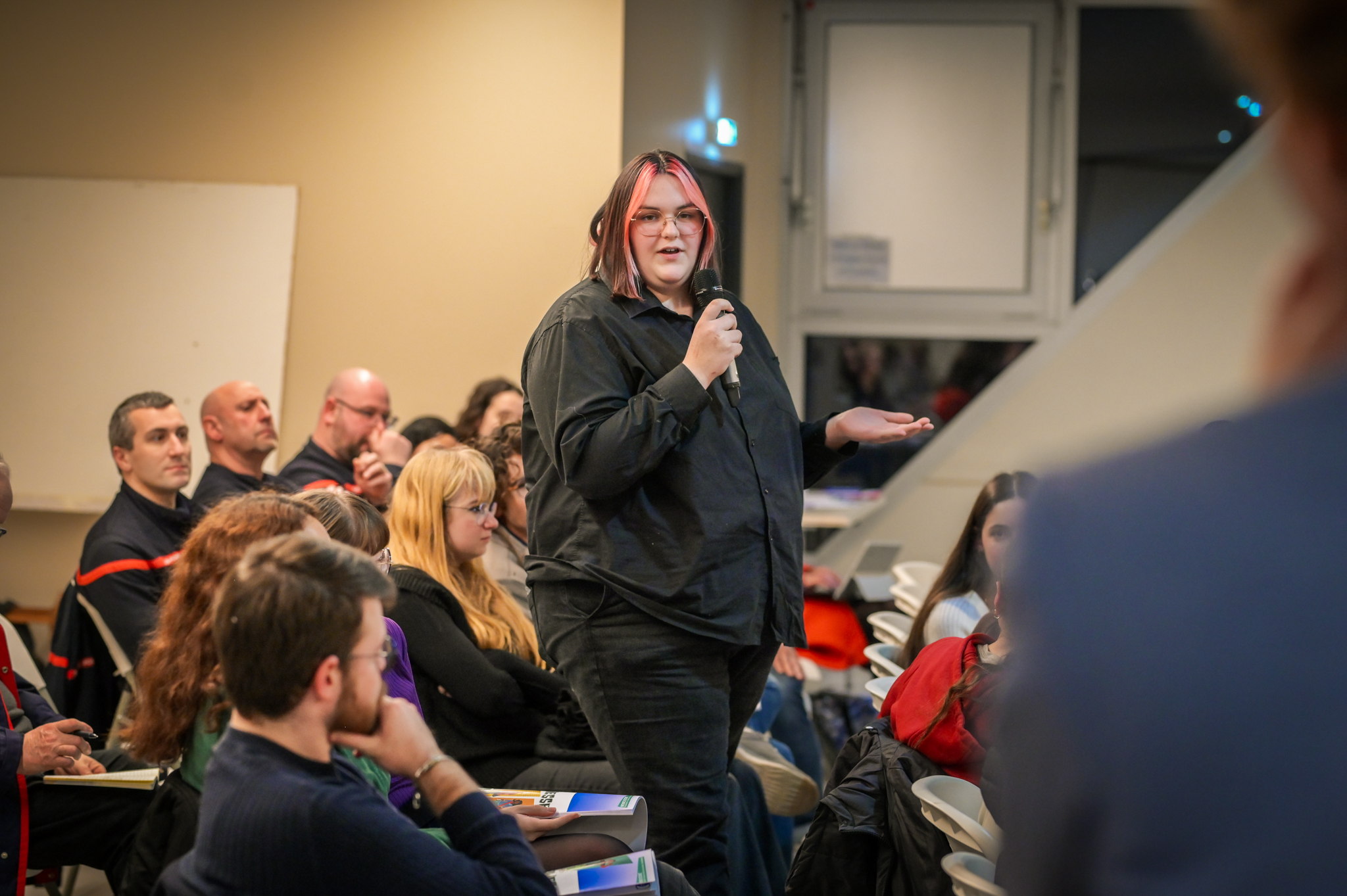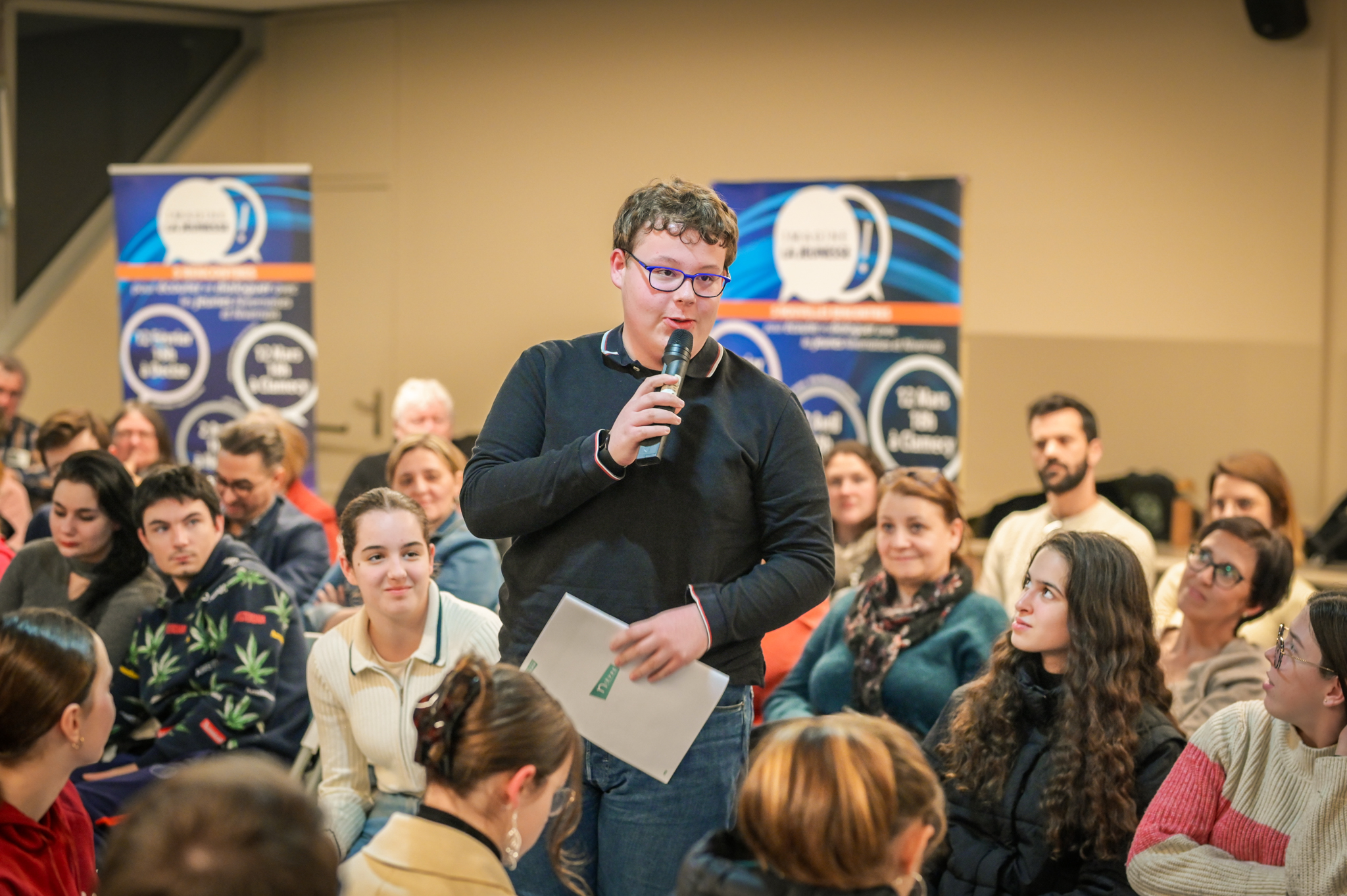 « Une salle qui est remplie de jeunes, c’est assez rare pour être souligné », souligne en préambule Justine Guyot, maire de Decize et vice-présidente du Conseil départemental, qui lève les timidités de l’auditoire en témoignant de son parcours : « J’ai eu mon premier mandat électif à 26 ans, ça prouve qu’il faut croire en la force de sa jeunesse. À Decize, on est très attachés à ces échanges citoyens, au contact direct avec les habitants. On ne peut plus penser les politiques publiques autrement qu’avec les jeunes, et pour les jeunes. »
