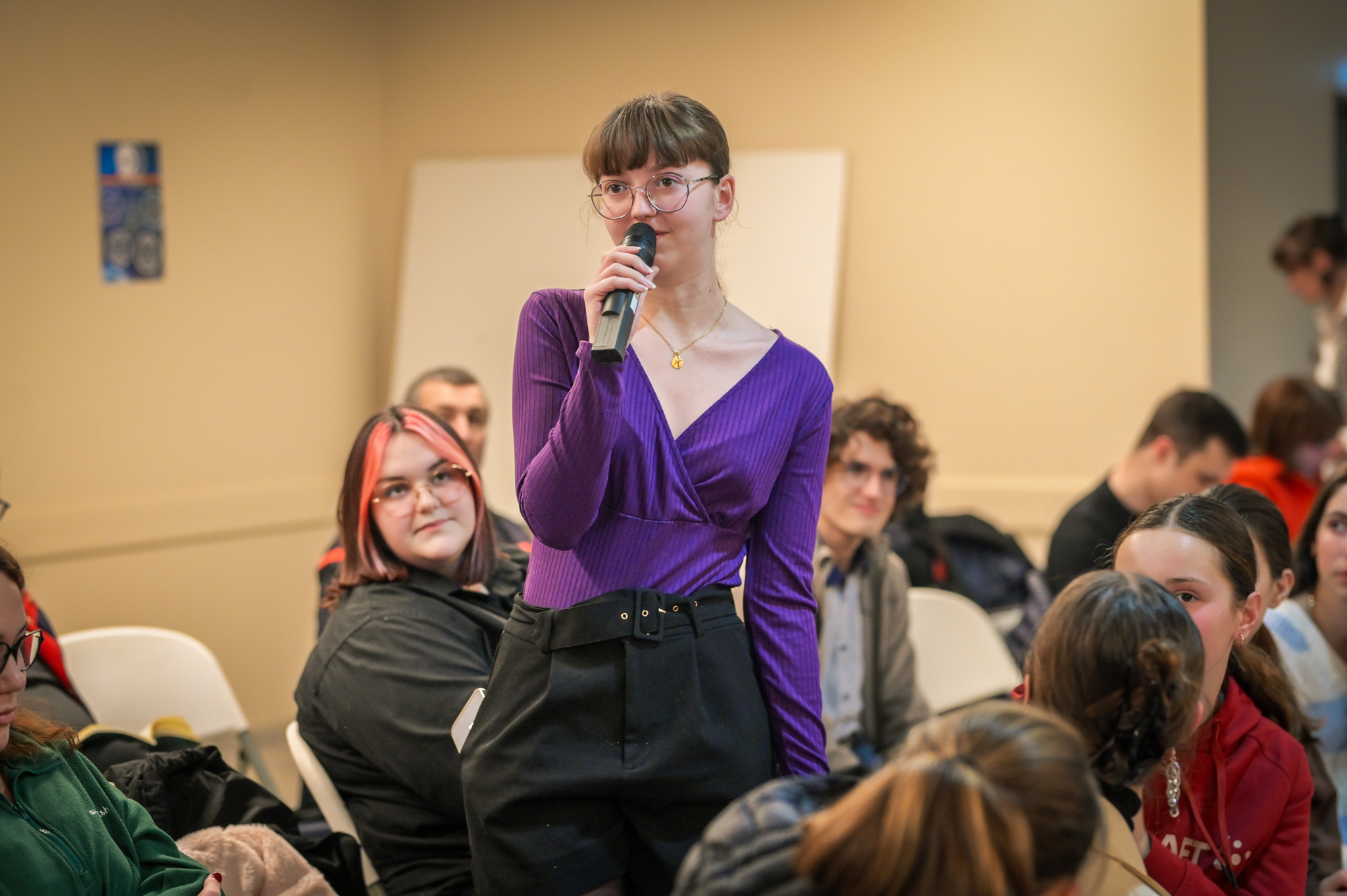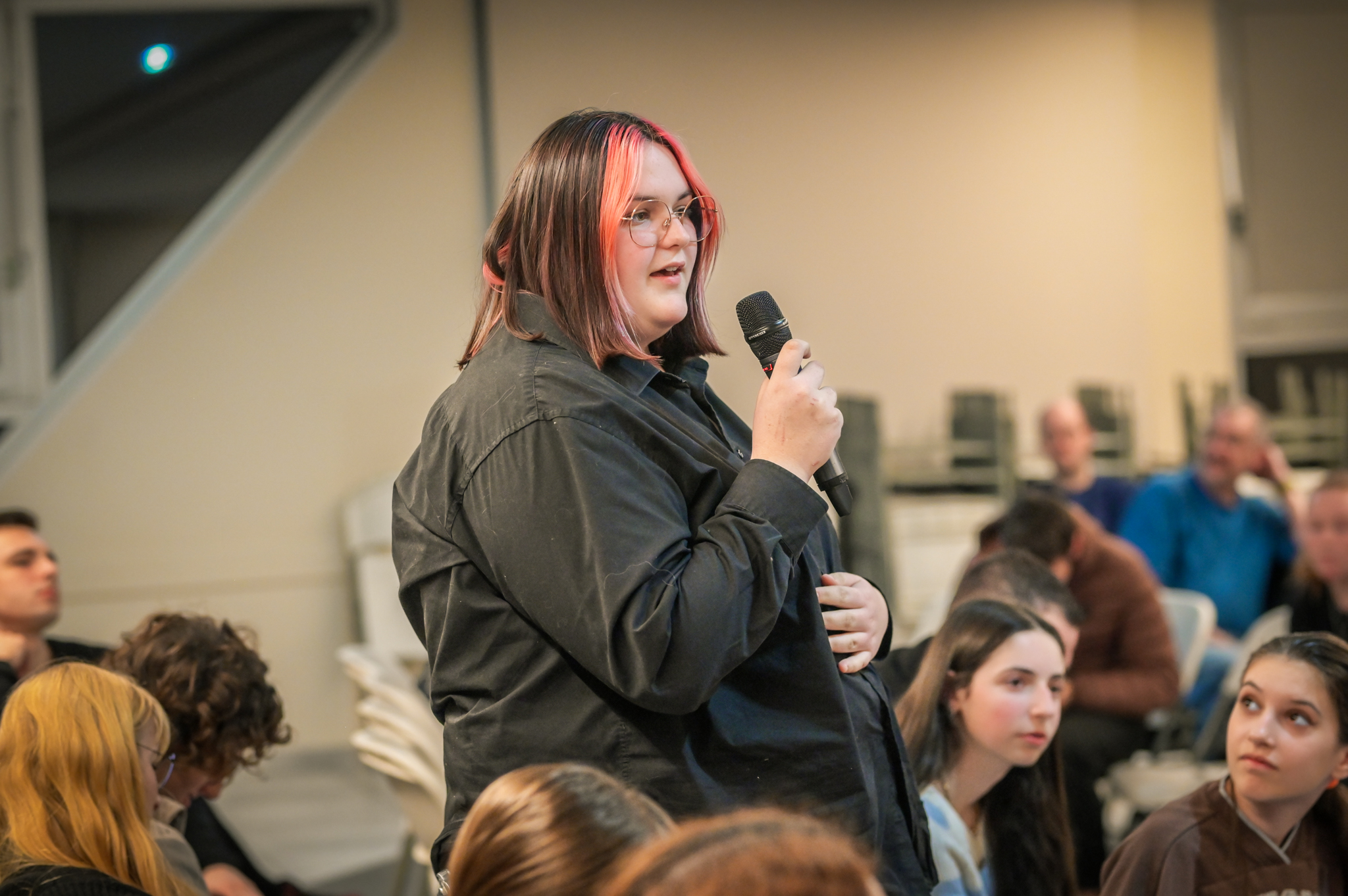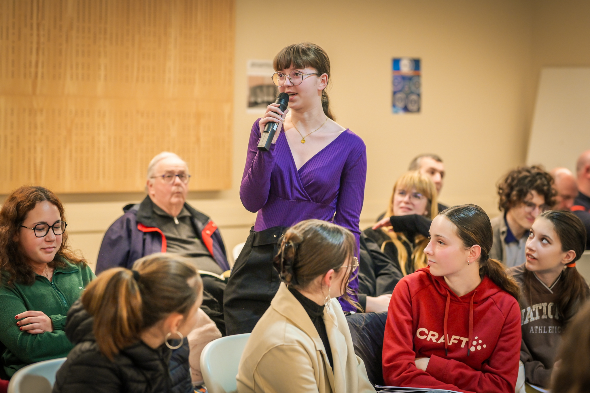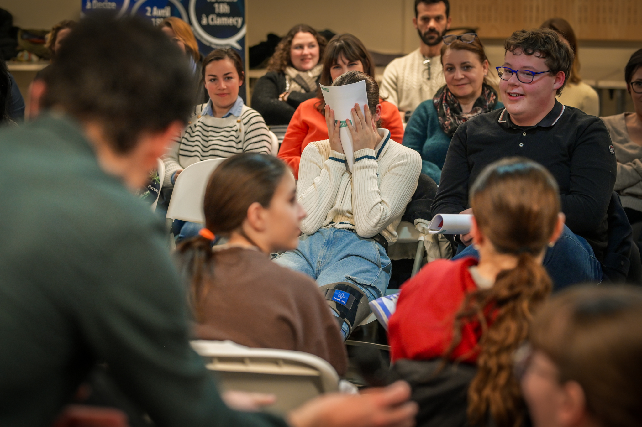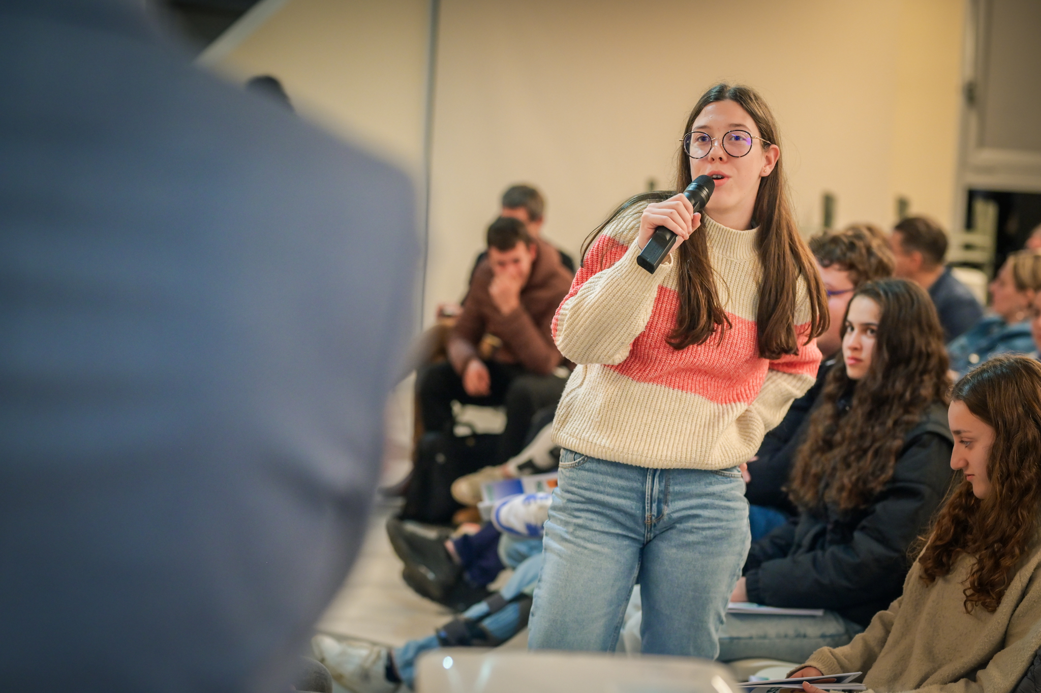 « Une salle qui est remplie de jeunes, c’est assez rare pour être souligné », souligne en préambule Justine Guyot, maire de Decize et vice-présidente du Conseil départemental, qui lève les timidités de l’auditoire en témoignant de son parcours : « J’ai eu mon premier mandat électif à 26 ans, ça prouve qu’il faut croire en la force de sa jeunesse. À Decize, on est très attachés à ces échanges citoyens, au contact direct avec les habitants. On ne peut plus penser les politiques publiques autrement qu’avec les jeunes, et pour les jeunes. »