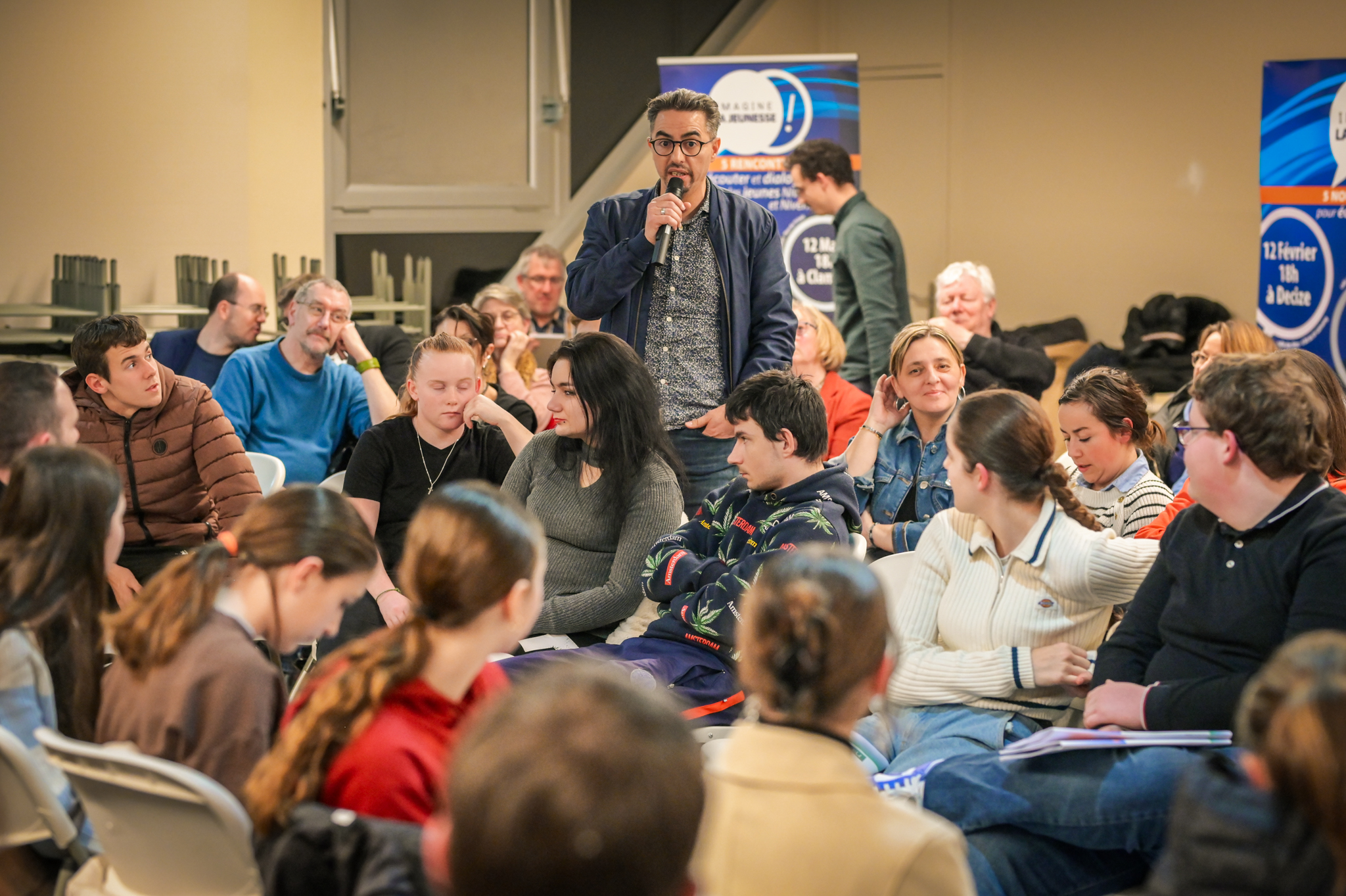 À son tour, Fabien Bazin, président du Conseil départemental, rappelle brièvement la genèse d’Imagine la jeunesse, le prolongement « version jeune » du dialogue citoyen Imagine la Nièvre !, ouvert en 2022 : « On veut vous écouter, vous réécouter jusqu’à la fin du mandat, en 2028. Votre parole est sacrée, car il est rare que l’on demande aux jeunes ce qu’ils veulent, leurs rêves, l’aide dont ils ont besoin. »