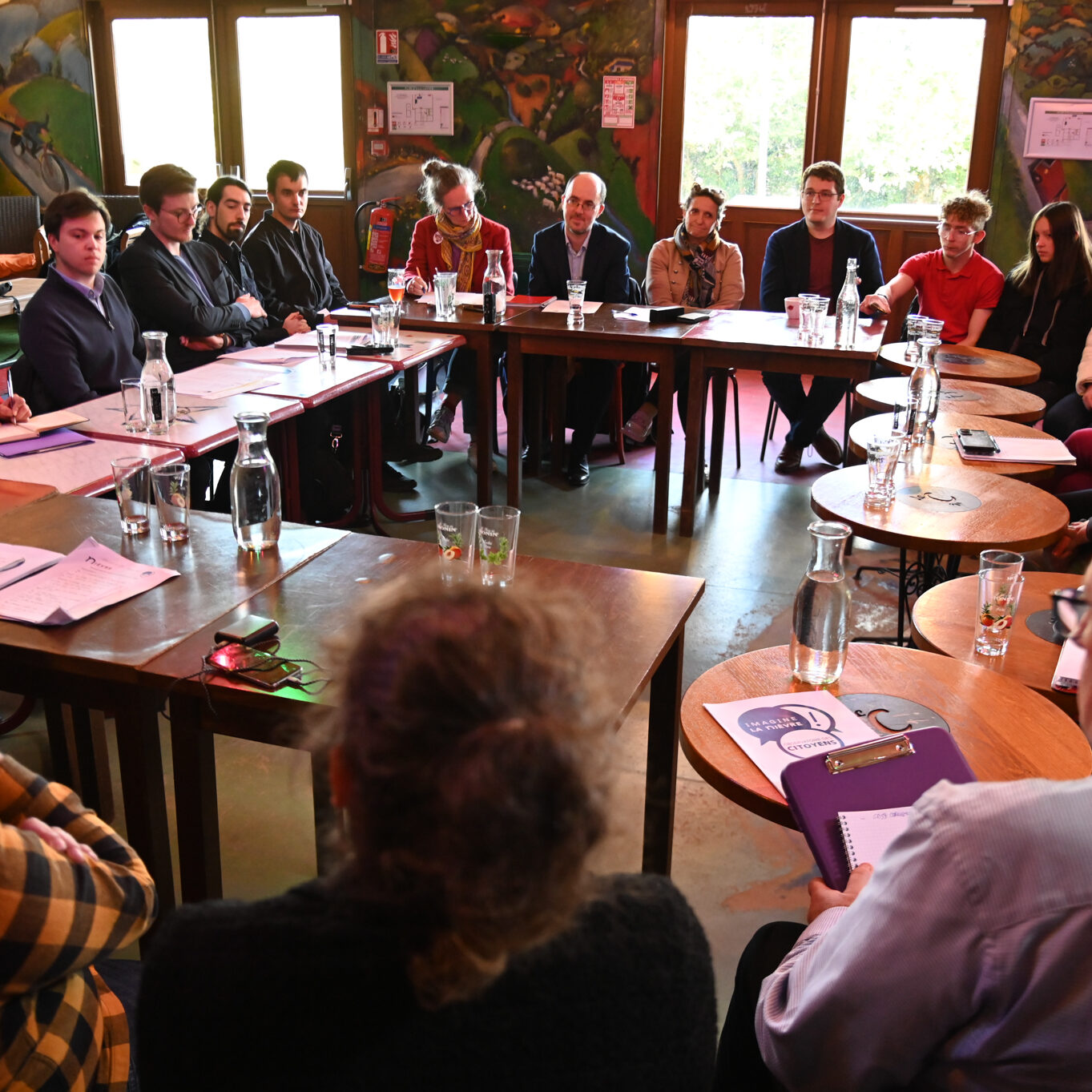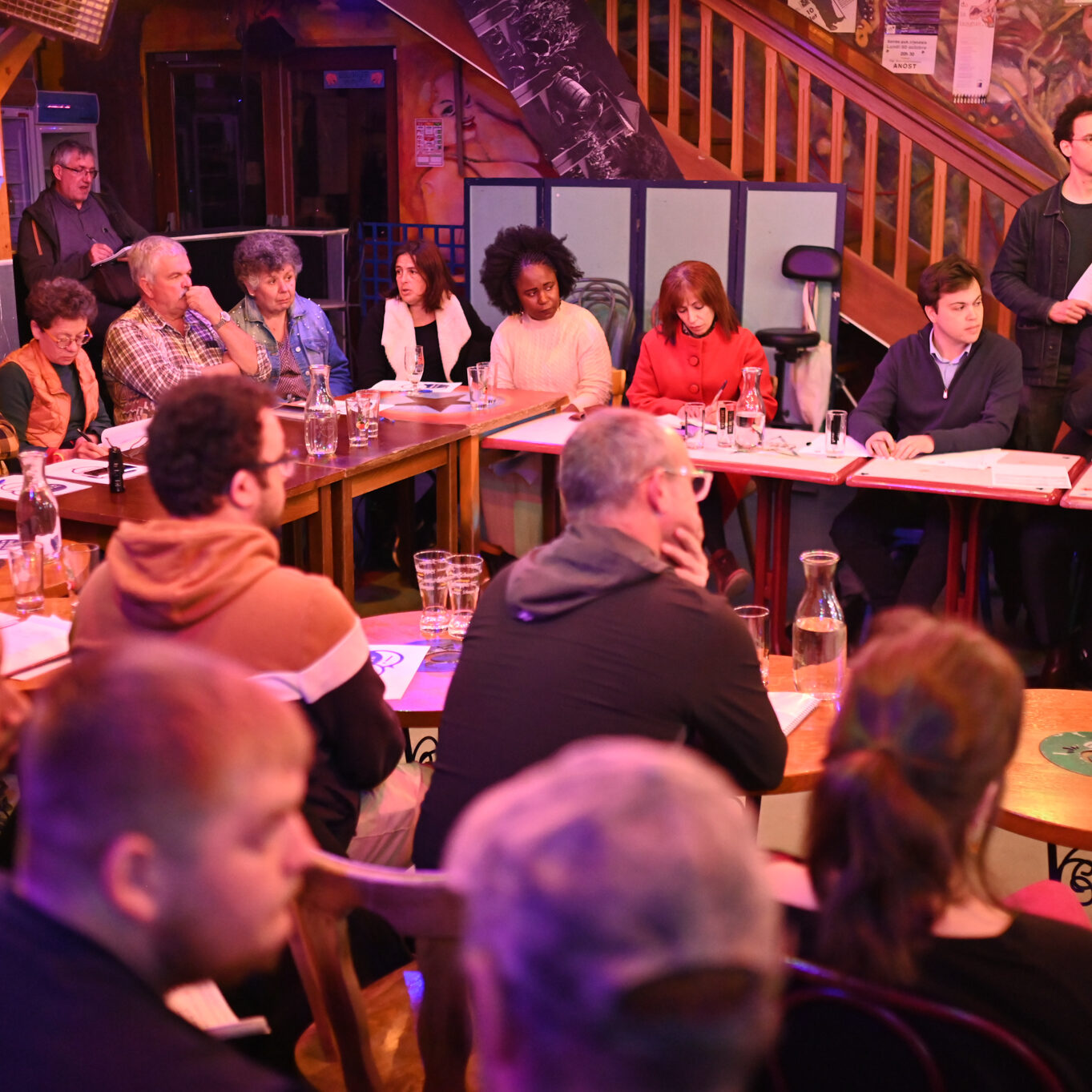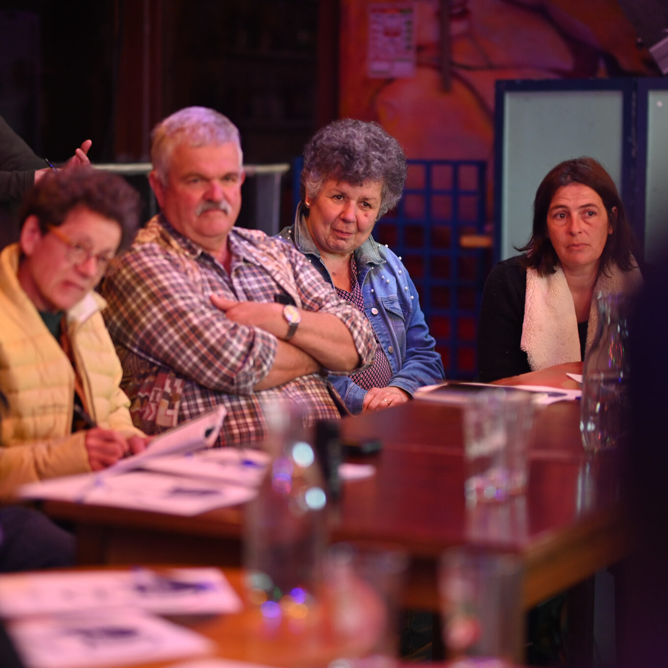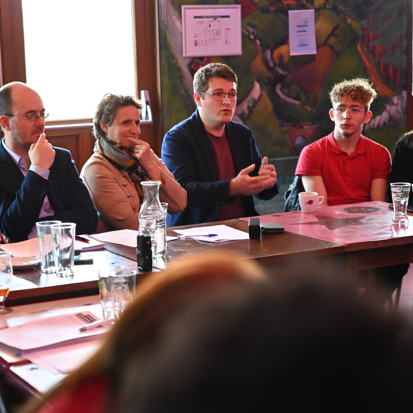 La nouvelle salle de concerts, construite à l’arrière du long bâtiment par les anciens propriétaires, a prêté ses flancs chauds et son plafond égayé de guirlandes d’ampoules multicolores à l’exercice rigoureux de l’évaluation des engagements pris par le Conseil départemental en faveur de la jeunesse. En préambule, Nicolas Petiot a brossé le portrait du Cornemuse et sa ligne directrice depuis la reprise par le trio d’amis, en 2019 : « L’ensemble du projet a été tourné sur la jeunesse, l’engagement et la formation. On accueille des services civiques, des stagiaires, des apprentis. On a également élaboré un programme, les Fondamentaux, où on appelle les gens à partager leurs savoirs, par exemple sur la cuisine, le cinéma, la forêt. Le but, c’est de permettre aux jeunes qui ne fréquentent pas Le Cornemuse de se réapproprier le lieu. »