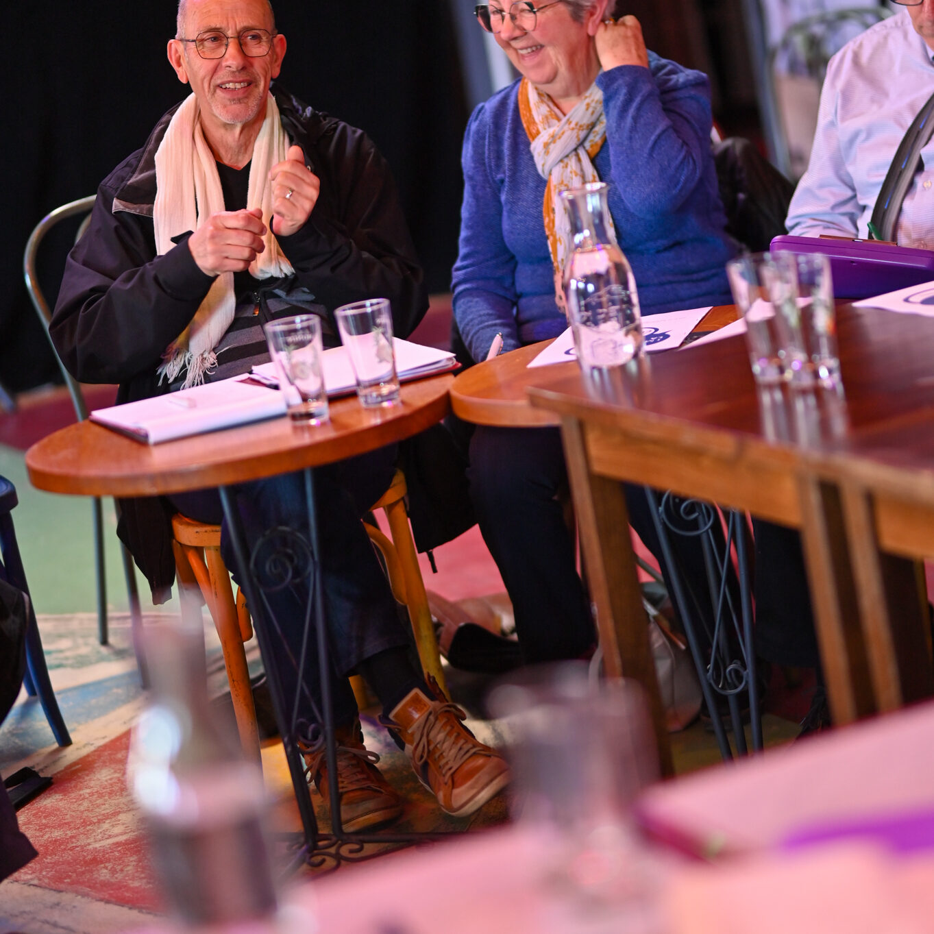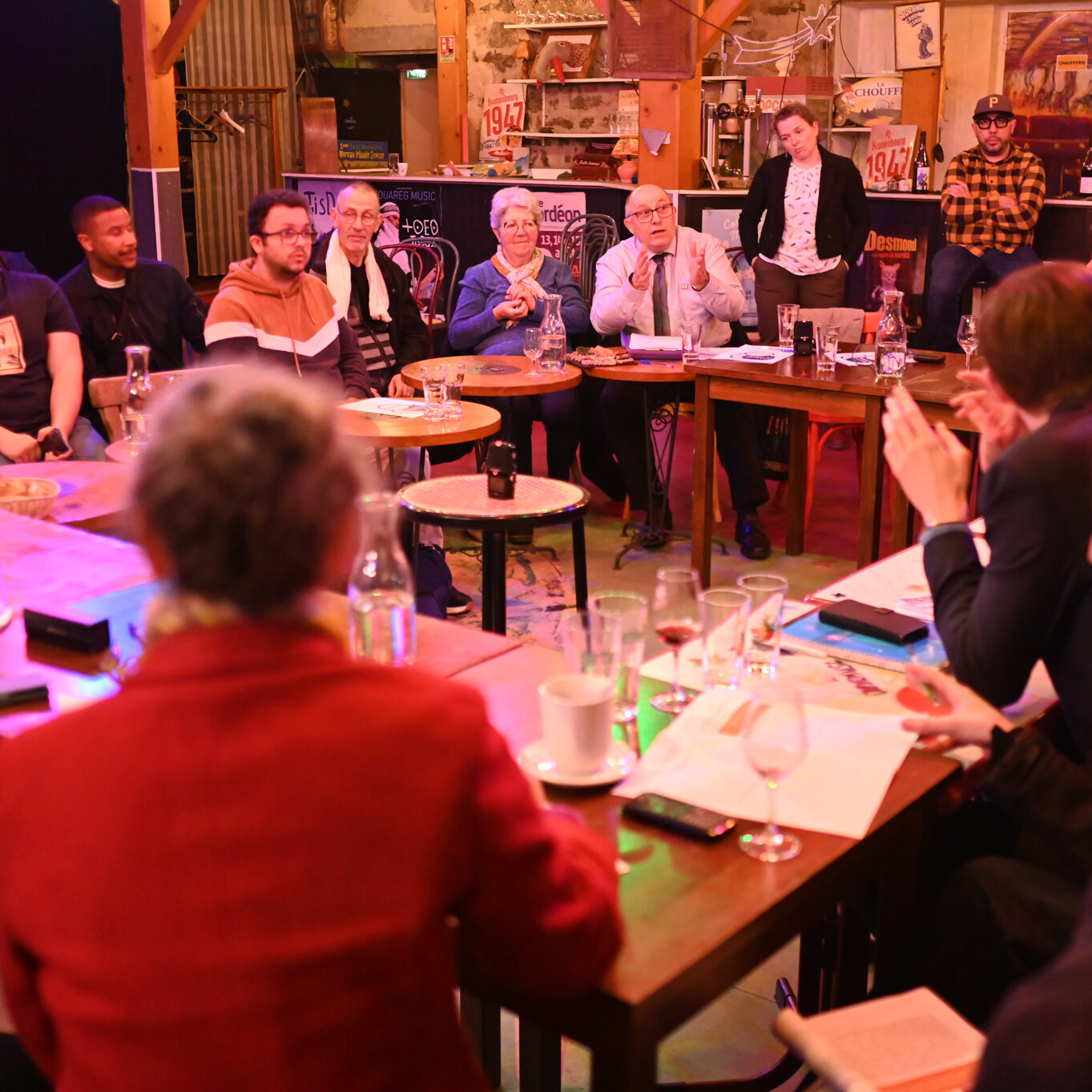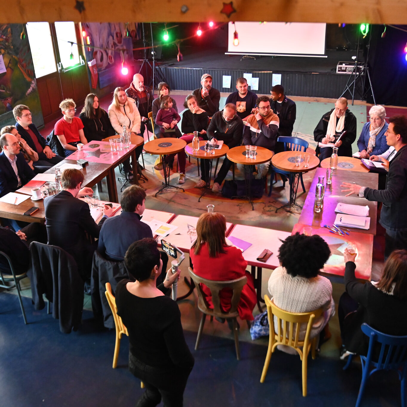 La nouvelle salle de concerts, construite à l’arrière du long bâtiment par les anciens propriétaires, a prêté ses flancs chauds et son plafond égayé de guirlandes d’ampoules multicolores à l’exercice rigoureux de l’évaluation des engagements pris par le Conseil départemental en faveur de la jeunesse. En préambule, Nicolas Petiot a brossé le portrait du Cornemuse et sa ligne directrice depuis la reprise par le trio d’amis, en 2019 : « L’ensemble du projet a été tourné sur la jeunesse, l’engagement et la formation. On accueille des services civiques, des stagiaires, des apprentis. On a également élaboré un programme, les Fondamentaux, où on appelle les gens à partager leurs savoirs, par exemple sur la cuisine, le cinéma, la forêt. Le but, c’est de permettre aux jeunes qui ne fréquentent pas Le Cornemuse de se réapproprier le lieu. »