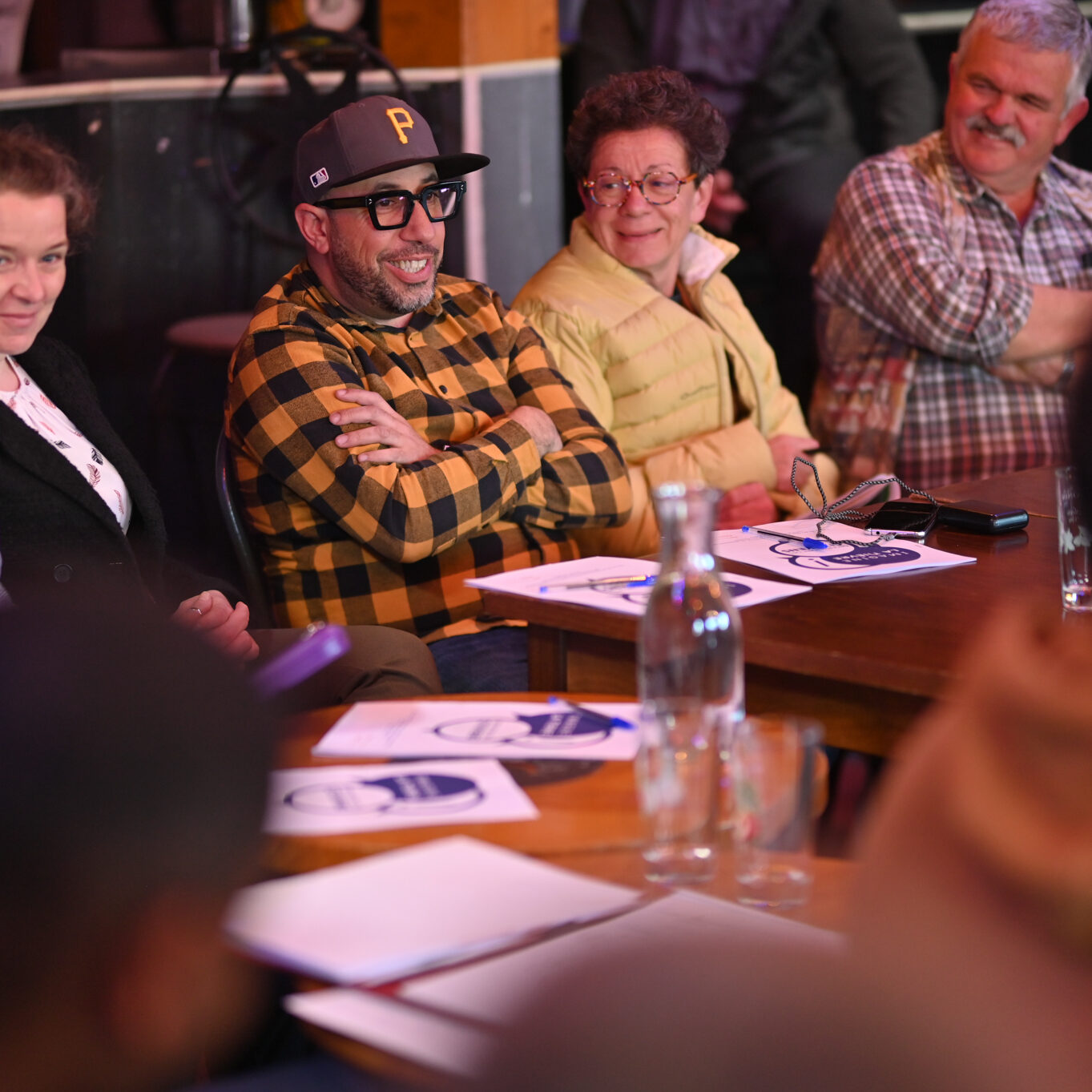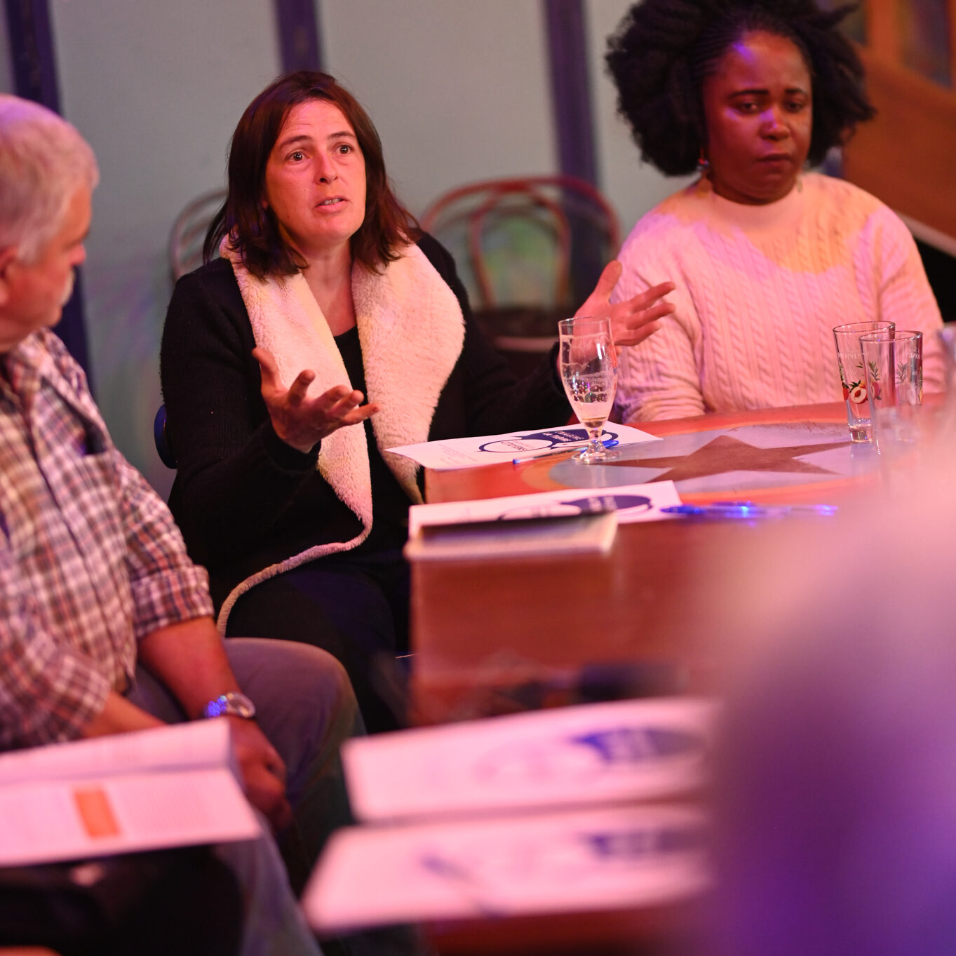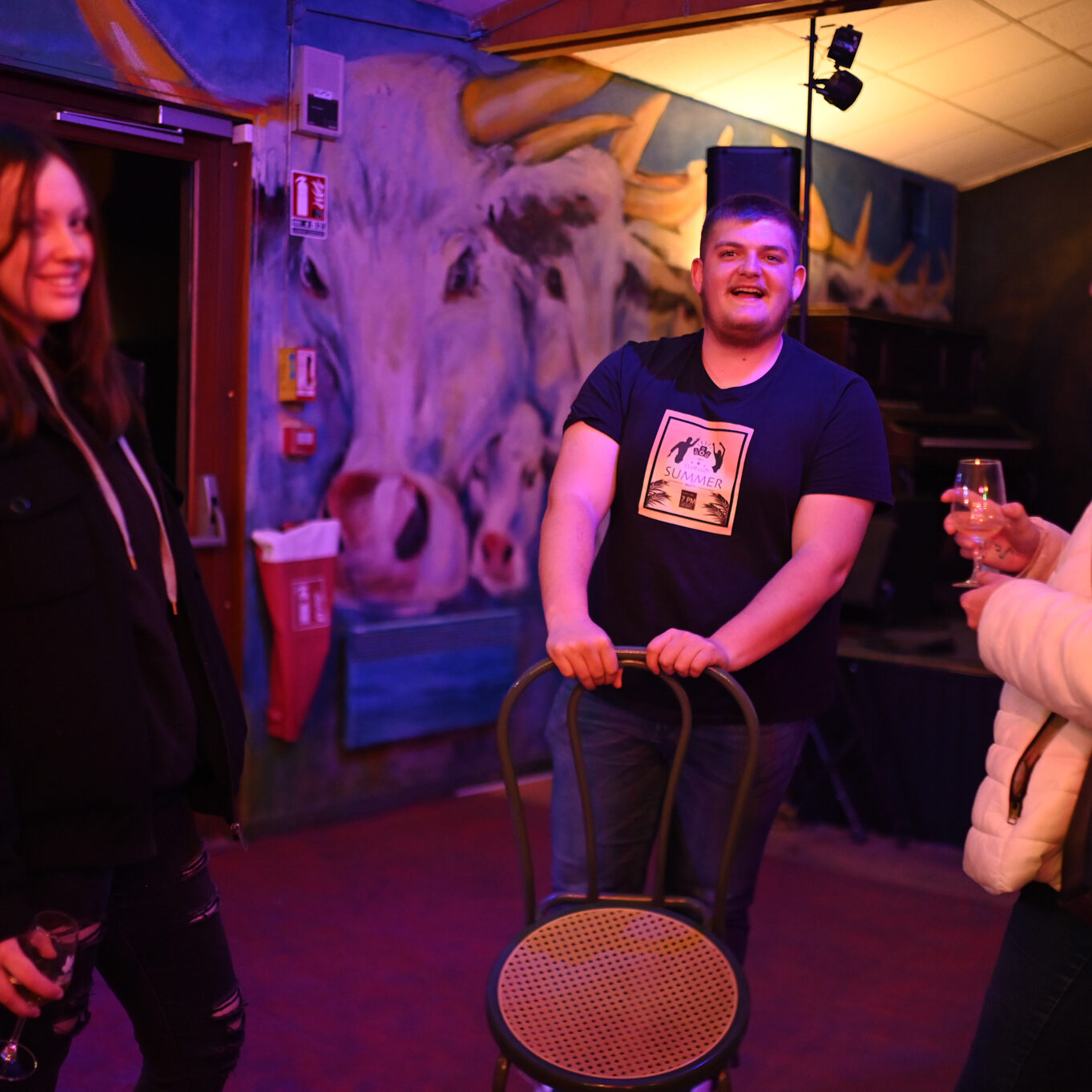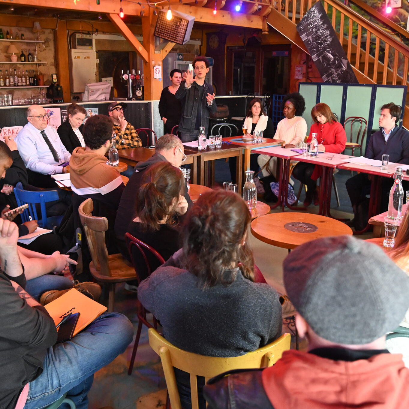 La nouvelle salle de concerts, construite à l’arrière du long bâtiment par les anciens propriétaires, a prêté ses flancs chauds et son plafond égayé de guirlandes d’ampoules multicolores à l’exercice rigoureux de l’évaluation des engagements pris par le Conseil départemental en faveur de la jeunesse. En préambule, Nicolas Petiot a brossé le portrait du Cornemuse et sa ligne directrice depuis la reprise par le trio d’amis, en 2019 : « L’ensemble du projet a été tourné sur la jeunesse, l’engagement et la formation. On accueille des services civiques, des stagiaires, des apprentis. On a également élaboré un programme, les Fondamentaux, où on appelle les gens à partager leurs savoirs, par exemple sur la cuisine, le cinéma, la forêt. Le but, c’est de permettre aux jeunes qui ne fréquentent pas Le Cornemuse de se réapproprier le lieu. »