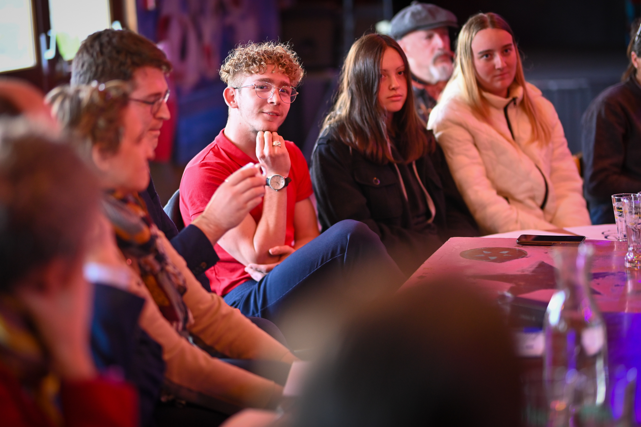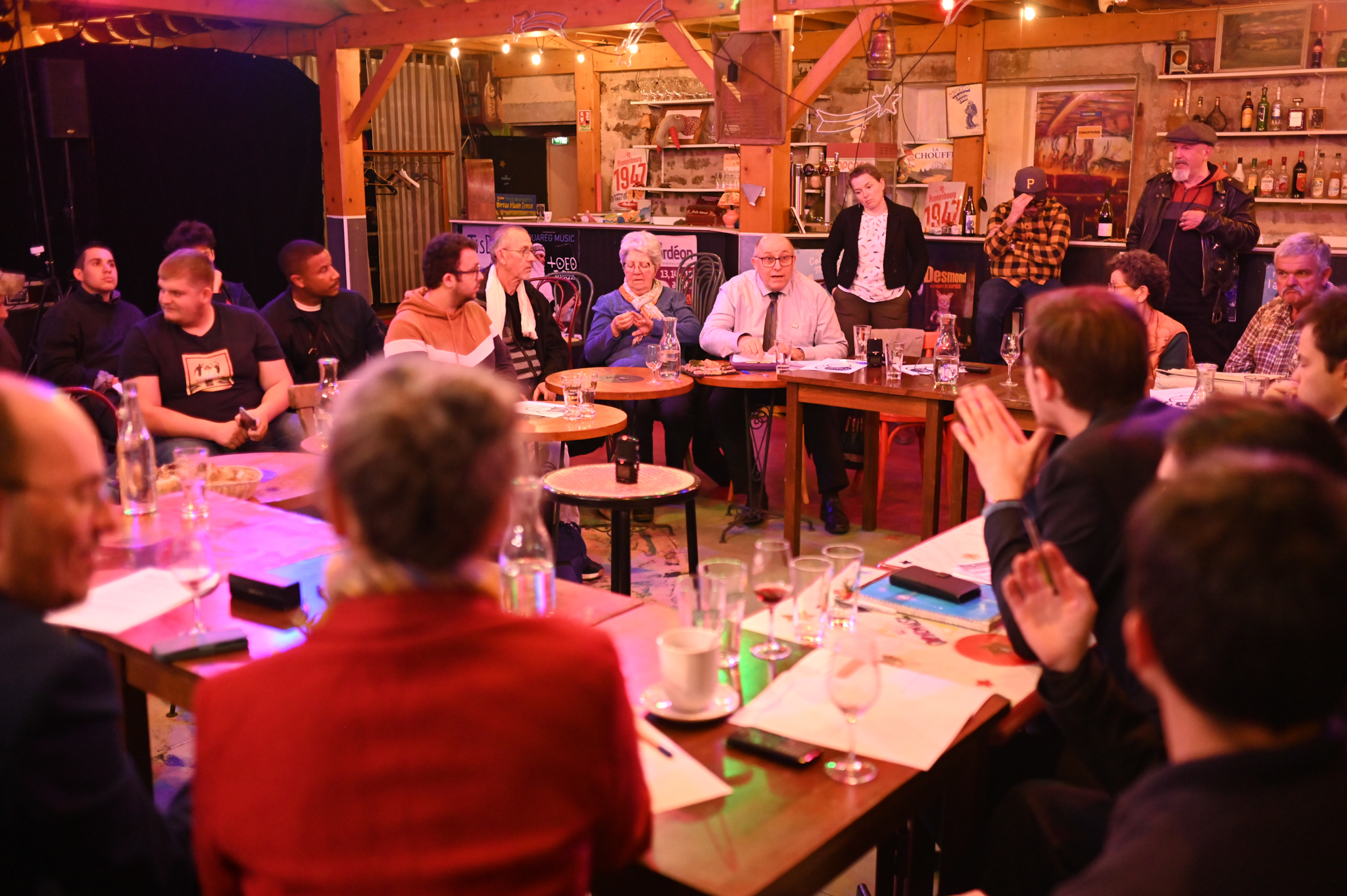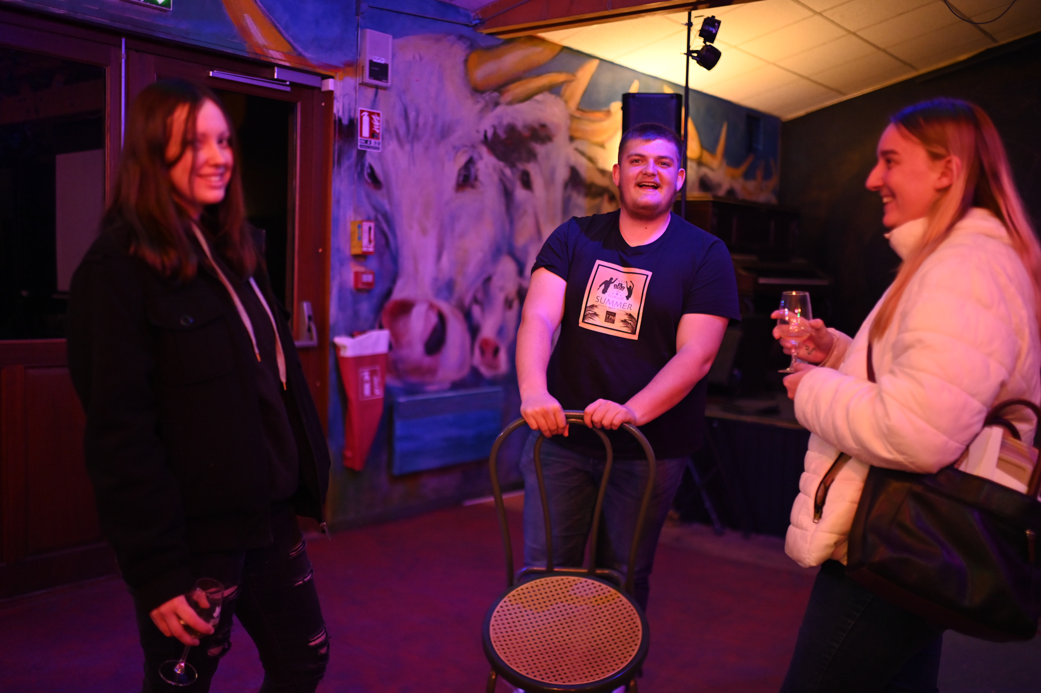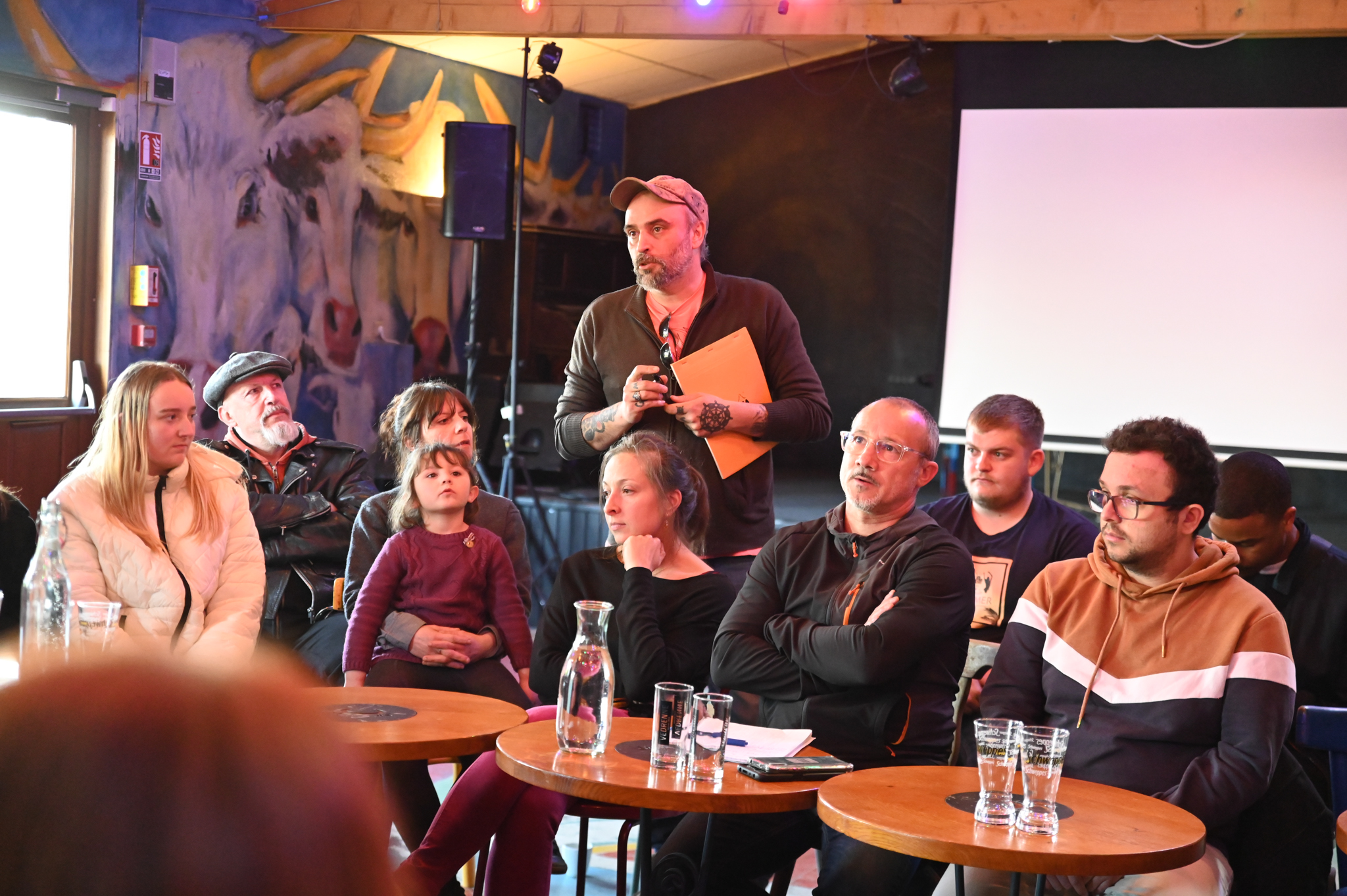 La nouvelle salle de concerts, construite à l’arrière du long bâtiment par les anciens propriétaires, a prêté ses flancs chauds et son plafond égayé de guirlandes d’ampoules multicolores à l’exercice rigoureux de l’évaluation des engagements pris par le Conseil départemental en faveur de la jeunesse. En préambule, Nicolas Petiot a brossé le portrait du Cornemuse et sa ligne directrice depuis la reprise par le trio d’amis, en 2019 : « L’ensemble du projet a été tourné sur la jeunesse, l’engagement et la formation. On accueille des services civiques, des stagiaires, des apprentis. On a également élaboré un programme, les Fondamentaux, où on appelle les gens à partager leurs savoirs, par exemple sur la cuisine, le cinéma, la forêt. Le but, c’est de permettre aux jeunes qui ne fréquentent pas Le Cornemuse de se réapproprier le lieu. »