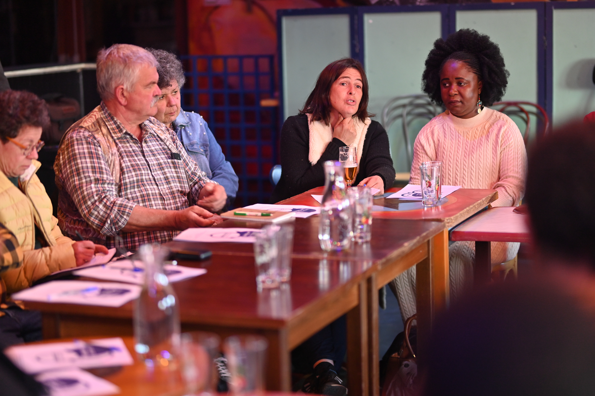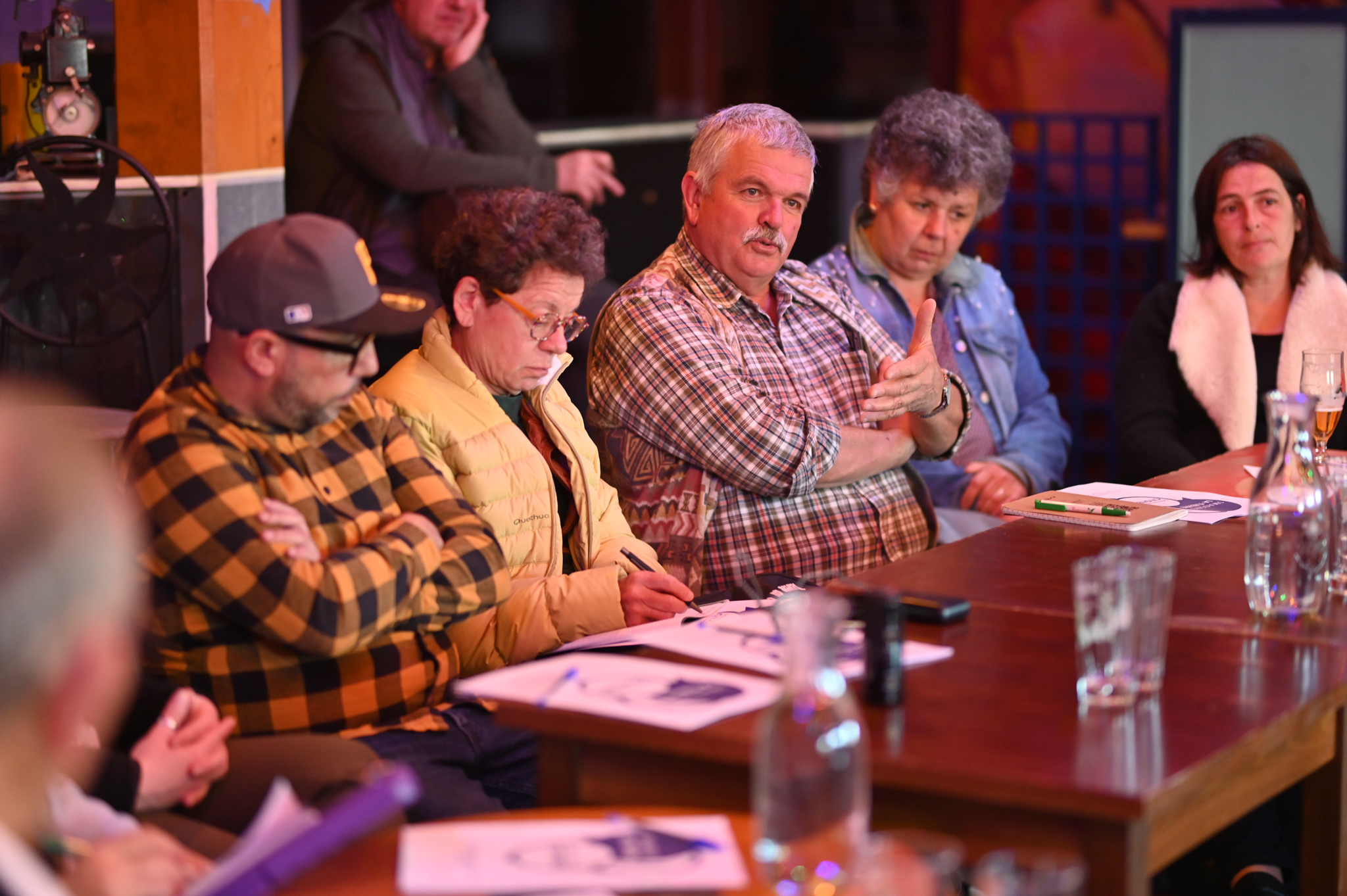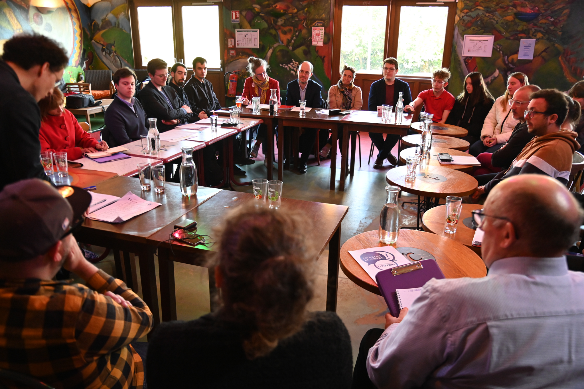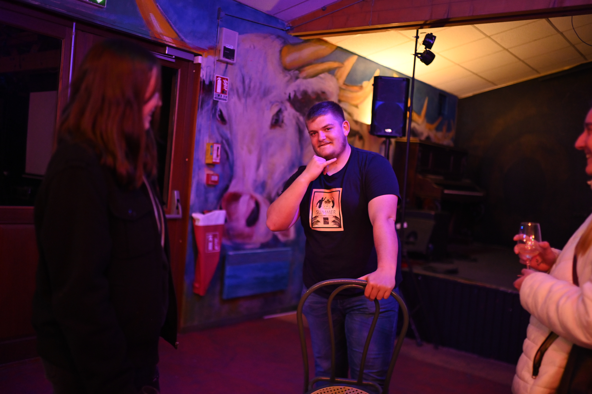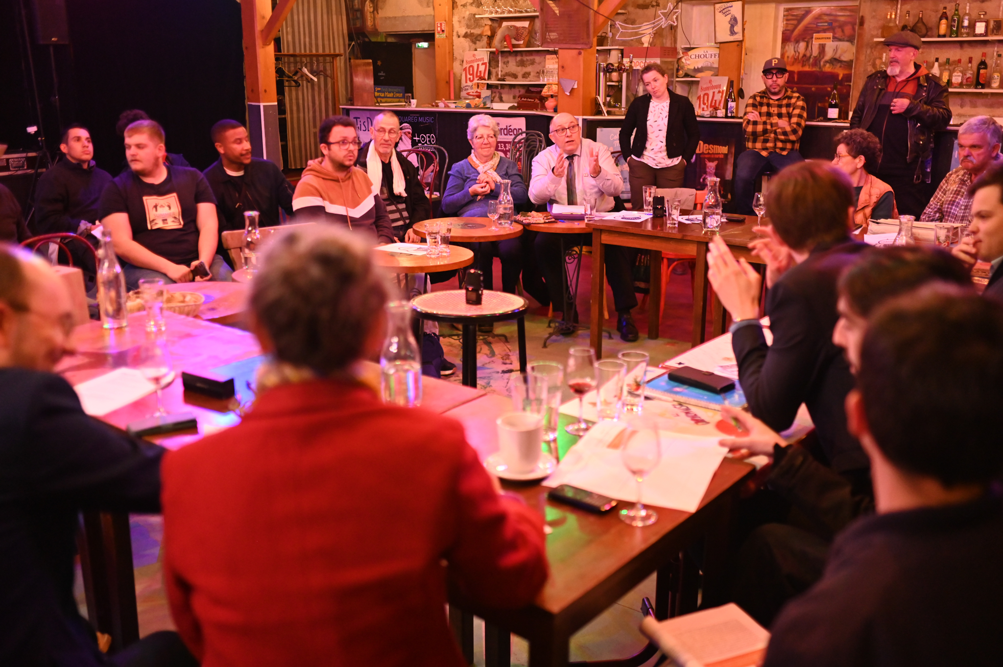 La nouvelle salle de concerts, construite à l’arrière du long bâtiment par les anciens propriétaires, a prêté ses flancs chauds et son plafond égayé de guirlandes d’ampoules multicolores à l’exercice rigoureux de l’évaluation des engagements pris par le Conseil départemental en faveur de la jeunesse. En préambule, Nicolas Petiot a brossé le portrait du Cornemuse et sa ligne directrice depuis la reprise par le trio d’amis, en 2019 : « L’ensemble du projet a été tourné sur la jeunesse, l’engagement et la formation. On accueille des services civiques, des stagiaires, des apprentis. On a également élaboré un programme, les Fondamentaux, où on appelle les gens à partager leurs savoirs, par exemple sur la cuisine, le cinéma, la forêt. Le but, c’est de permettre aux jeunes qui ne fréquentent pas Le Cornemuse de se réapproprier le lieu. »
