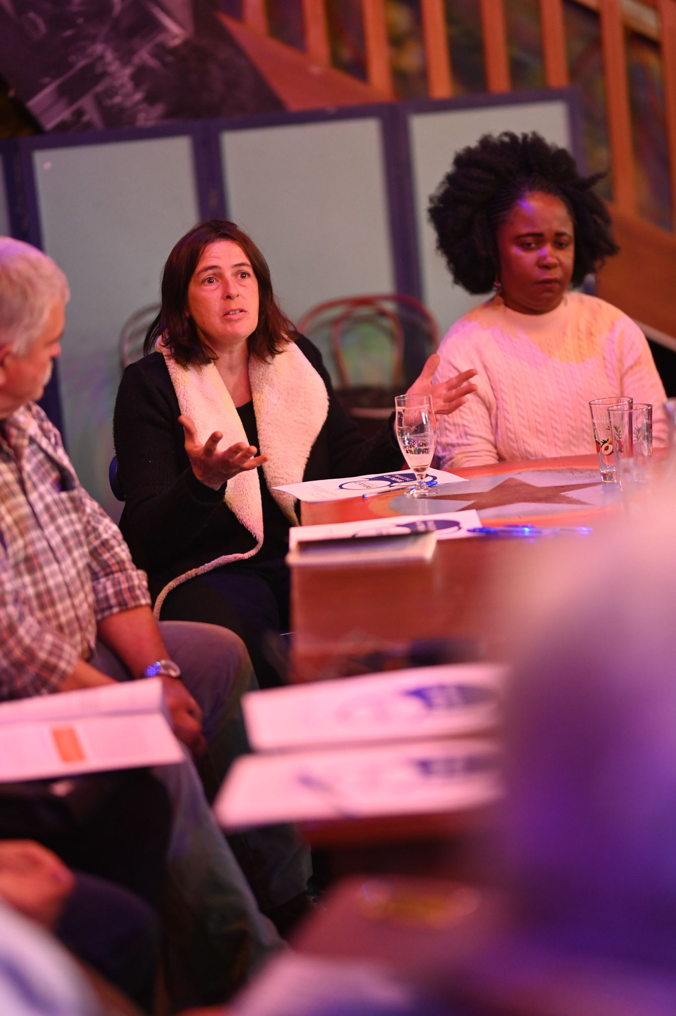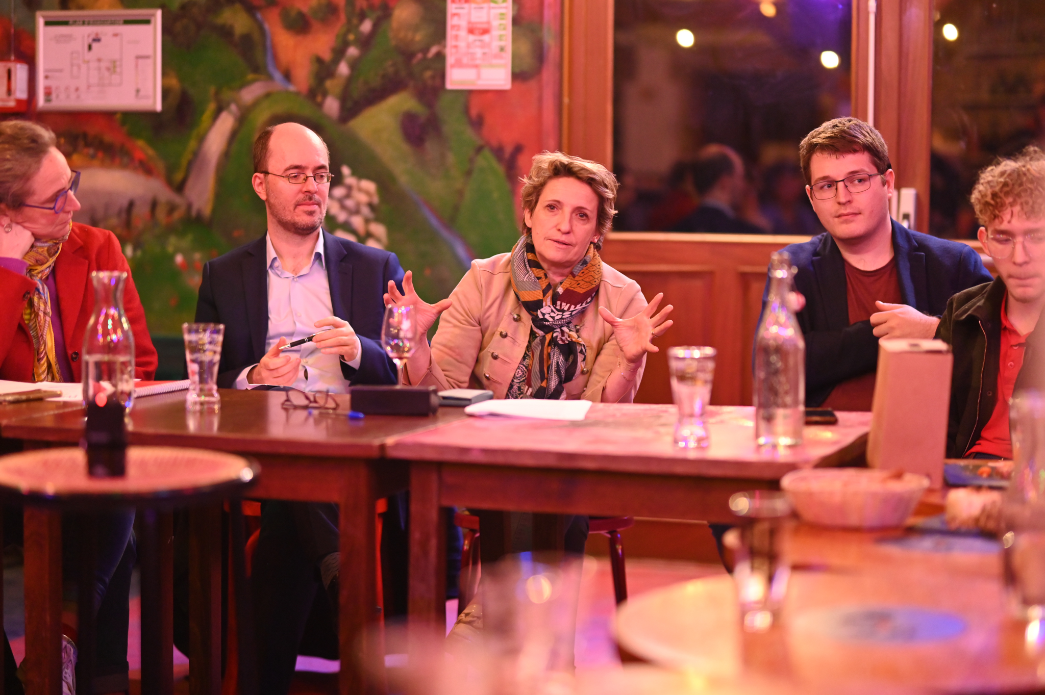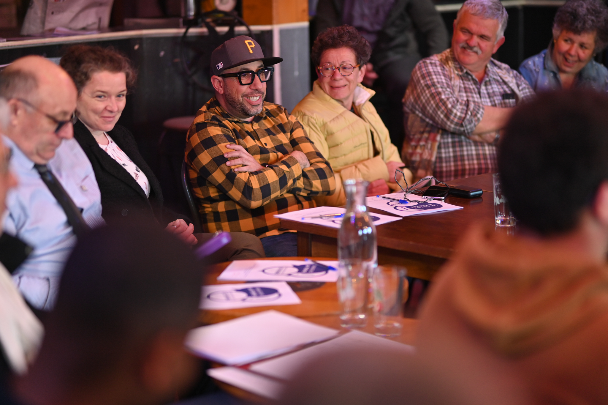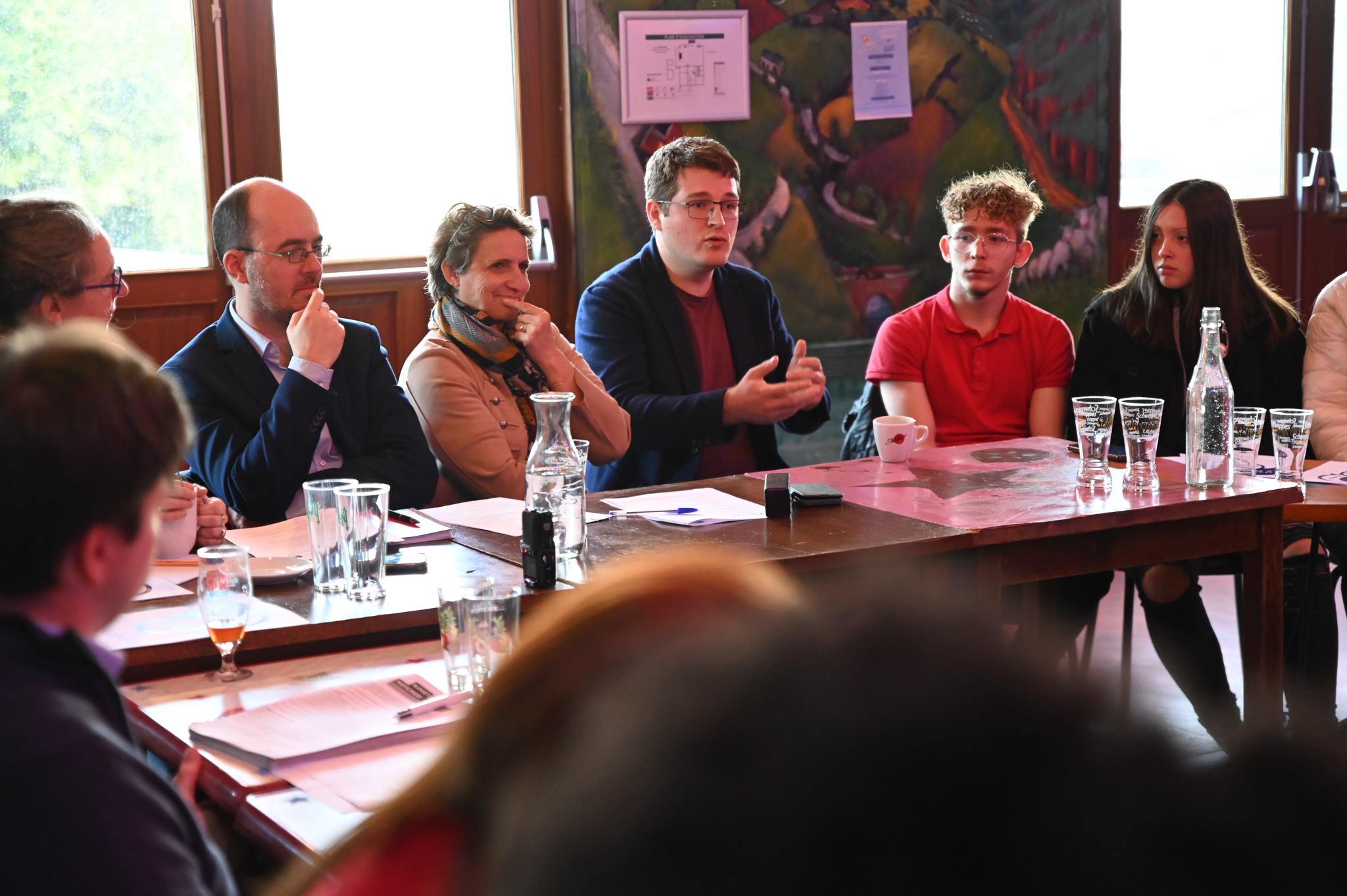 La nouvelle salle de concerts, construite à l’arrière du long bâtiment par les anciens propriétaires, a prêté ses flancs chauds et son plafond égayé de guirlandes d’ampoules multicolores à l’exercice rigoureux de l’évaluation des engagements pris par le Conseil départemental en faveur de la jeunesse. En préambule, Nicolas Petiot a brossé le portrait du Cornemuse et sa ligne directrice depuis la reprise par le trio d’amis, en 2019 : « L’ensemble du projet a été tourné sur la jeunesse, l’engagement et la formation. On accueille des services civiques, des stagiaires, des apprentis. On a également élaboré un programme, les Fondamentaux, où on appelle les gens à partager leurs savoirs, par exemple sur la cuisine, le cinéma, la forêt. Le but, c’est de permettre aux jeunes qui ne fréquentent pas Le Cornemuse de se réapproprier le lieu. »