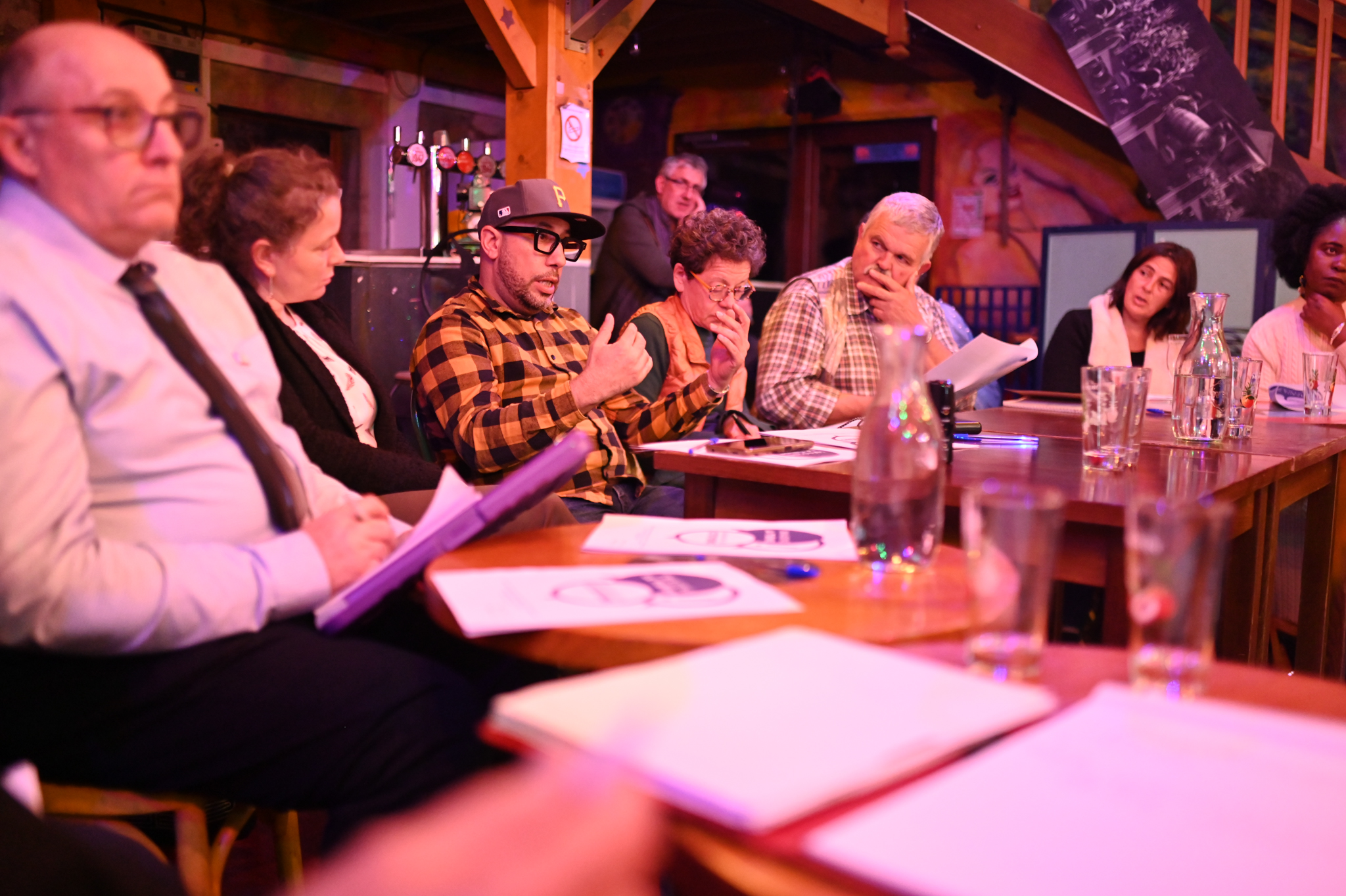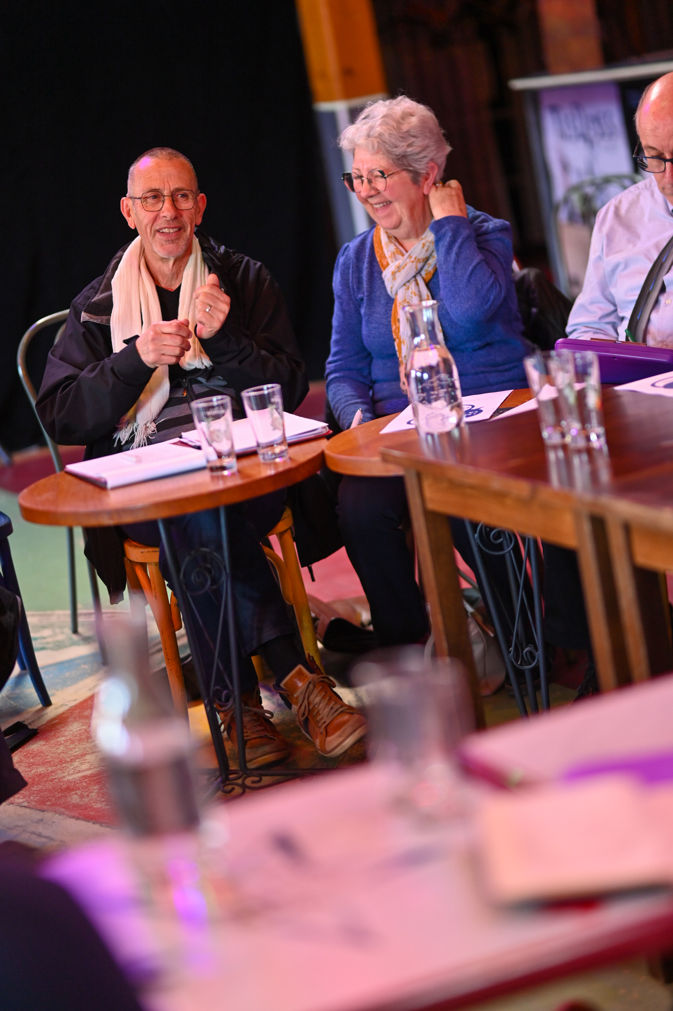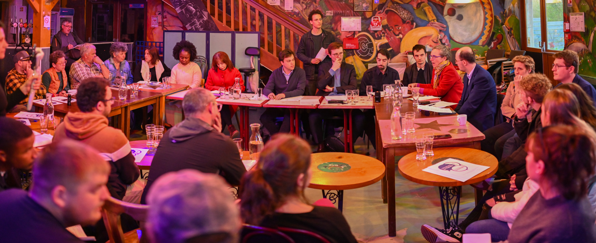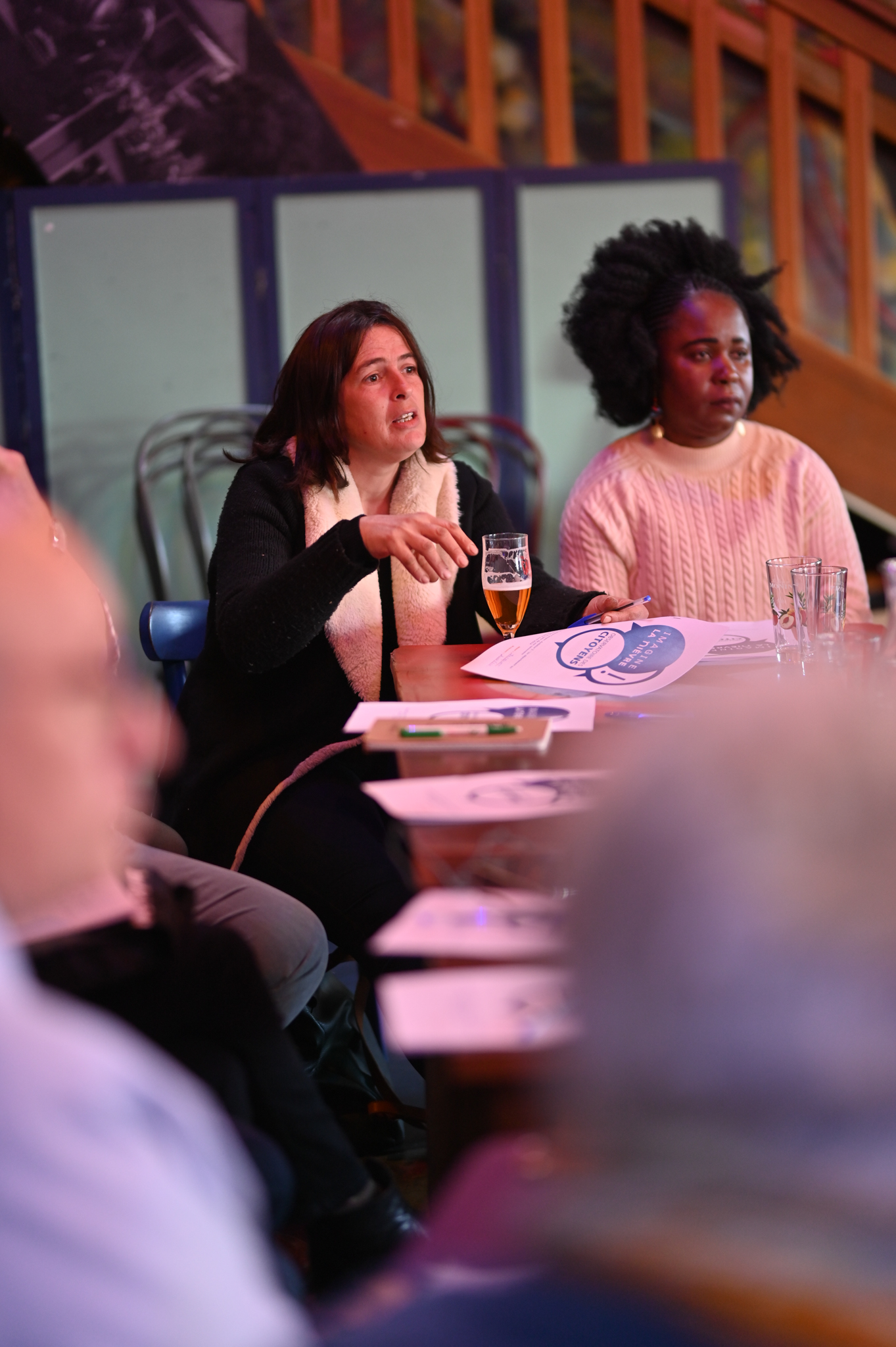 La nouvelle salle de concerts, construite à l’arrière du long bâtiment par les anciens propriétaires, a prêté ses flancs chauds et son plafond égayé de guirlandes d’ampoules multicolores à l’exercice rigoureux de l’évaluation des engagements pris par le Conseil départemental en faveur de la jeunesse. En préambule, Nicolas Petiot a brossé le portrait du Cornemuse et sa ligne directrice depuis la reprise par le trio d’amis, en 2019 : « L’ensemble du projet a été tourné sur la jeunesse, l’engagement et la formation. On accueille des services civiques, des stagiaires, des apprentis. On a également élaboré un programme, les Fondamentaux, où on appelle les gens à partager leurs savoirs, par exemple sur la cuisine, le cinéma, la forêt. Le but, c’est de permettre aux jeunes qui ne fréquentent pas Le Cornemuse de se réapproprier le lieu. »
