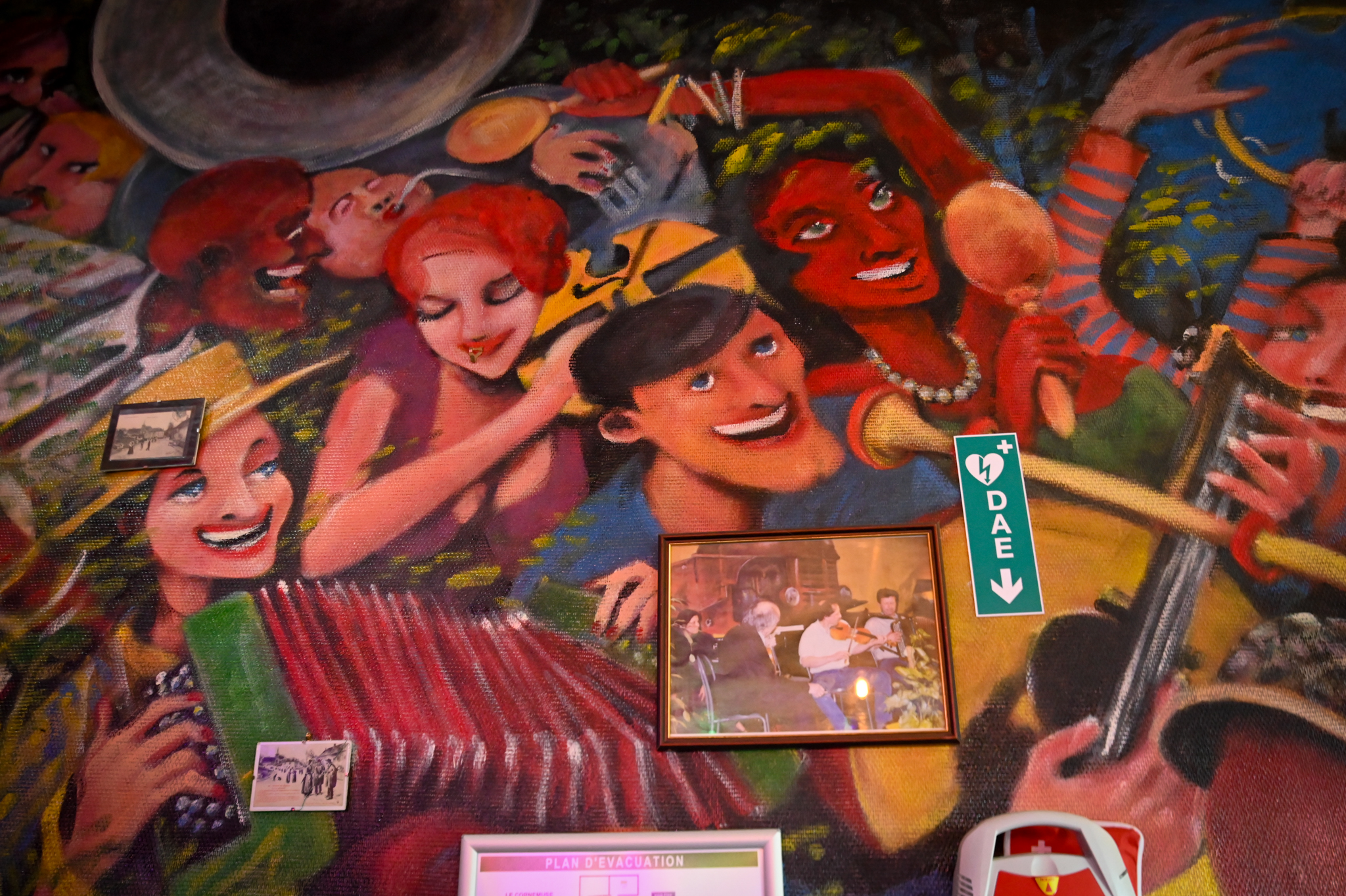 Ses façades tatouées de scènes joyeusement polychromes ralentissent les automobilistes dans Arleuf aussi efficacement qu’un radar pédagogique ou un coussin berlinois. Le Cornemuse fait partie des institutions esthétiques, culturelles et sociales du Morvan et de la Nièvre. Un lieu vibrant d’histoire, de ses vies passées d’Auberge de la Poste puis d’Hôtel de la Poste, dont le parquet résonnait des « guinguettes, des bals et des bœufs », comme l’a rappelé Marine Hadjuk, co-gérante avec Nicolas Petiot et Sylvain Vereycken—Lazou, en accueillant la visite de l’Observatoire des citoyens.