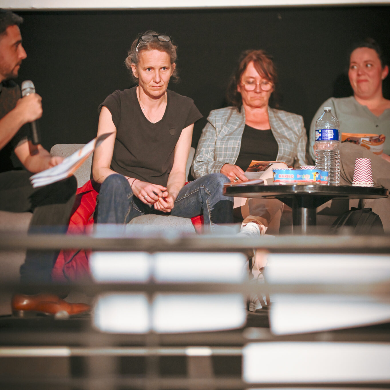 La boîte de Haribo ne survit pas à la séance. Aline, Leslie, Harmony, Xavière et leurs amies du groupe « Maman sauve-toi » piochent dans les friandises posées sur la table, pour se rassurer et se donner du cœur au témoignage, à la mise à nu de leurs tourments, passés ou présents, de mères. Elles sont sept, serrées comme des oiseaux sur une branche, assises sur la scène de la grande salle de l’Eden Cinéma, en compagnie de l’éducateur Arthur Damerval, qui anime, questionne, plaisante quand l’émotion pèse.
