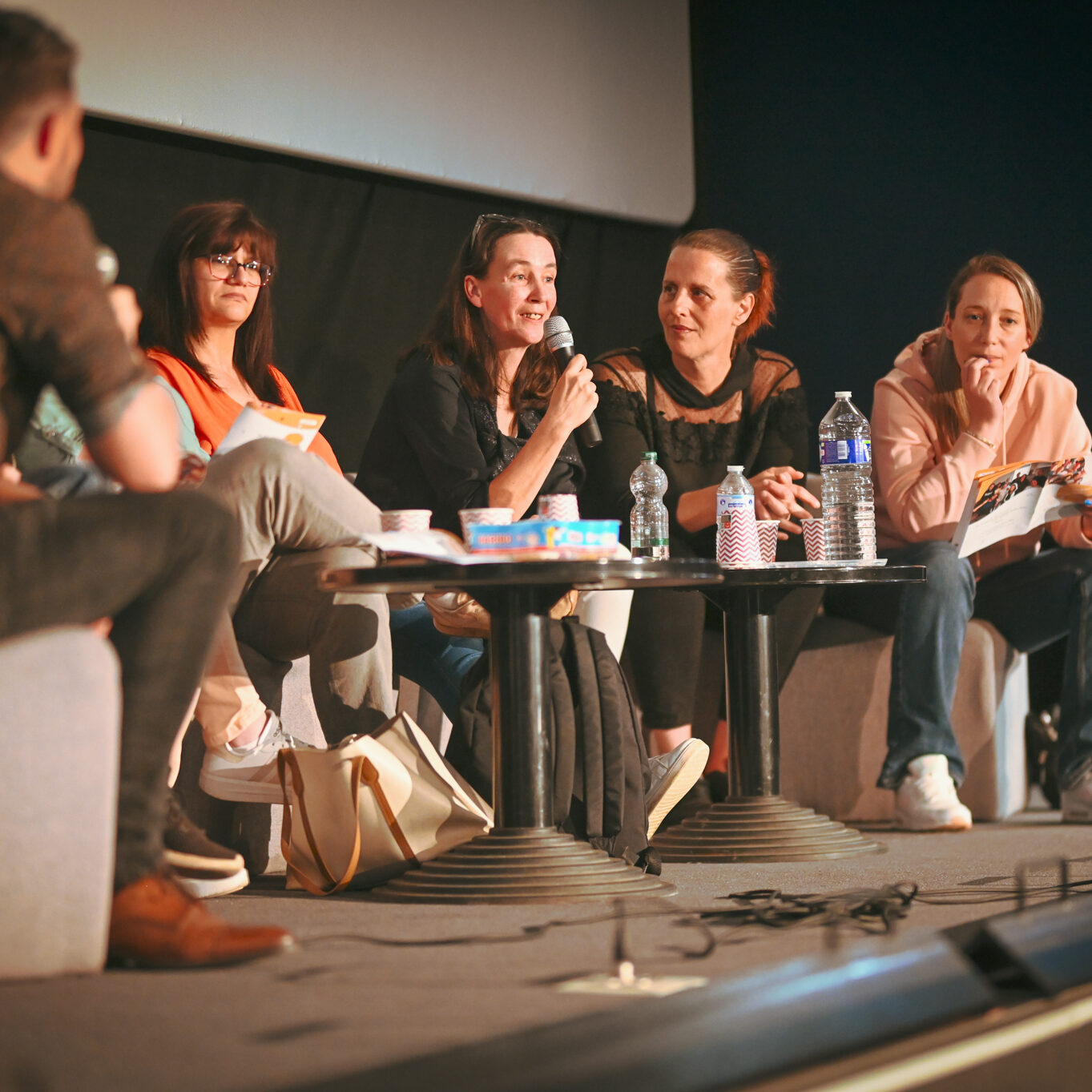 La rencontre s’achève, le public applaudit, les discussions se prolongent, naturellement, autour d’un verre de l’amitié, dans le hall du cinéma et sur le parvis. Les visages des « Maman sauve-toi » rayonnent, les yeux brillent, fiers et soulagés, une douce euphorie plane, entre sourires et fous rires nerveux. La boîte de Haribo est vide.