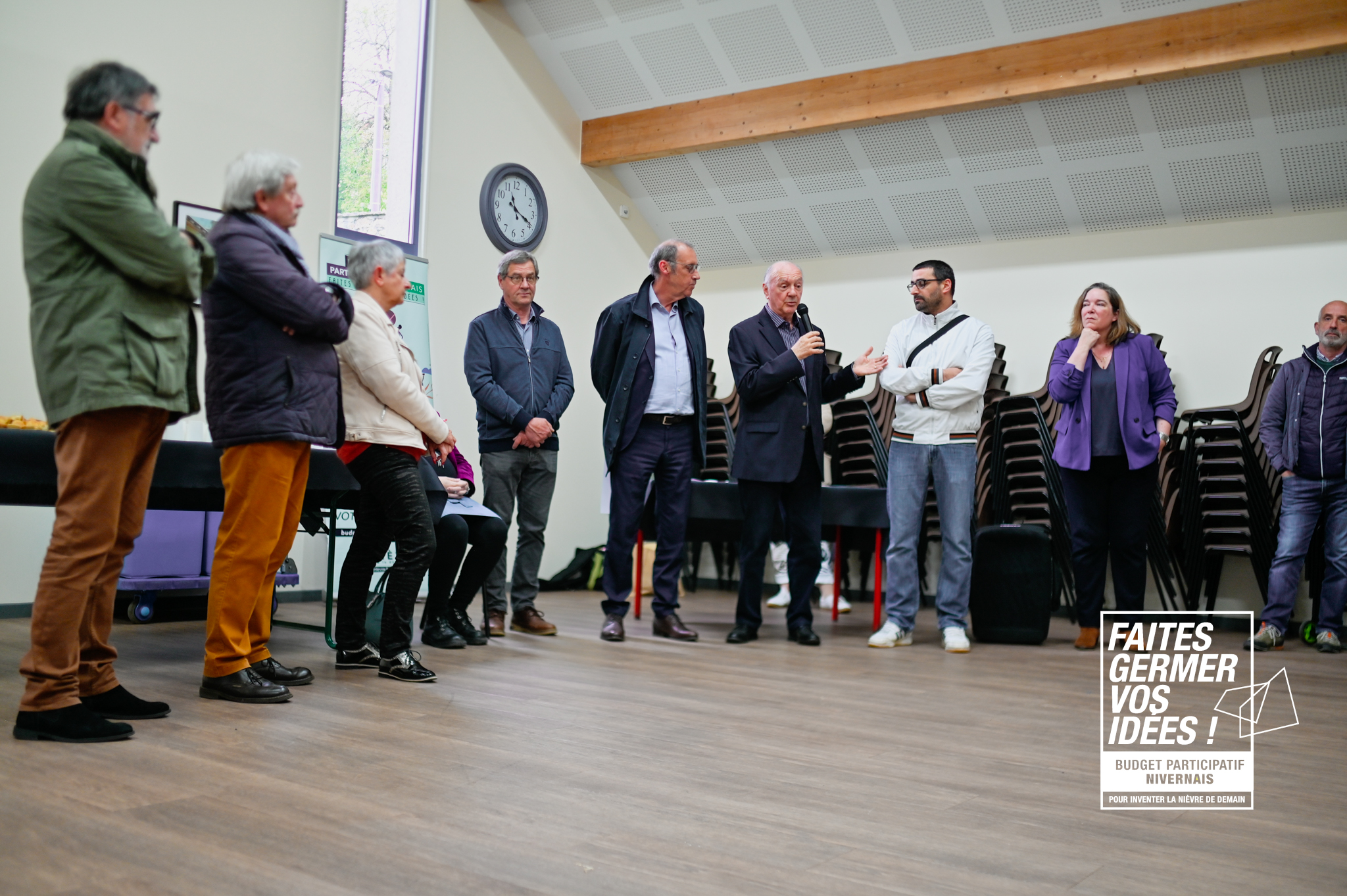À quelques dizaines de mètres de l’Armance, ruisseau qui chantonne gaiement la fin des crues du printemps, et de la haute stature d’un château d’eau crénelé qui alimentait naguère les jardins du château Valette, l’imposante maison bourgeoise plantée à l’entrée du village, la salle des fêtes de Nuars était l’écrin bucolique de la remise des prix du Budget participatif nivernais, mercredi 17 avril.