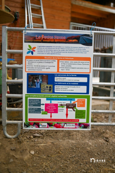 Bravant la pluie et la fraîcheur, une trentaine de personnes ont écouté ses explications et celles de Pascaline Loquet, ingénieur agronome de formation, installée en 2020 en bio, « une évidence », sur 20 hectares achetés à un agriculteur retraité. Sa reconversion soigneusement pensée et maîtrisée s’appuie sur l’élevage d’ovins à viande et sur la production de petits fruits : « Tout est en vente directe et, un peu, en magasins spécialisés », explique la jeune femme, pilier du groupement d’éleveurs qui a ouvert l’atelier de découpe et de transformation La Fermille à Saint-Benin-d’Azy.