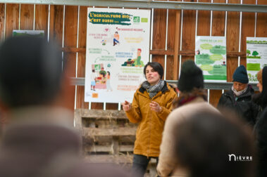 Au menu de l’Agenda nature, édité chaque année par le Conseil départemental, une visite de ferme organisée par Bio Bourgogne a mené une trentaine de personnes sur les terres de Pascaline Loquet, à Coulanges-lès-Nevers, autour du thème de l’agroforesterie. L’éleveuse d’ovins et productrice de petits fruits, installée depuis 2020 en agriculture biologique, donne en effet une place centrale à l’arbre, longtemps perçu comme un concurrent du rendement, dans son écosystème. Ombre pour les bêtes, rempart contre le vent et l’érosion, immeubles de la biodiversité : loin d’être honnis, les arbres sont portés aux nues dans la Petite Ferme.