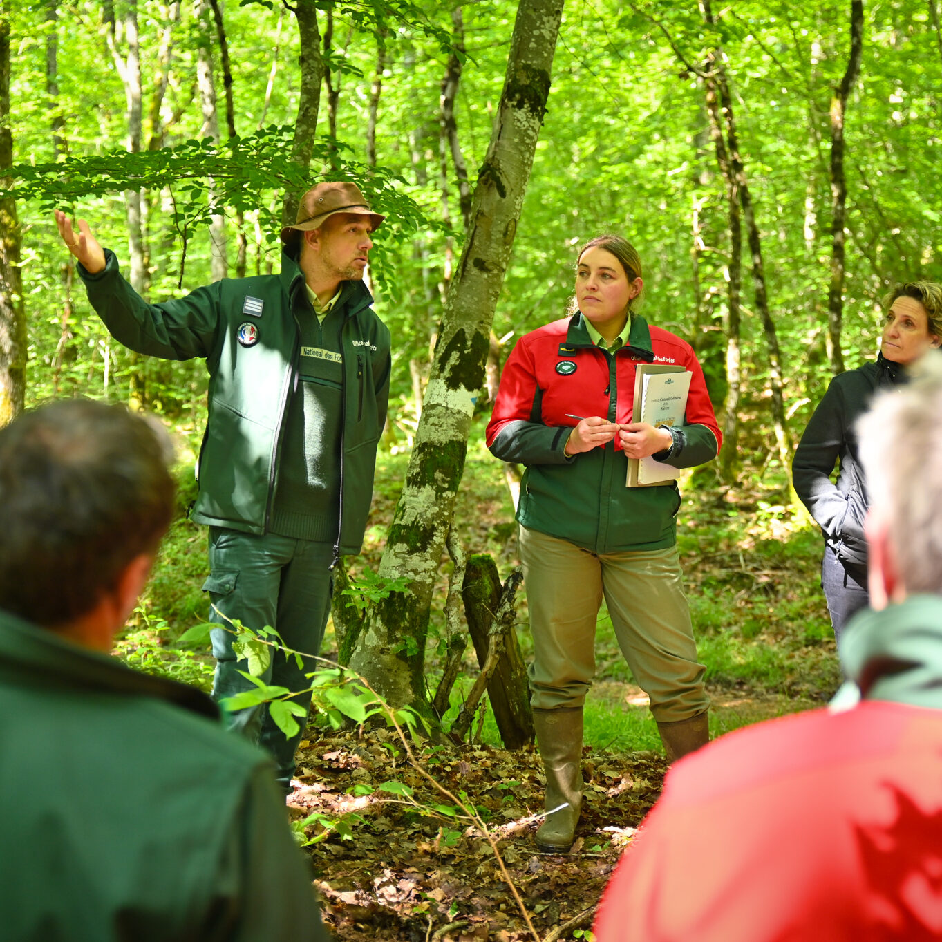 Sous le feuillage protecteur d’un chêne au large tronc noueux, et dans un silence percé de chants d’oiseaux, la Journée internationale de la biodiversité avait un parfum d’humus et d’averse, mercredi 22 mai, dans la forêt du Crot de la Vouavre, sur les hauteurs de Saint-Honoré-les-Bains. Un cadre rêvé et un jour idéal pour Fabien Bazin, président du Conseil départemental, et Blandine Delaporte, première vice-présidente, venus parler de l’avenir des forêts départementales en compagnie de Stéphanie Robinet, directrice générale adjointe, d’agents de la direction des Transitions, et de techniciens de l’Office national des forêts (1).