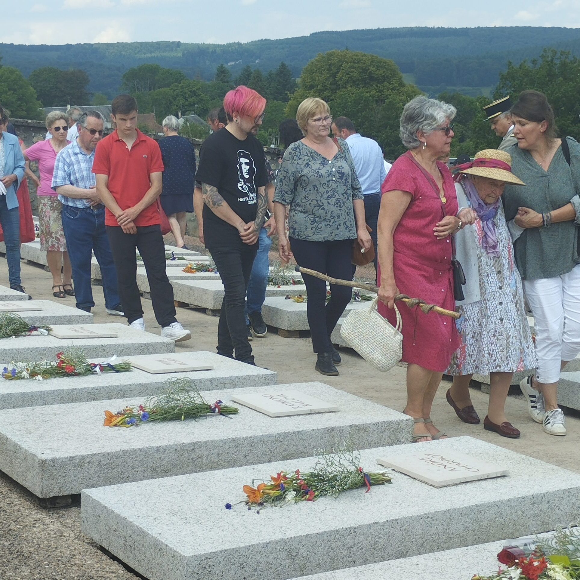 Dans la foule, Françoise Bauer, venue de Sens avec son fils Frédéric, était arrivée en début de matinée, pour l’office religieux. « Je viens toujours les 26 juin », explique, émue, la fille de Camille Bachelin, dont le père et le frère ont été assassinés devant l’église. « Mon père n’en parlait pas beaucoup, et ma grand-mère n’en parlait pas. » Malgré le silence, les non-dits, les événements ont imprégné l’histoire familiale, selon Frédéric : « J’ai su très tôt, tout petit, ce qui s’était passé. Tous les enfants, petits-enfants, arrière-petits-enfants, on est tous venus ici. »