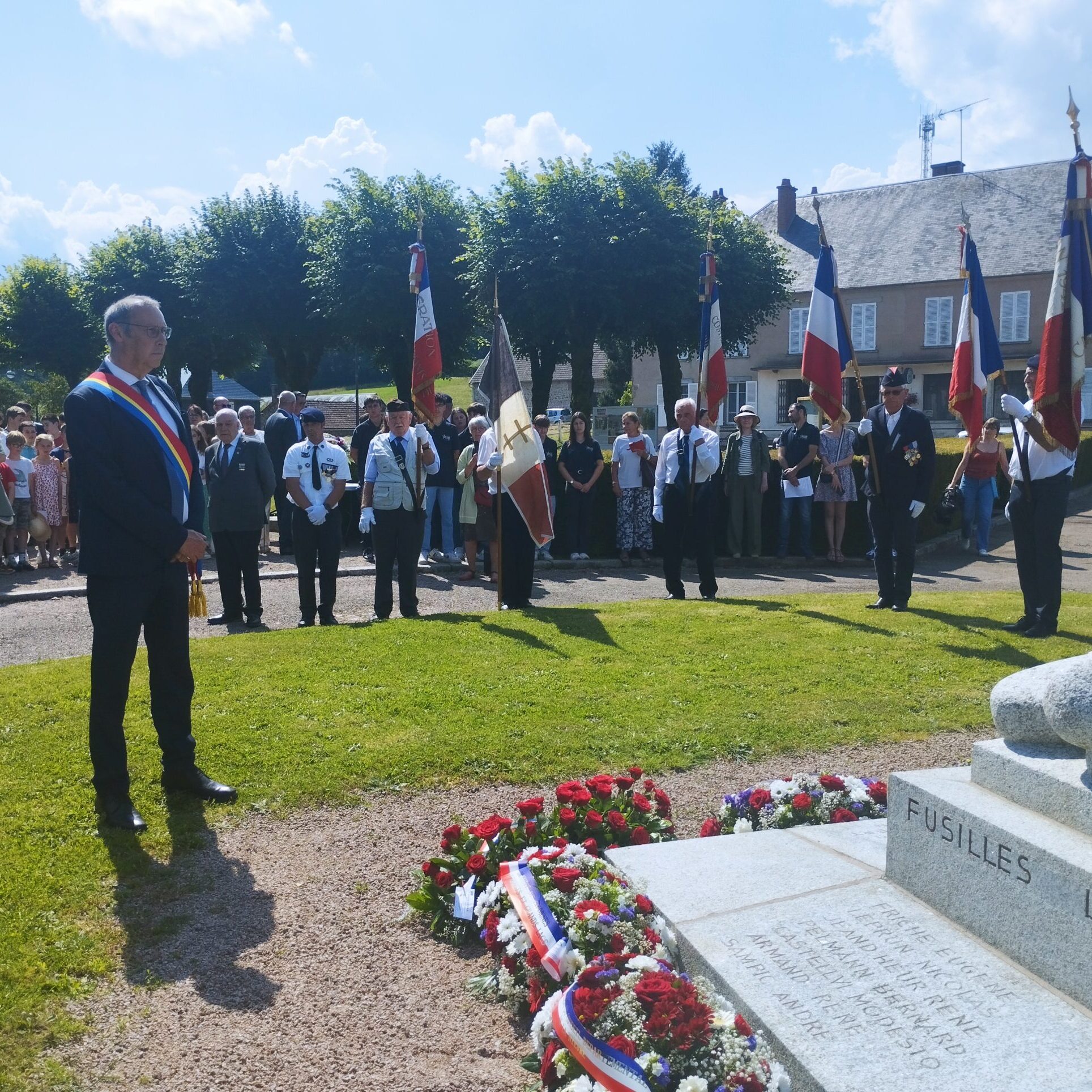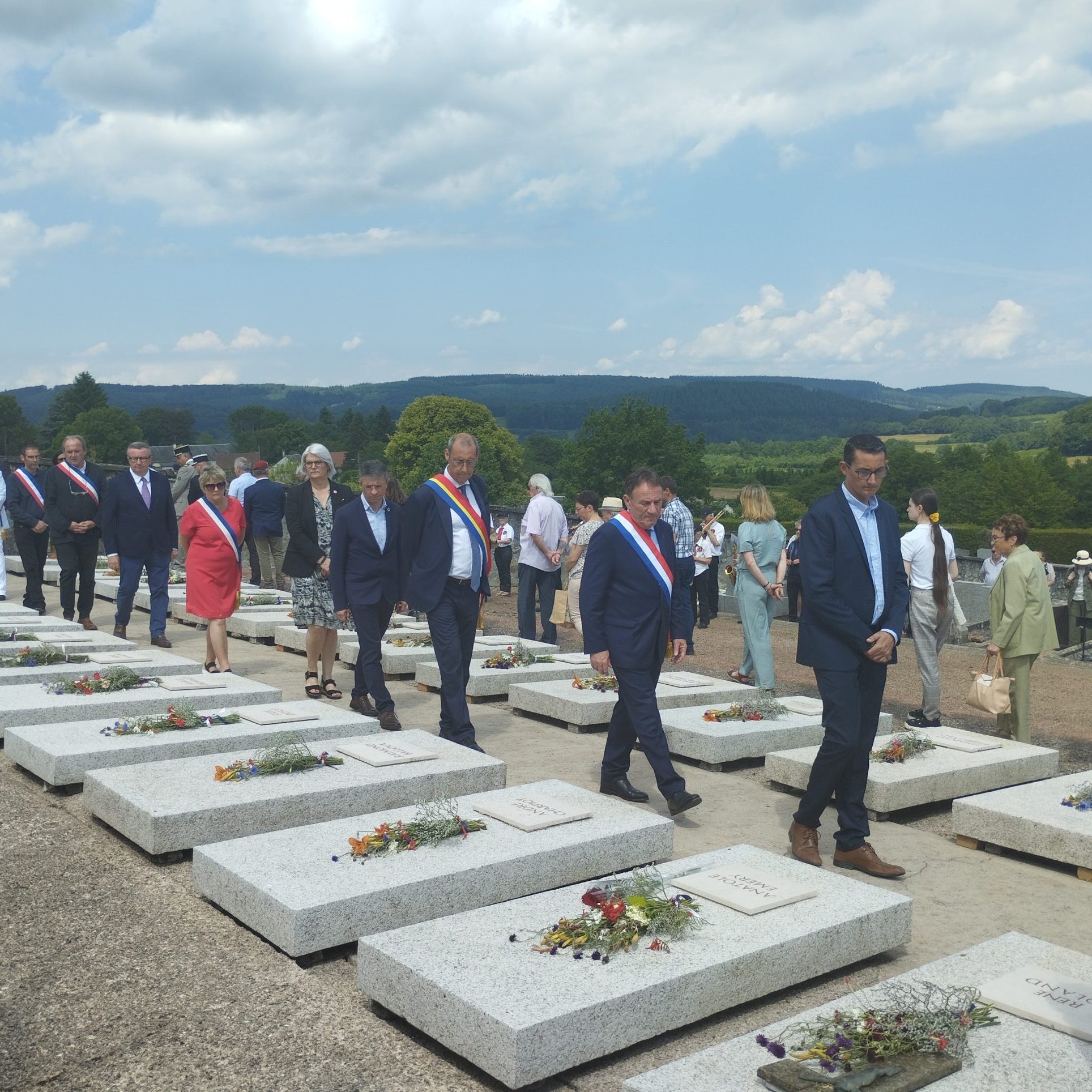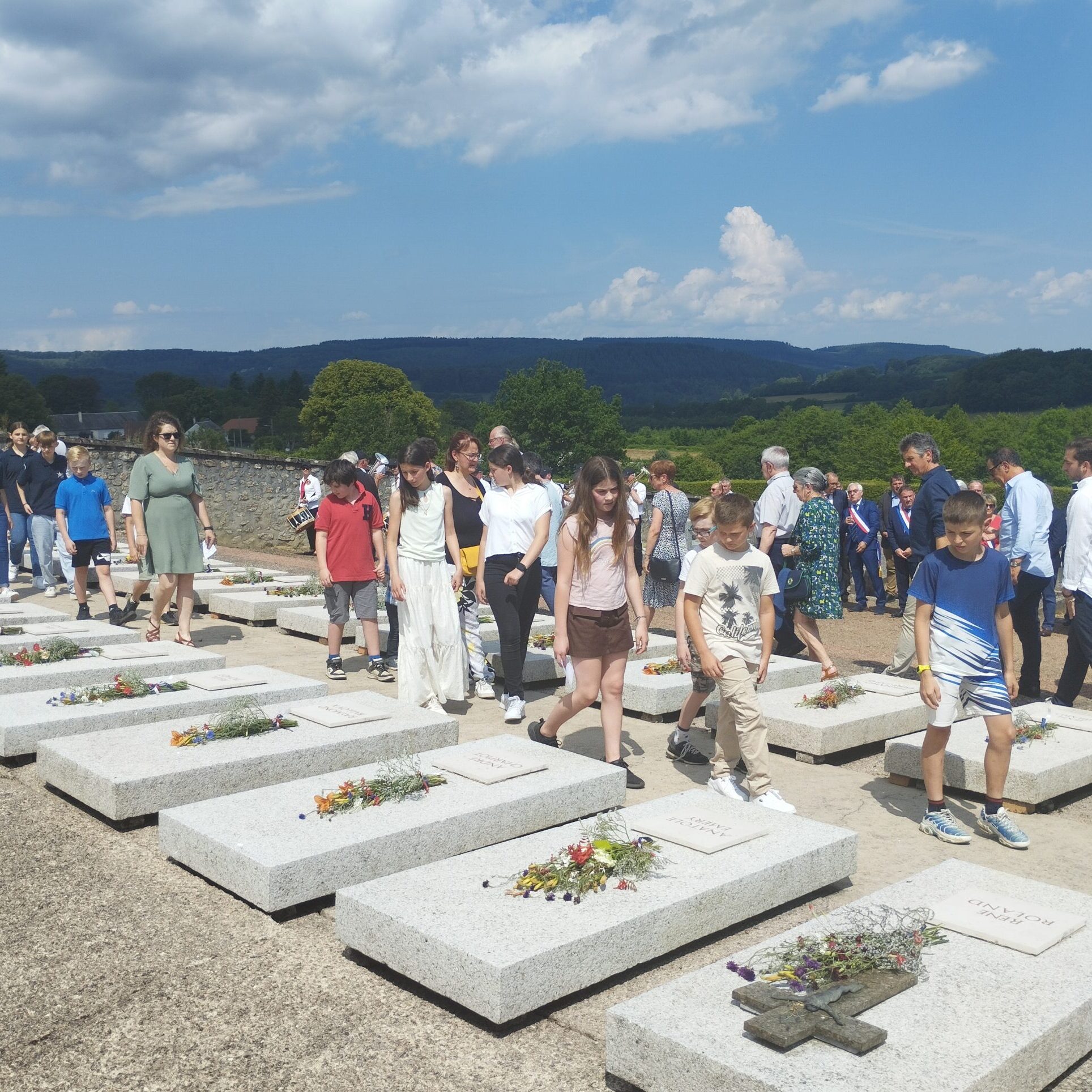 Comme elles, des centaines de personnes ont cheminé lentement dans le mémorial. Des écoliers de Dun et de Brassy, des collégiens de Lormes et d’Auxerre, des habitants du village, du Morvan, des élus. La fanfare de la Lyre donziaise ponctue de Marseillaise, de Chant des partisans et de Sonnerie aux morts une cérémonie commencée un peu plus tôt devant l’église, près du monument érigé en mémoire des fusillés.