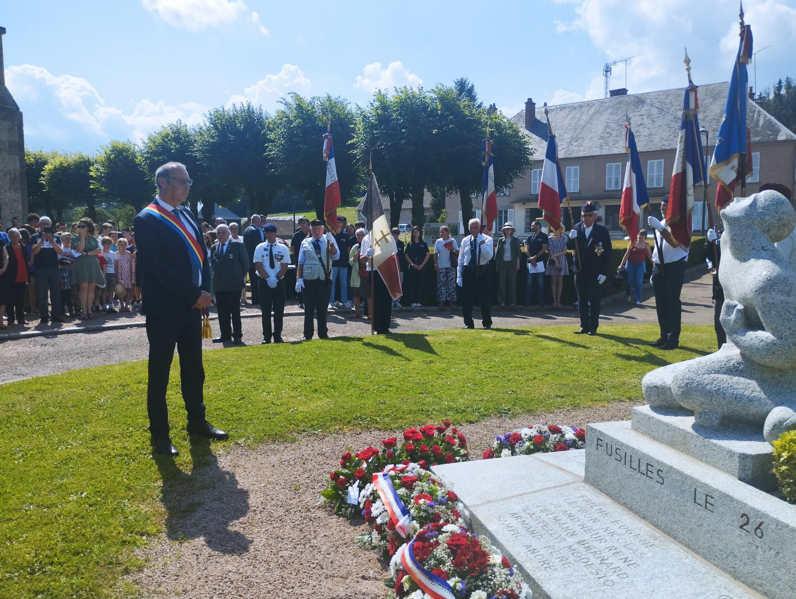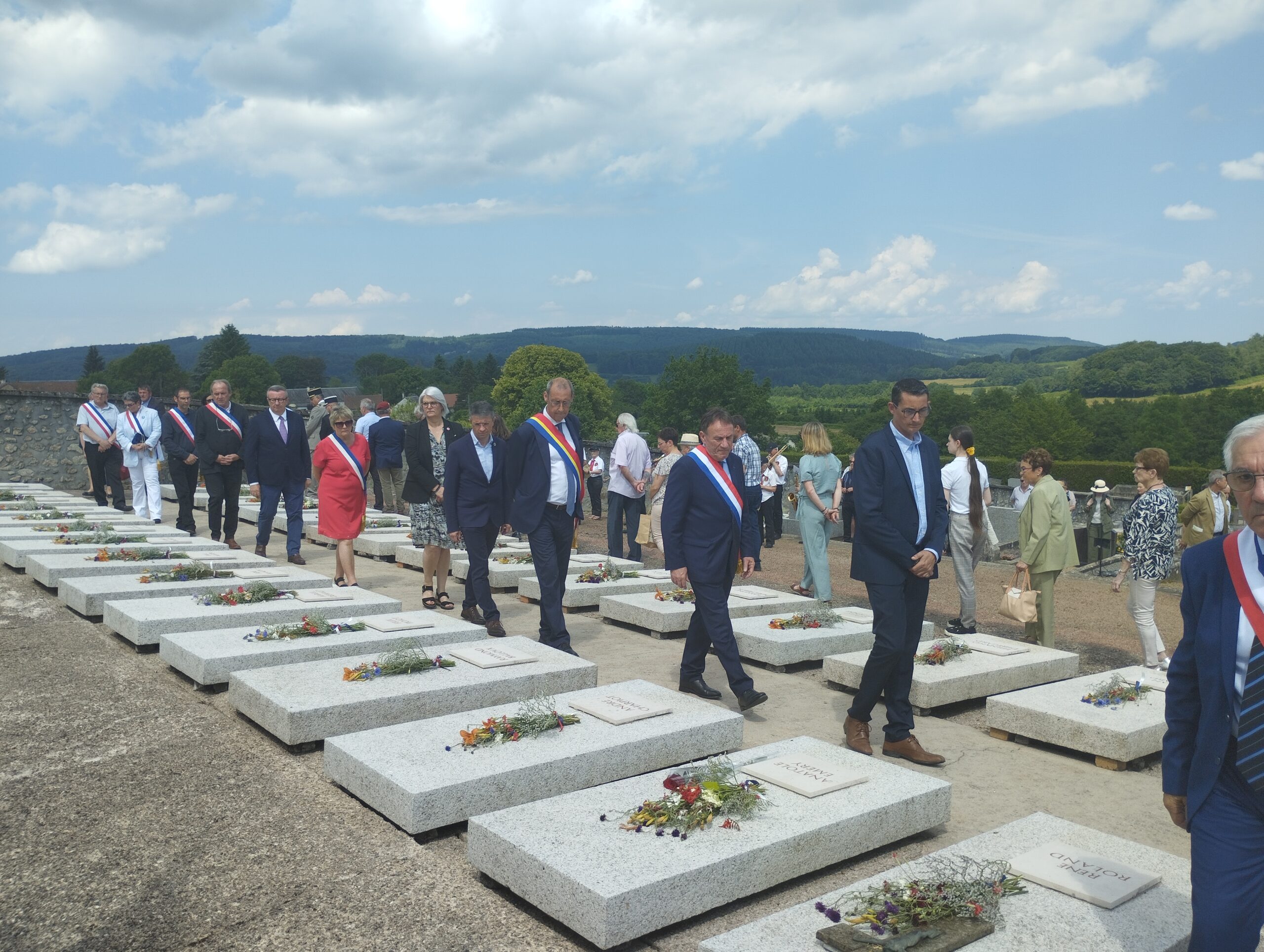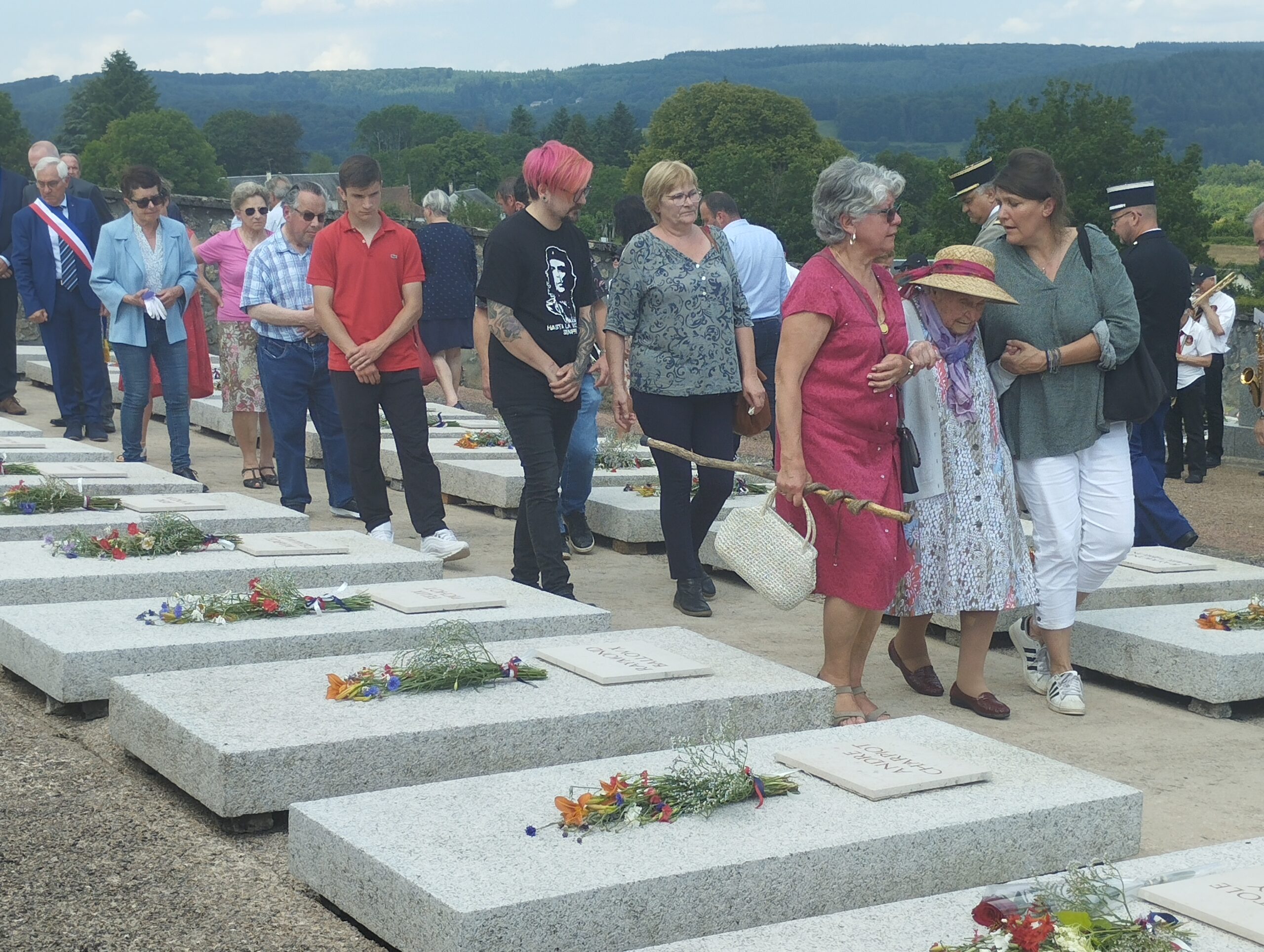 Comme elles, des centaines de personnes ont cheminé lentement dans le mémorial. Des écoliers de Dun et de Brassy, des collégiens de Lormes et d’Auxerre, des habitants du village, du Morvan, des élus. La fanfare de la Lyre donziaise ponctue de Marseillaise, de Chant des partisans et de Sonnerie aux morts une cérémonie commencée un peu plus tôt devant l’église, près du monument érigé en mémoire des fusillés.