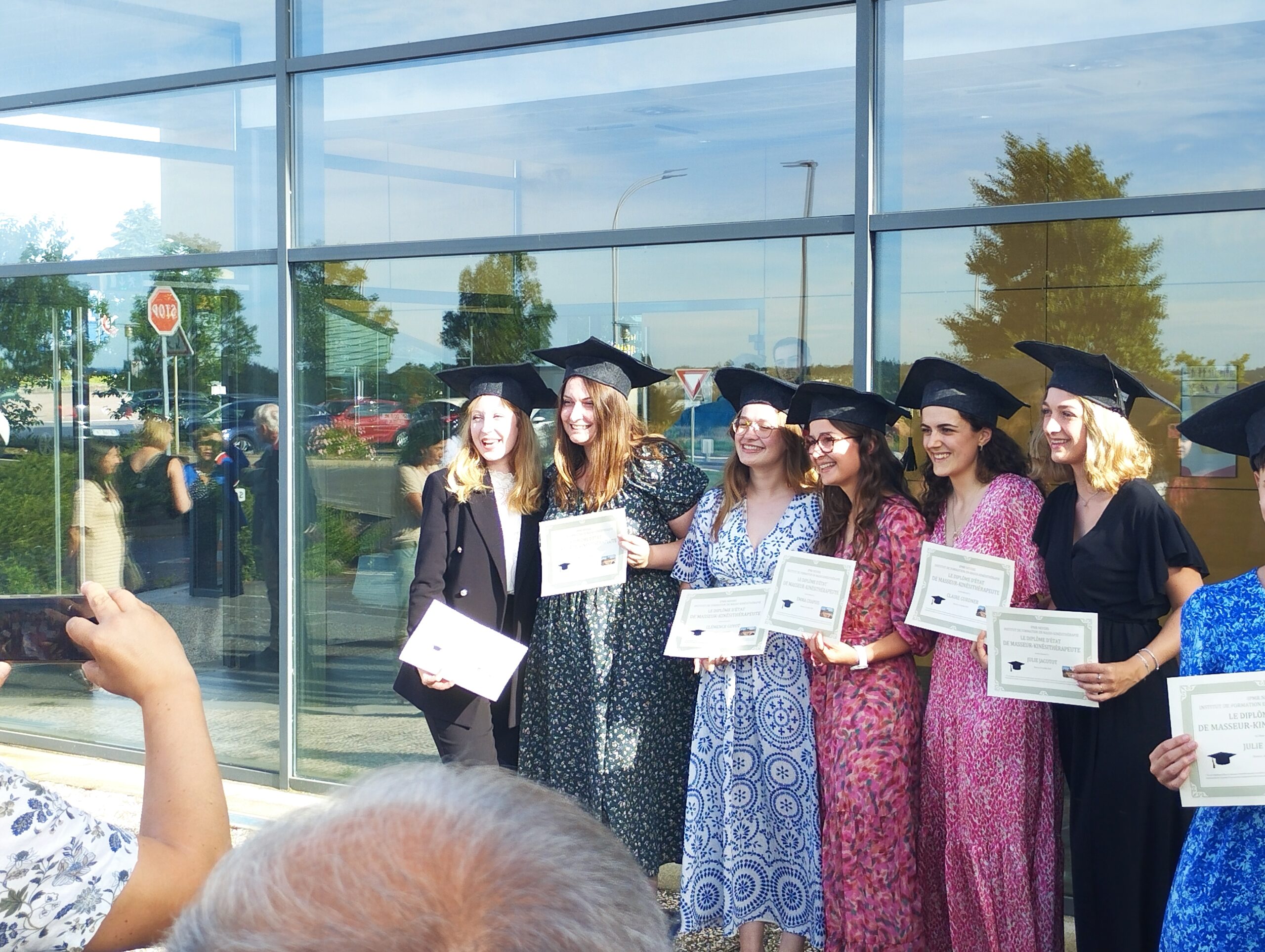 Les 23 diplômés de l’Institut de formation en masso-kinésithérapie de Nevers (IFMKN, promotion 2020-2024) : Célia Chaffaud, Emma Chapuis, Chloé Chrisment, Manon Cloiseau, Solène Degrange, Carla Deroy, Thomas Furzac, Léonie Gaudillat, Emma Gillot, Thomas Grégoire, Claire Gurdner, Clémence Guyot, Eline Henriot, Julie Jacotot, Eva Milesi, Ayrton Moiroux—Sahraoui, Julie Orieux, Mehdi Ourlis (major de promotion), Clémence Renaux, Tanita Ries Fraser, Julie Tapin, Ilona Terreau, Noëly Thibaudat.