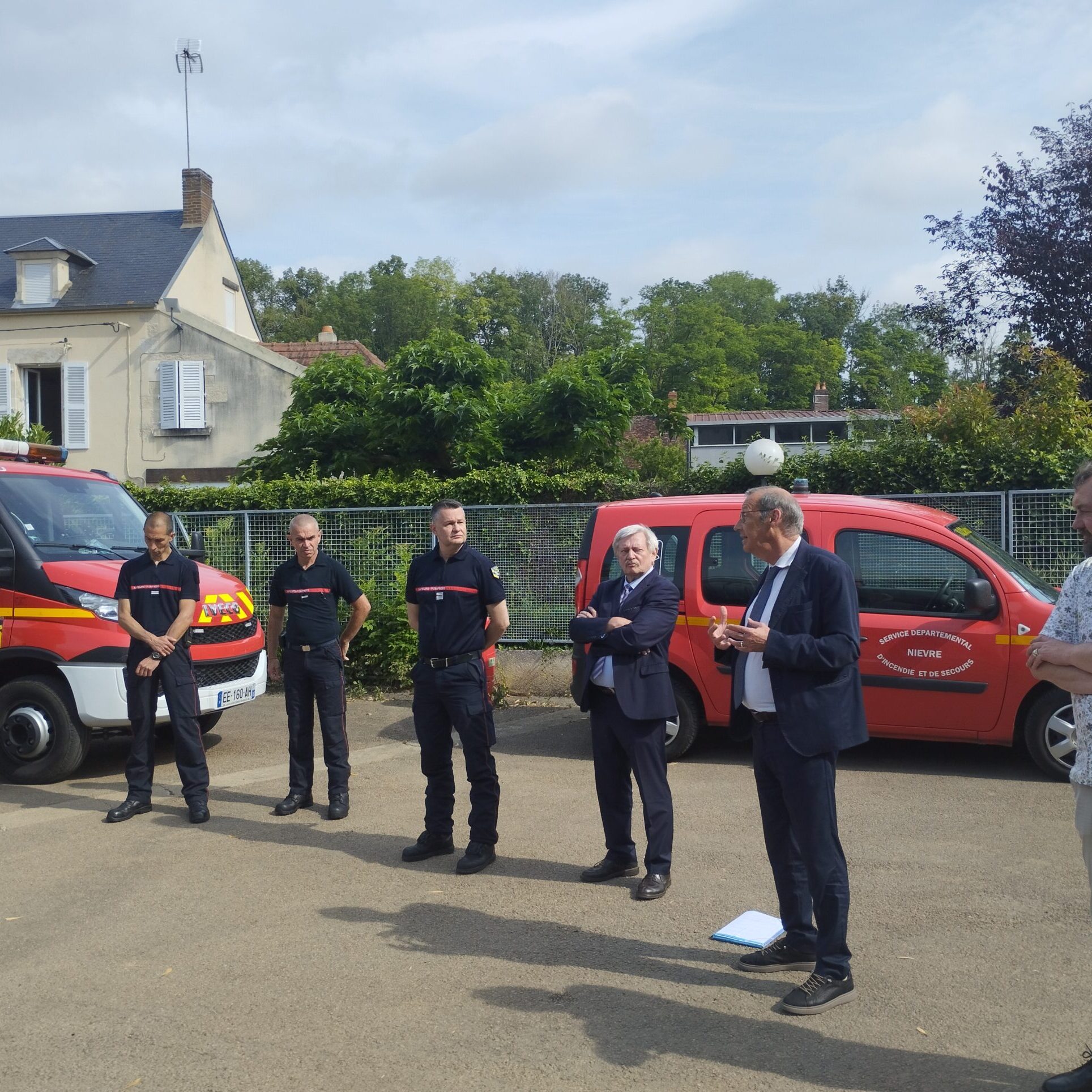 Le président du Conseil départemental, Fabien Bazin, a rencontré dernièrement à Clamecy et à Varzy pour rencontrer les sapeurs-pompiers et les agents de deux Centres d’entretien routier, en première ligne lors des inondations qui ont touché une large portion de la Nièvre, fin juin. La réactivité face à un phénomène climatique aussi violent qu’inattendu, les efforts titanesques déployés pour secourir les personnes, protéger les biens et rétablir la circulation se sont révélés à la hauteur d’une situation rarement vécue dans le département, au cours de laquelle le pire a été évité grâce à une mobilisation sans faille.