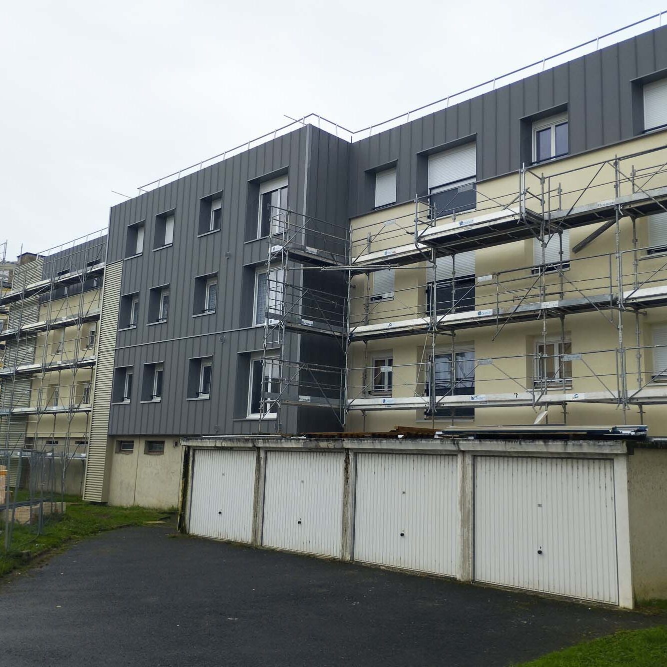 D’un côté, des bâtiments corsetés d’échafaudages pour la pose de l’isolation thermique extérieure (ITE) ; de l’autre, côté chats, des façades rénovées, au beau bardage bicolore, qui seront équipés prochainement de balcons. Le remplacement des huisseries et la réfection du toit terrasse complètent le calfeutrage de logements mis aux normes BBC (bâtiment basse consommation) Rénovation. Refaite à neuf, la ventilation collective et individuelle évite à ces cocons de devenir des pièges à humidité.