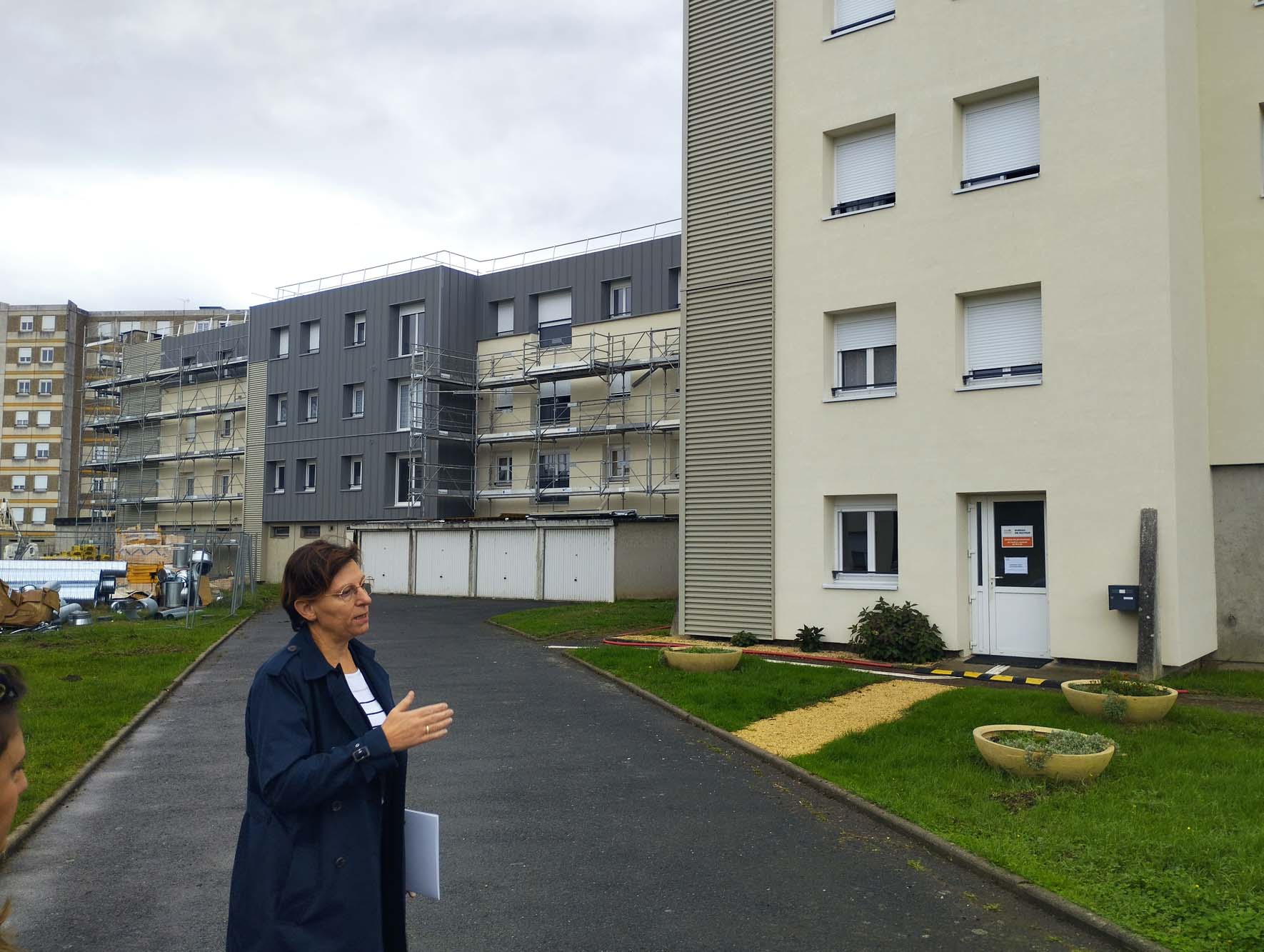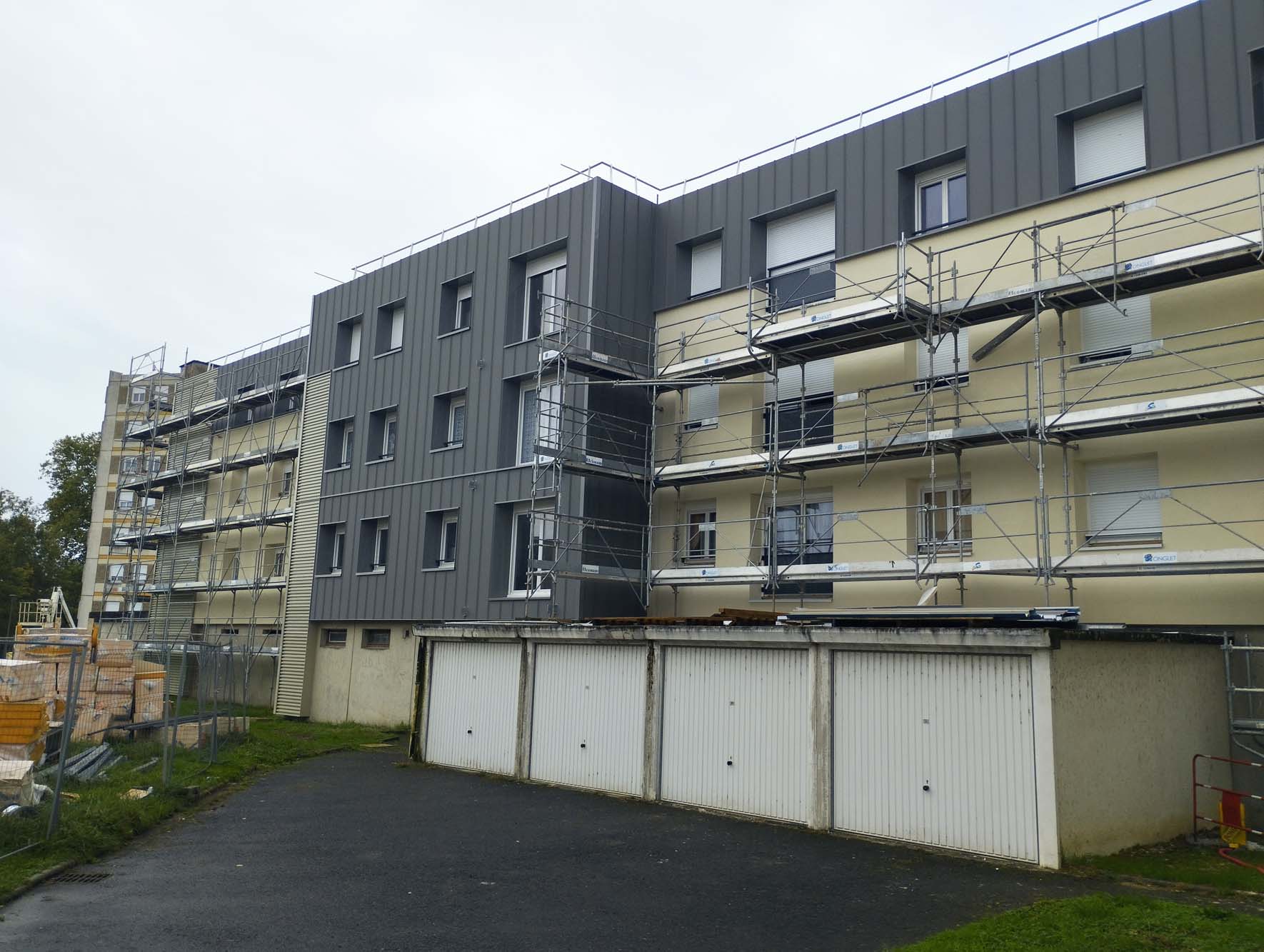 D’un côté, des bâtiments corsetés d’échafaudages pour la pose de l’isolation thermique extérieure (ITE) ; de l’autre, côté chats, des façades rénovées, au beau bardage bicolore, qui seront équipés prochainement de balcons. Le remplacement des huisseries et la réfection du toit terrasse complètent le calfeutrage de logements mis aux normes BBC (bâtiment basse consommation) Rénovation. Refaite à neuf, la ventilation collective et individuelle évite à ces cocons de devenir des pièges à humidité.