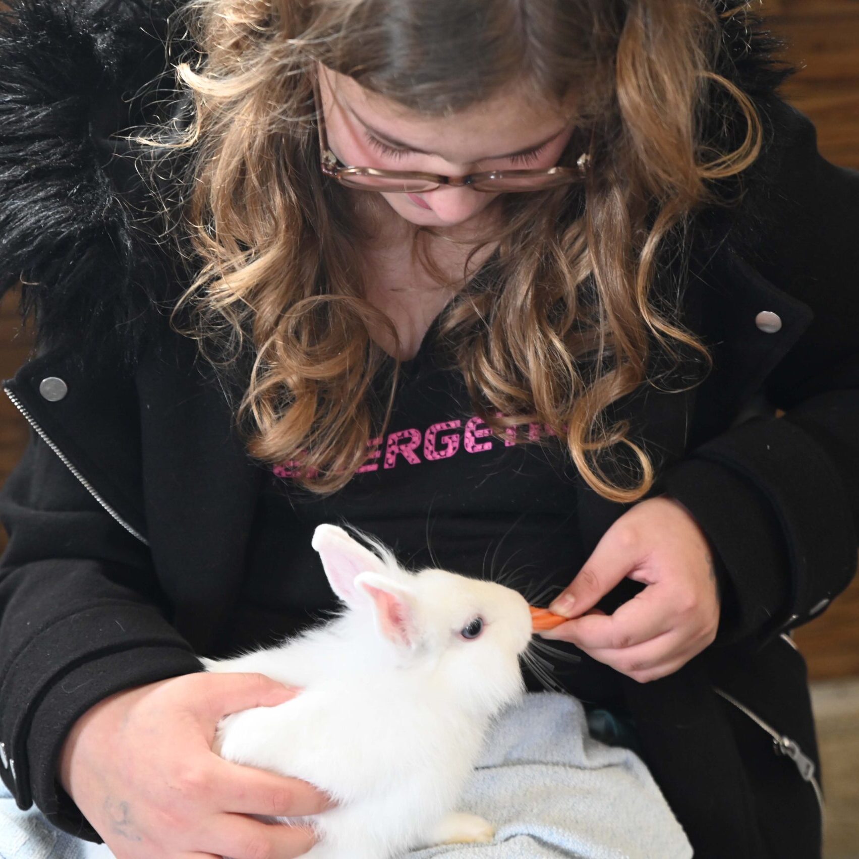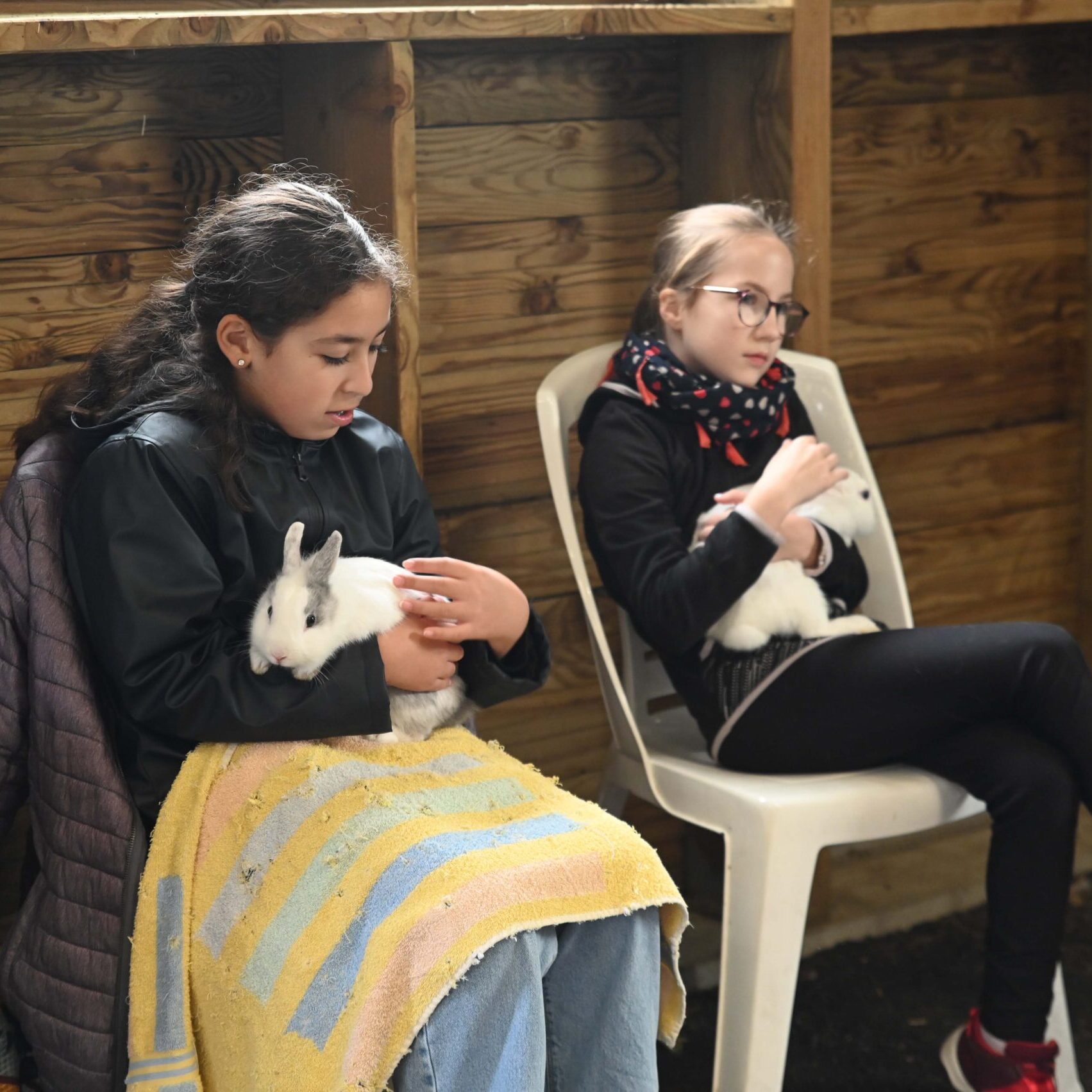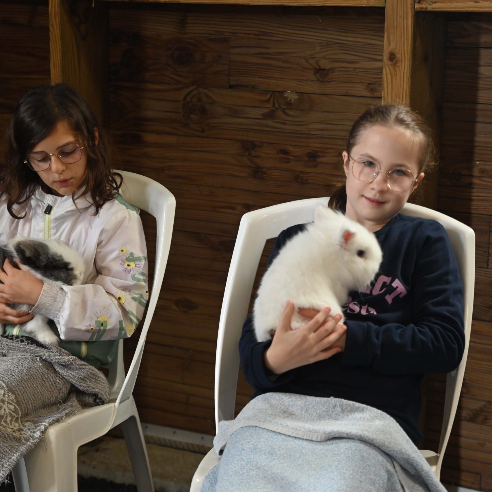 Au-delà de l’émerveillement attendri du contact avec les poules de soie et les lapins nains, l’habituée des animations en EHPAD, crèches et foires éduque au bien-être animal, et au sens des responsabilités : « Je vous félicite parce que vous avez été corrects avec les animaux. Quand vous serez grands, vous voudrez sans doute avoir des animaux, pour vous faire plaisir, mais il faudra aussi penser à l’intérêt des animaux. »