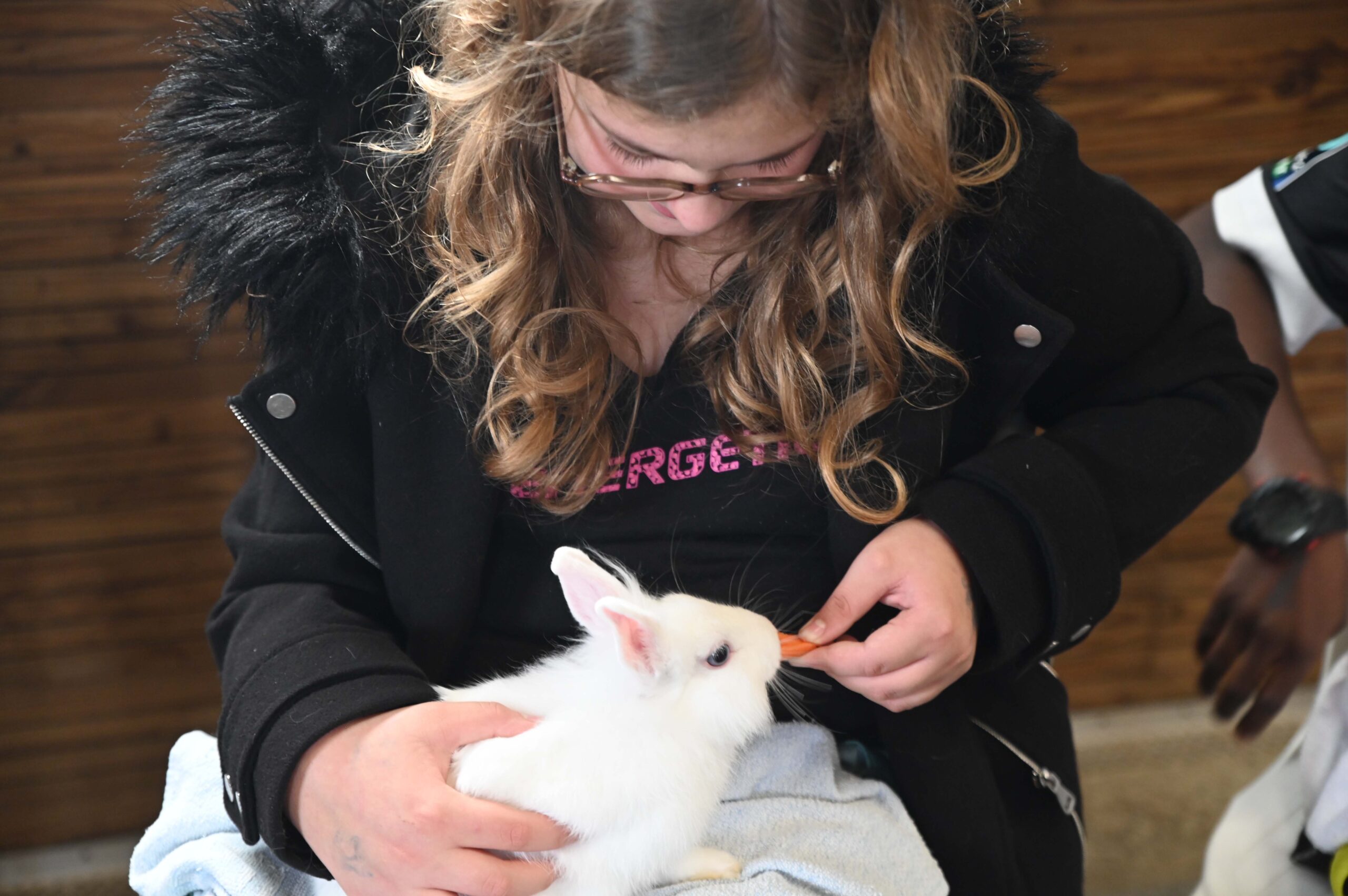 Au-delà de l’émerveillement attendri du contact avec les poules de soie et les lapins nains, l’habituée des animations en EHPAD, crèches et foires éduque au bien-être animal, et au sens des responsabilités : « Je vous félicite parce que vous avez été corrects avec les animaux. Quand vous serez grands, vous voudrez sans doute avoir des animaux, pour vous faire plaisir, mais il faudra aussi penser à l’intérêt des animaux. »