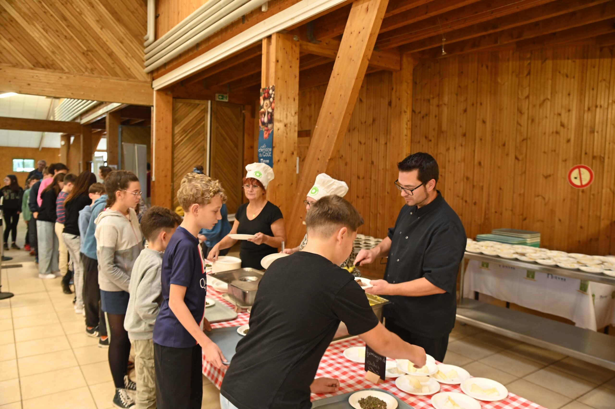 Raison d’être de la Semaine du goût, le « bien manger » s’est dégusté au petit-déjeuner, sous la forme de tartines de confitures et de jus de fruits, puis lors du déjeuner, préparé par les chefs cuisiniers du Conseil départemental au collège de La Machine. Salade de lentilles aux lardons, bœuf bourguignon accompagné d’une jolie purée de « treuffe » (la pomme de terre en patois nivernais) au potimarron, potage du marché, gratin de pâtes à la Nivernaise ou crapiaux aux pommes ont rempli les estomacs, et vidé les assiettes, tout en faisant voyager les collégiens dans l’histoire culinaire nivernaise. Le tout à base de produits locaux – ou du Cher, pour les plus éloignés –, de plus en plus présents dans les cantines des collèges, selon la volonté du Conseil départemental.