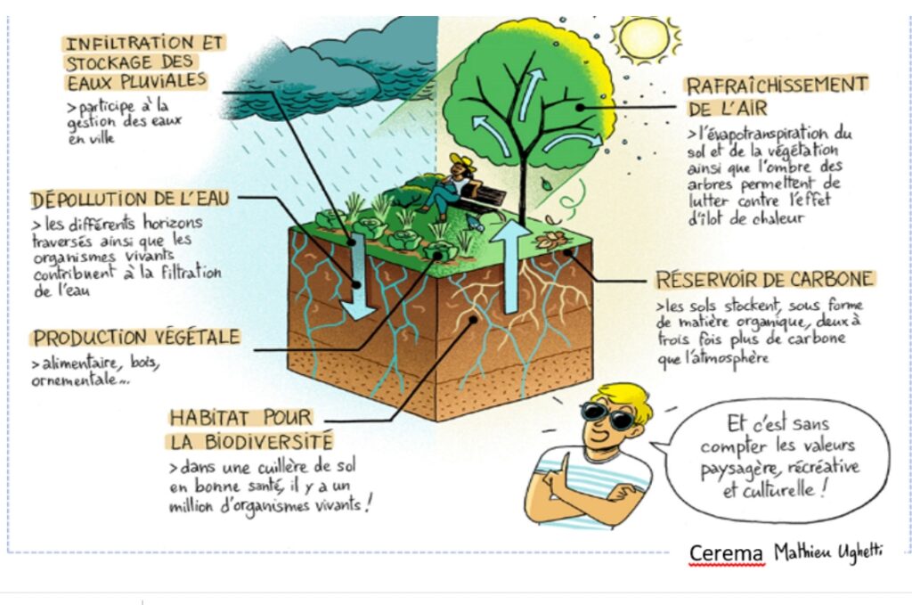 « En creusant des galeries aérant le sol, en mangeant les débris organiques et en mélangeant les composants du sol, ils (les vers de terre) participent au bon fonctionnement de nombreux écosystèmes. Ils fournissent ainsi un large éventail de services écosystémiques, tels que la fourniture de nutriments aux plantes, l’amélioration de leur approvisionnement en eau douce, le stockage de carbone, ce qui contribue à l’atténuation du changement climatique », rappelle le Cirad.