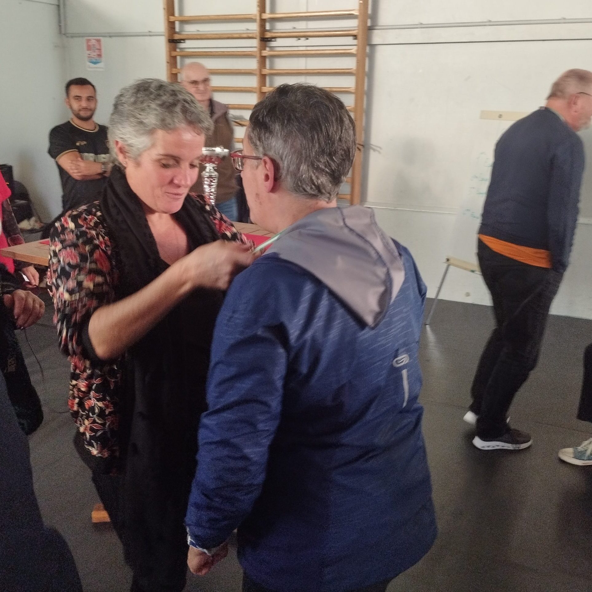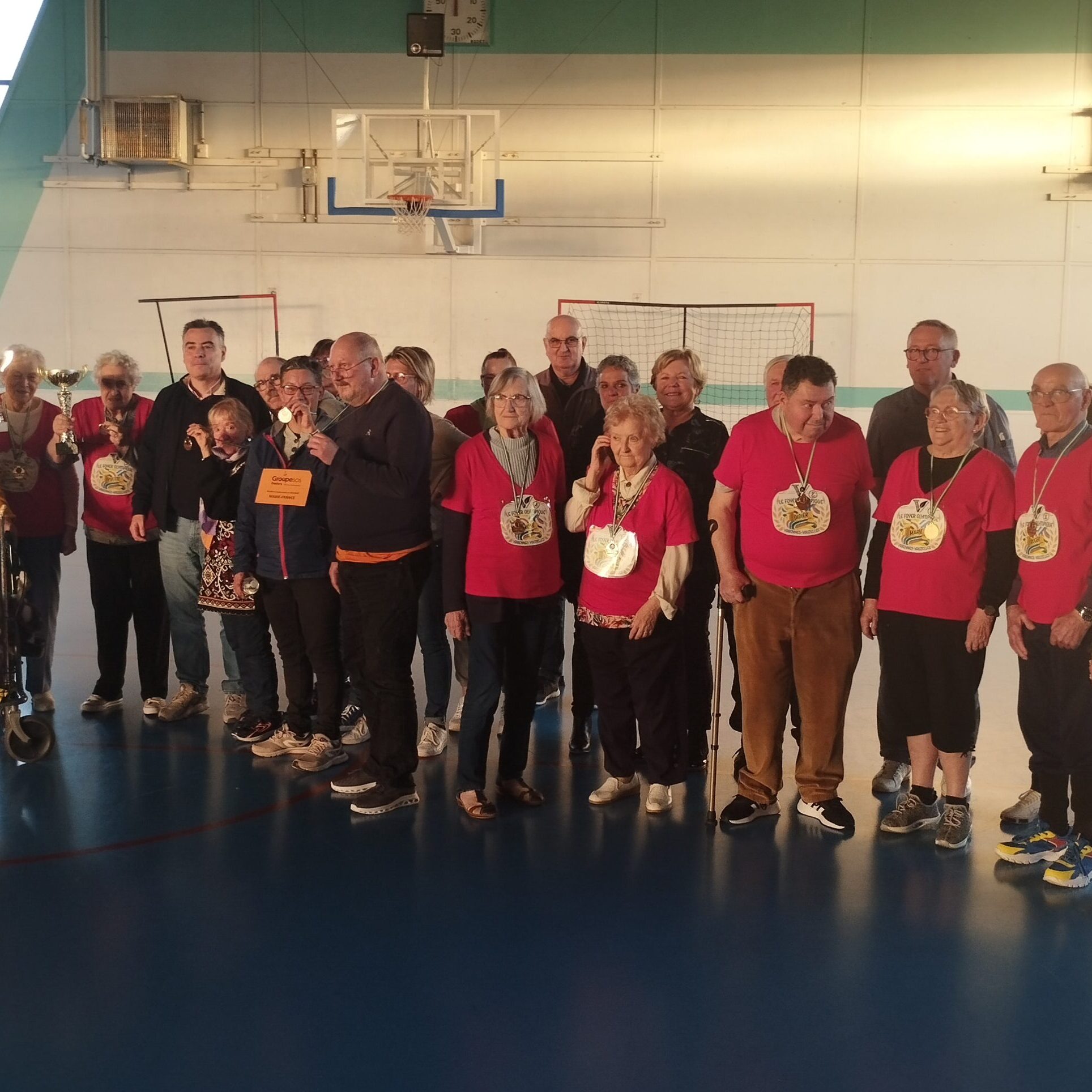 Après l’effort… Attablés dans le gymnase Delaune de Varennes-Vauzelles, les seize athlètes résidents savourent tranquillement le goûter en écoutant Sandrine Vallet interpréter quelques tubes de leur jeunesse. Les plus toniques se lancent dans des pas de danse en compagnie des animatrices, en attendant la remise des récompenses par le maire, Olivier Sicot, et la conseillère départementale du canton, Éliane Desabre.