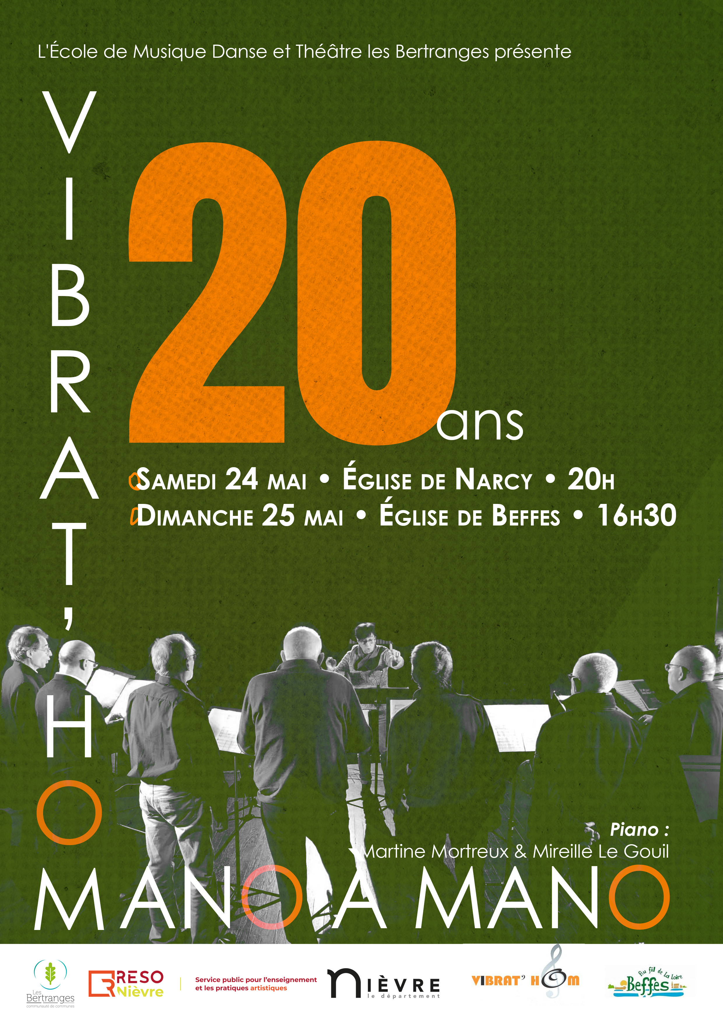 Pour ses 20 ans d’existence le choeur Vibrat’hom de l'École Musique Danse Théâtre - Les Bertranges propose un concert en partenariat avec le duo de…